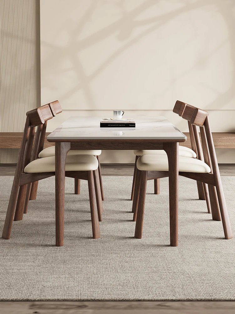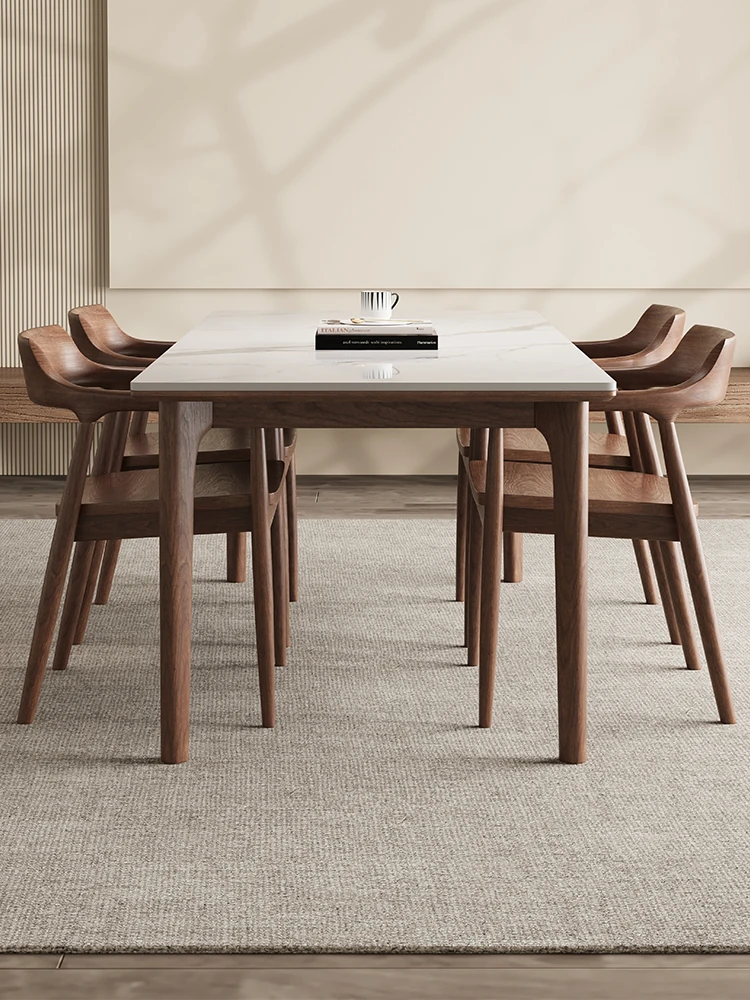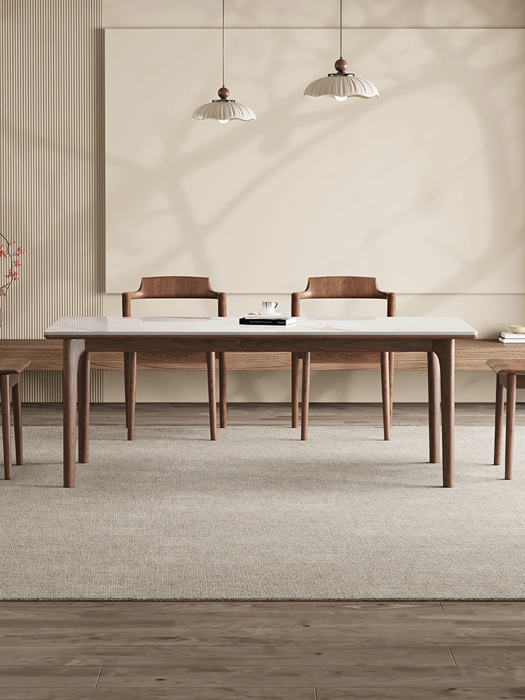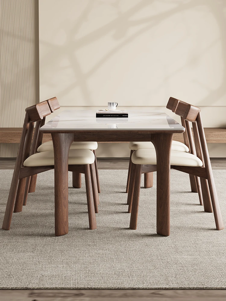 ブラックウォールナット無垢材デリフォン岩板ダイニングテーブル - 宋氏美学を取り入れた高級感あふれる小型住宅向け、家族団らんにぴったりな全托式テーブル!