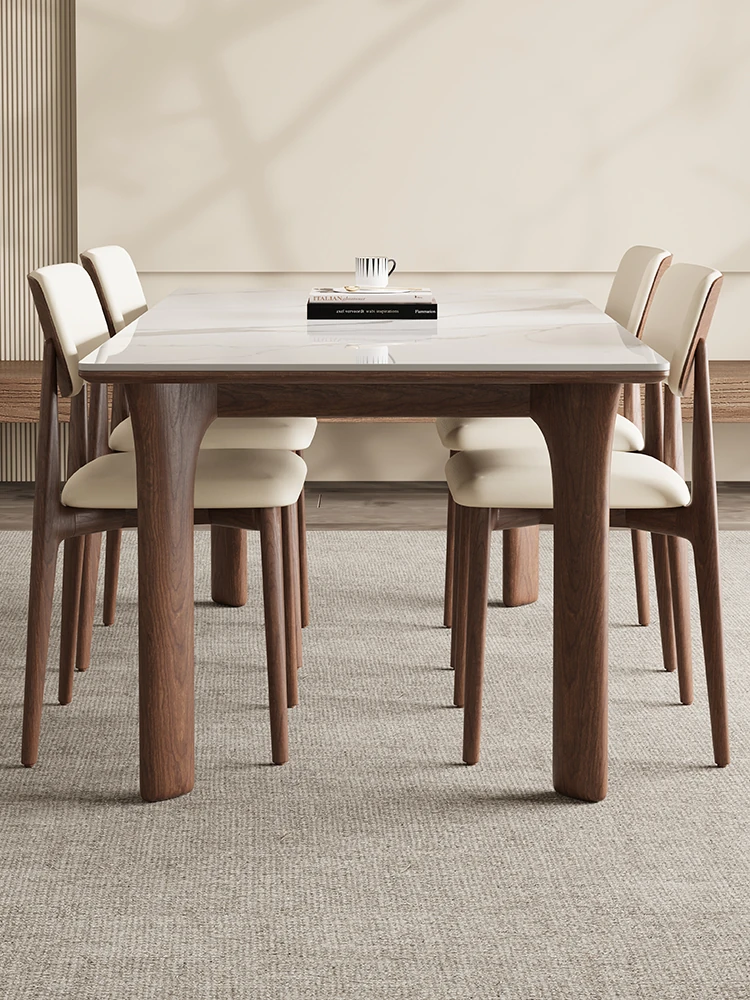 デリフォンの無垢材ロックプレートダイニングテーブル - ブラックウォルナット製、小型住宅向け、クリームカラーのソンスタイル美学、全自動食事テーブル。美しいデザインと機能性で、あなたの食卓を彩ります!