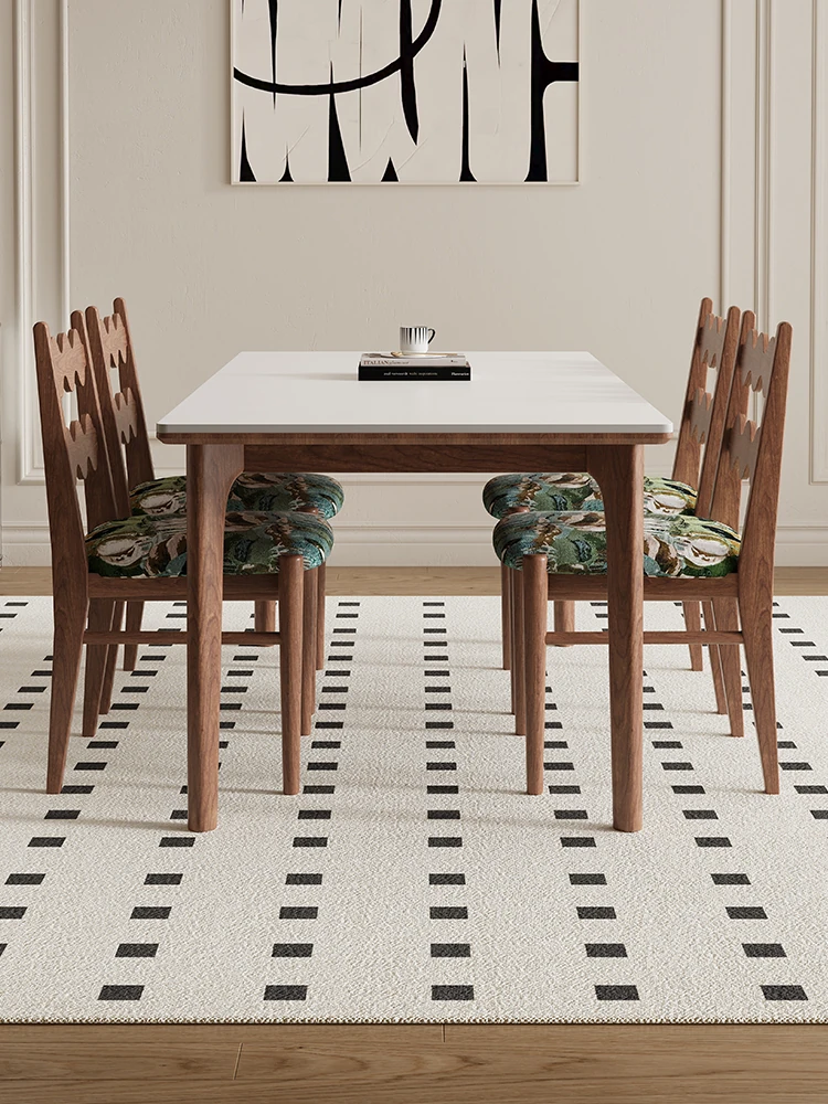 デリフォン無垢材ロックボードダイニングテーブル ウォールナット製 家庭用フレンチクリームスタイル アンティーク風長方形全托テーブル おしゃれで実用的なご飯テーブル!
