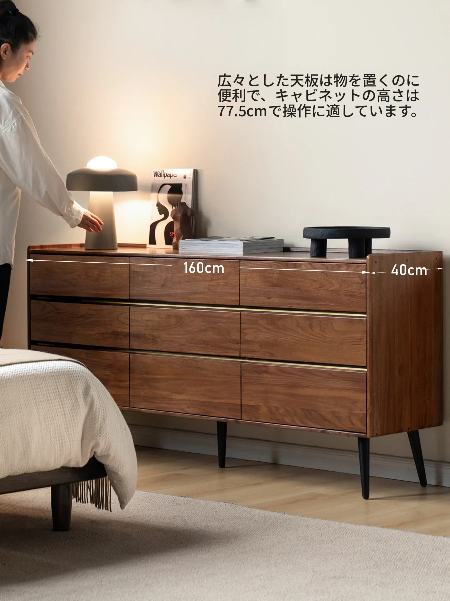 源氏木语のシンプルな無垢材引き出しキャビネット|クールなウィールナッツ素材で、壁にぴったりフィット!|寝室&家庭用の収納スペースに最適で、おしゃれで実用的な収納ソリューション!