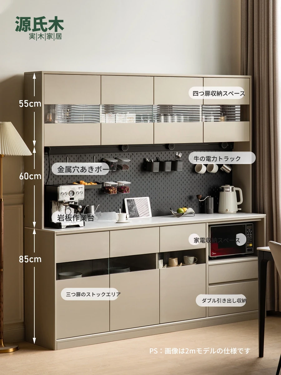 源氏木语 全実木製 ダイニングサイドボード 壁面取り付けタイプ 大型収納キャビネット 岩板仕上げ ティーウォーターキャビネット 家庭用収納ボウルキャビネット - 収納力抜群でおしゃれなデザイン!