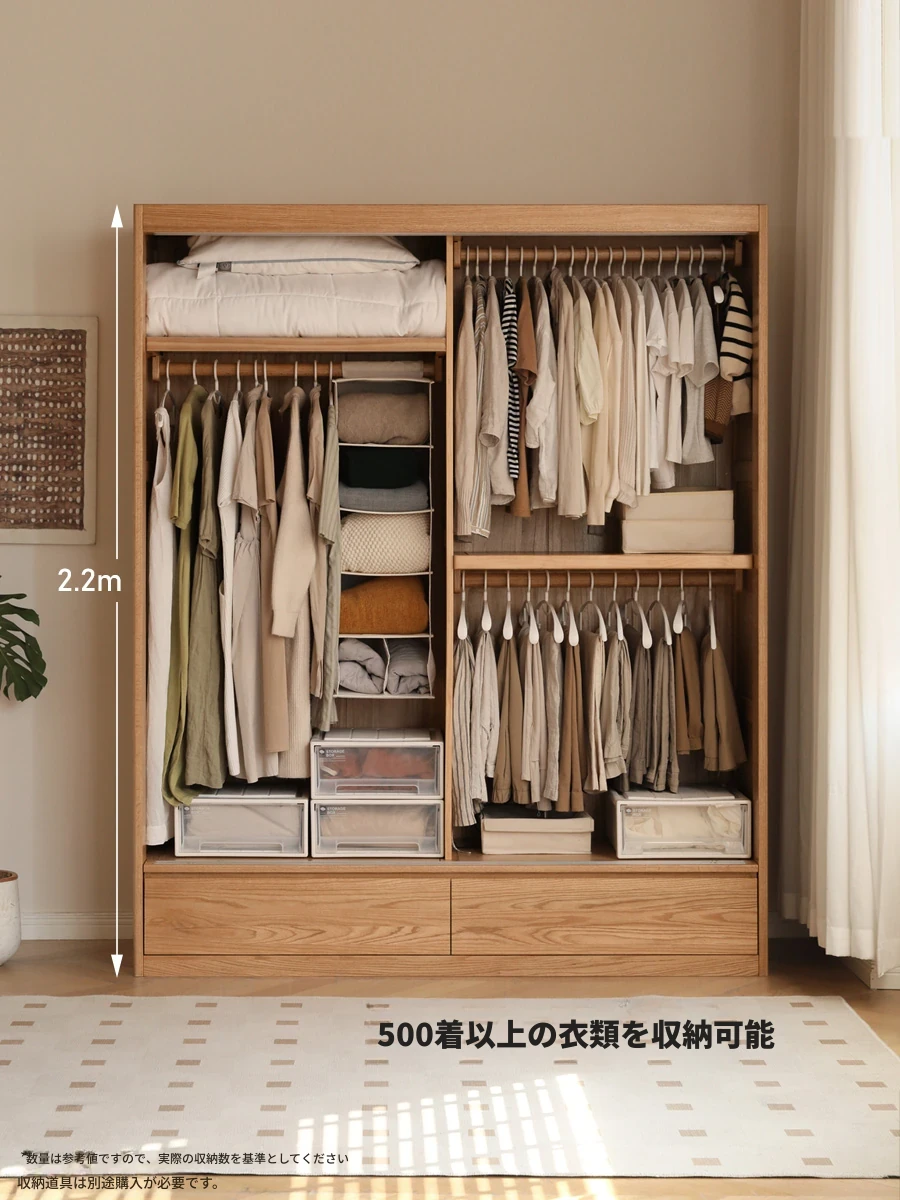 源氏木語の無垢材クローゼット - モダンでシンプルなスライドドアデザイン、オーク材使用の高級衣類キャビネット。寝室や家庭にぴったりのスタイリッシュなフロア衣服収納!
