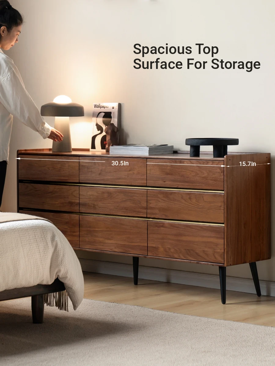Genji Woodworks Solid Wood Dresser - Black Walnut Nine-Drawer Storage Cabinet for Bedroom, Living Room & TV Unit - Elegant and Functional Design