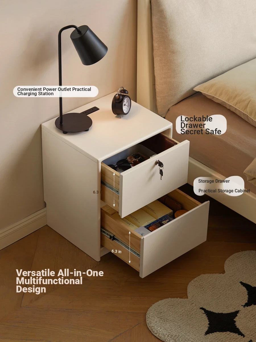 Gen Z Style Solid Wood Nightstand - Vintage American Side Cabinet with Socket for Bedroom, Mid-Century Bauhaus Design, Perfect for Home Storage and Decor