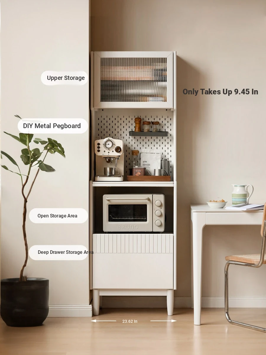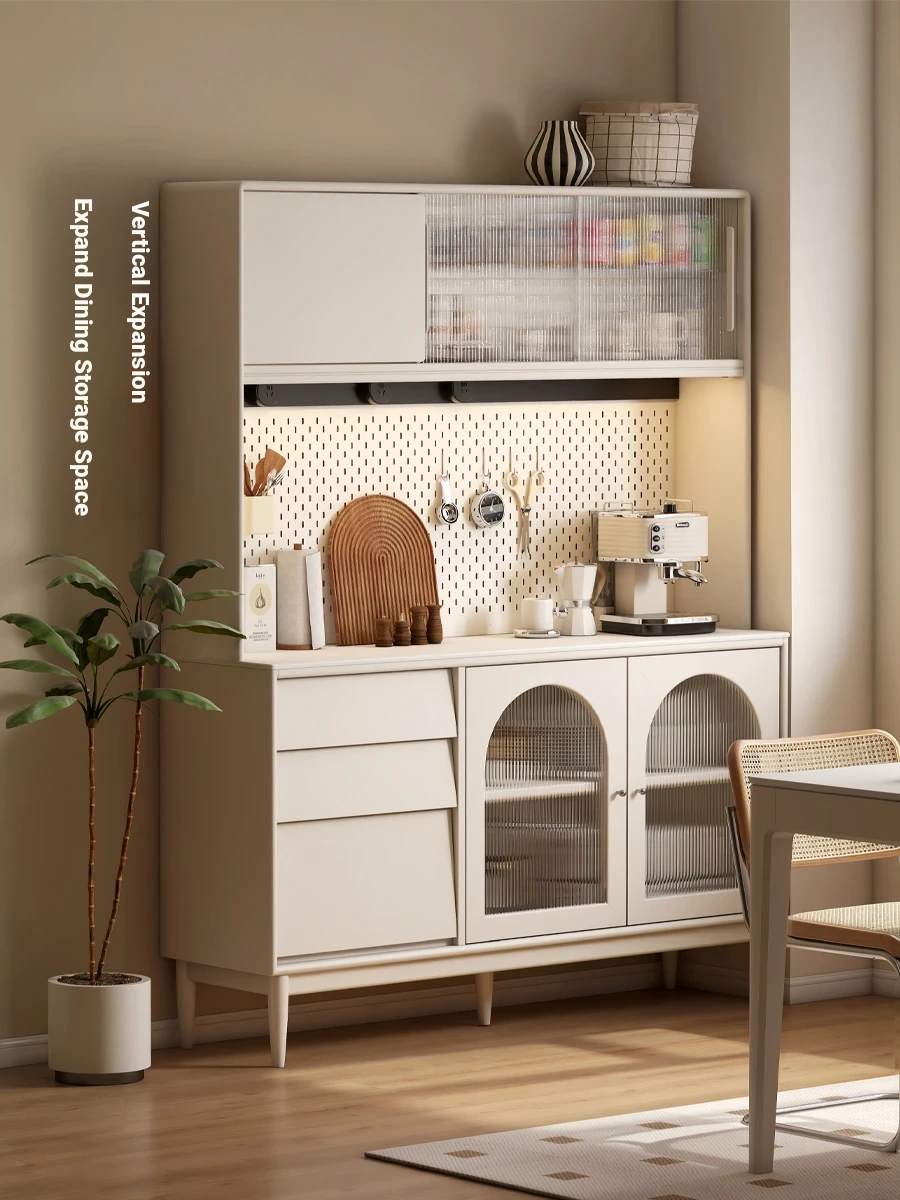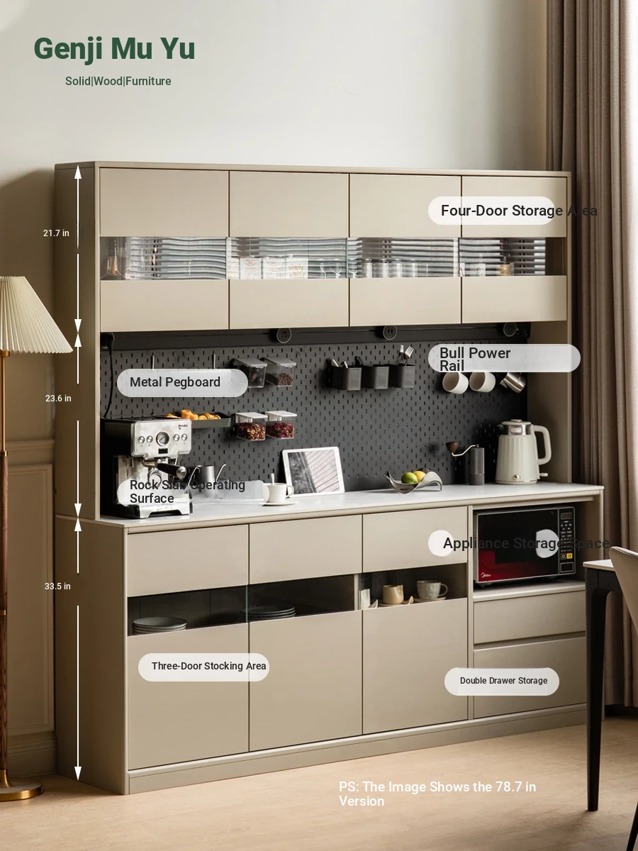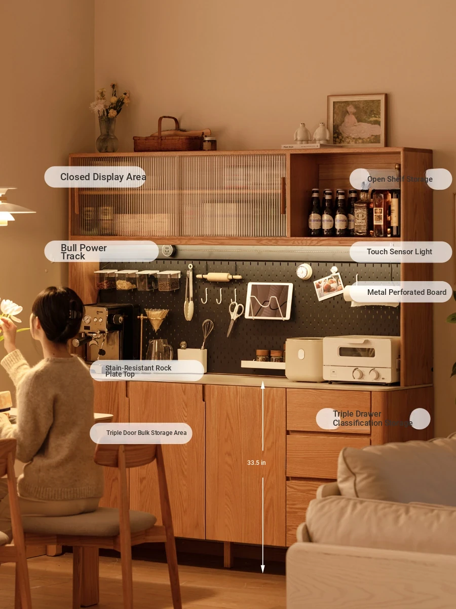 Genji MuYu Solid Wood Rock Plate Sideboard - Modern Minimalist High Cabinet with Pegboard, Tea and Coffee Storage for Home, Oak Organizer.