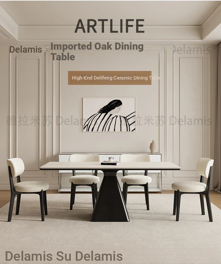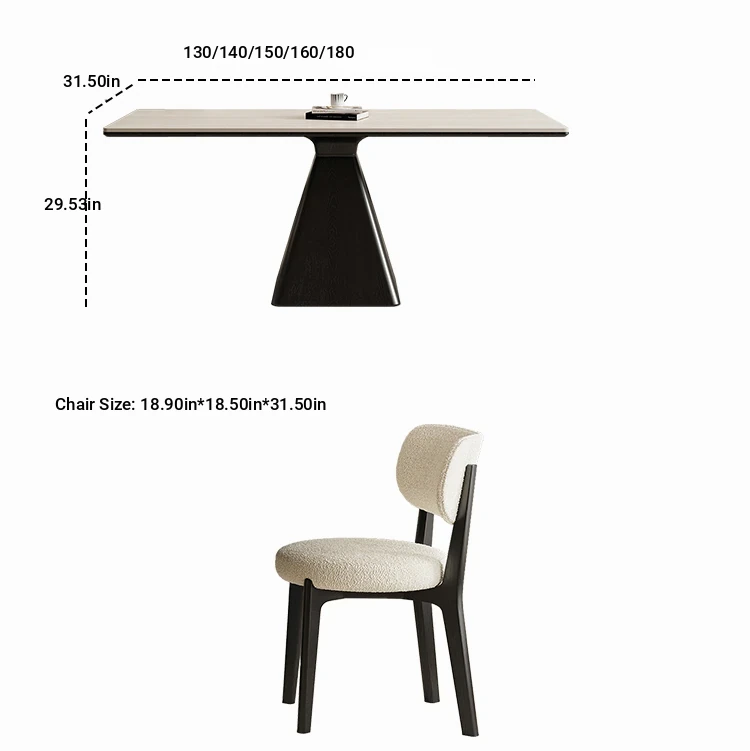 70.87in*31.50in [Classy Delifeng Rock Plate + Oak Base] + Solid Wood Dining Chair * 6