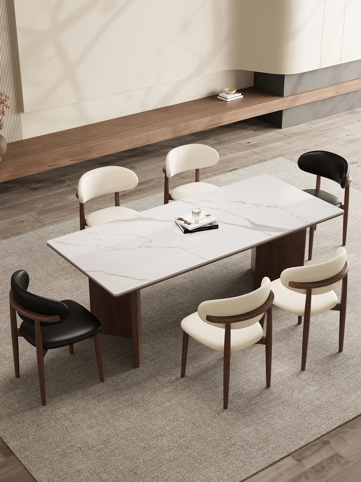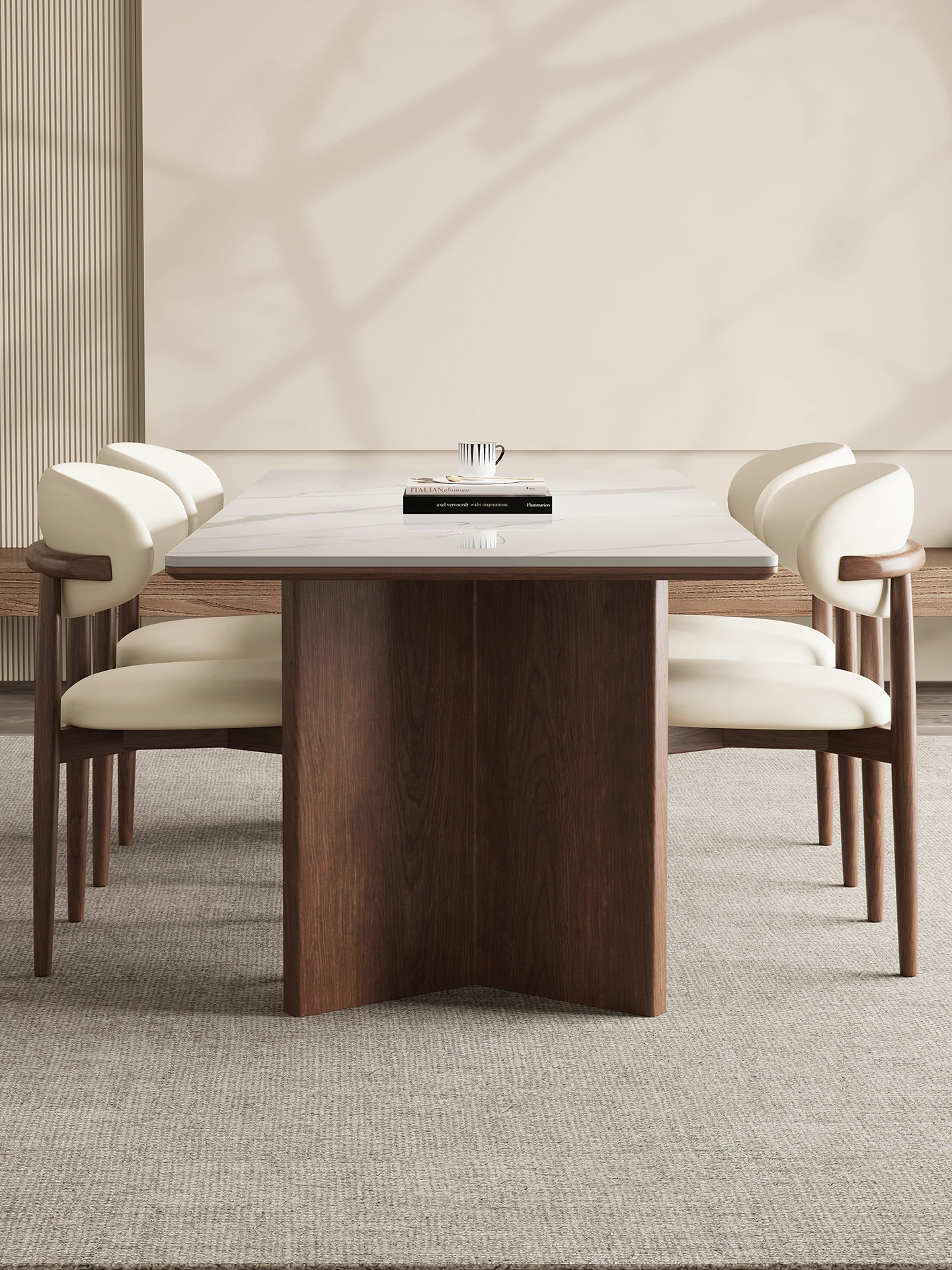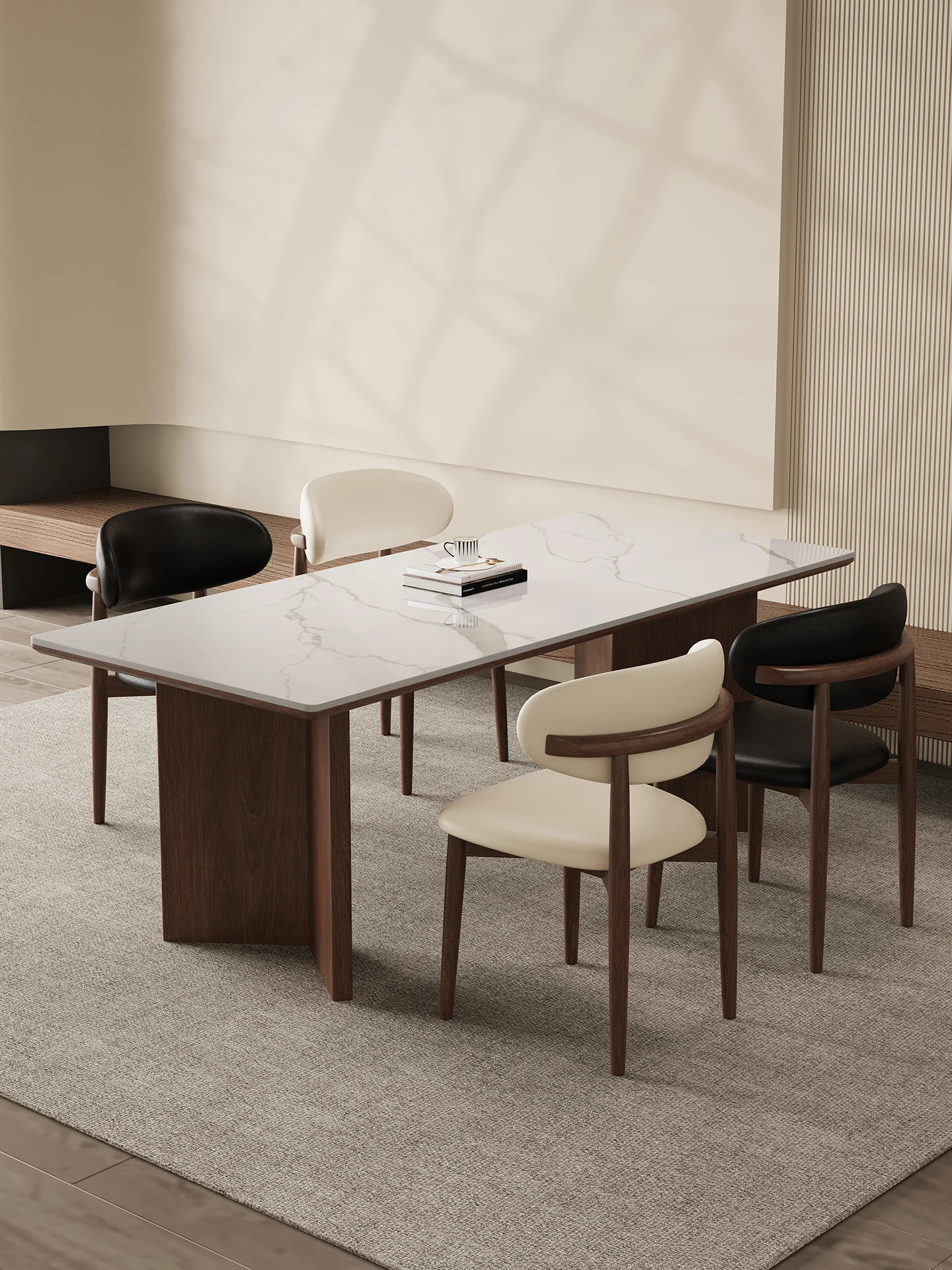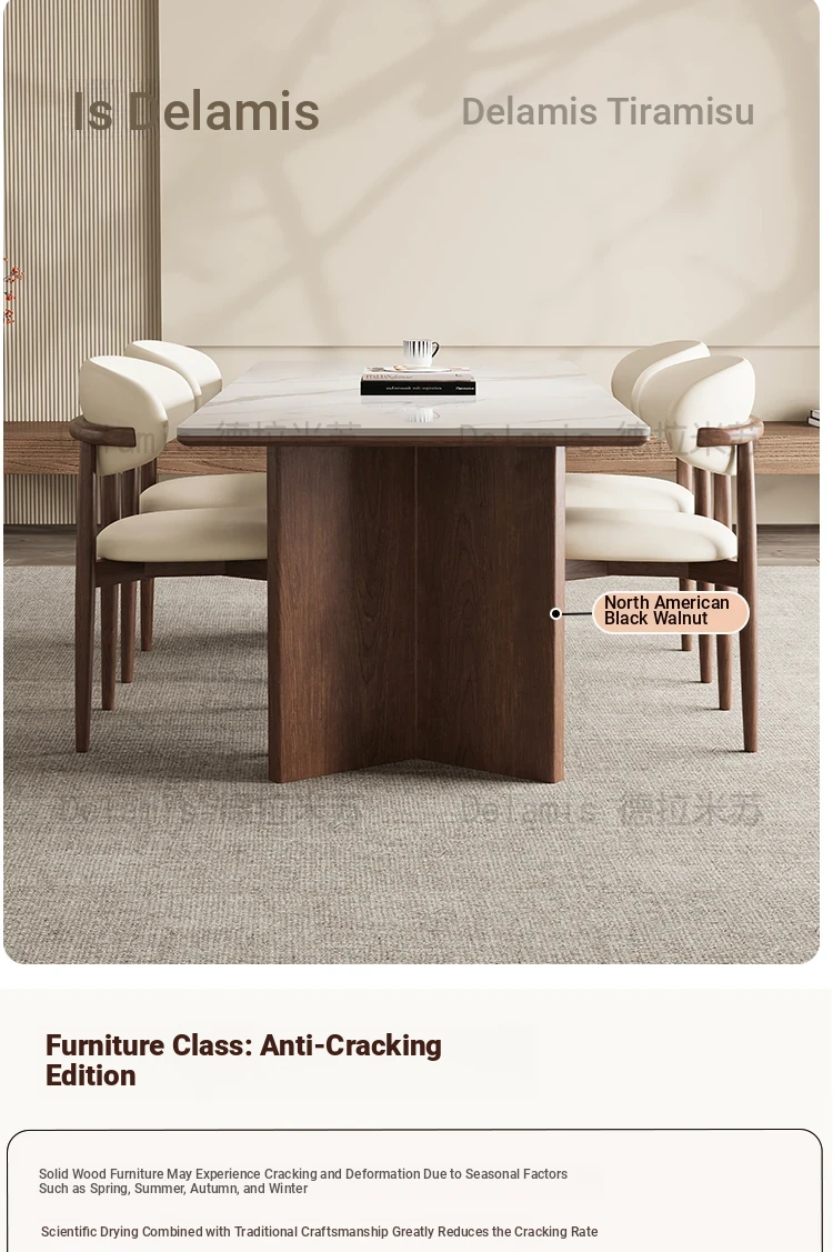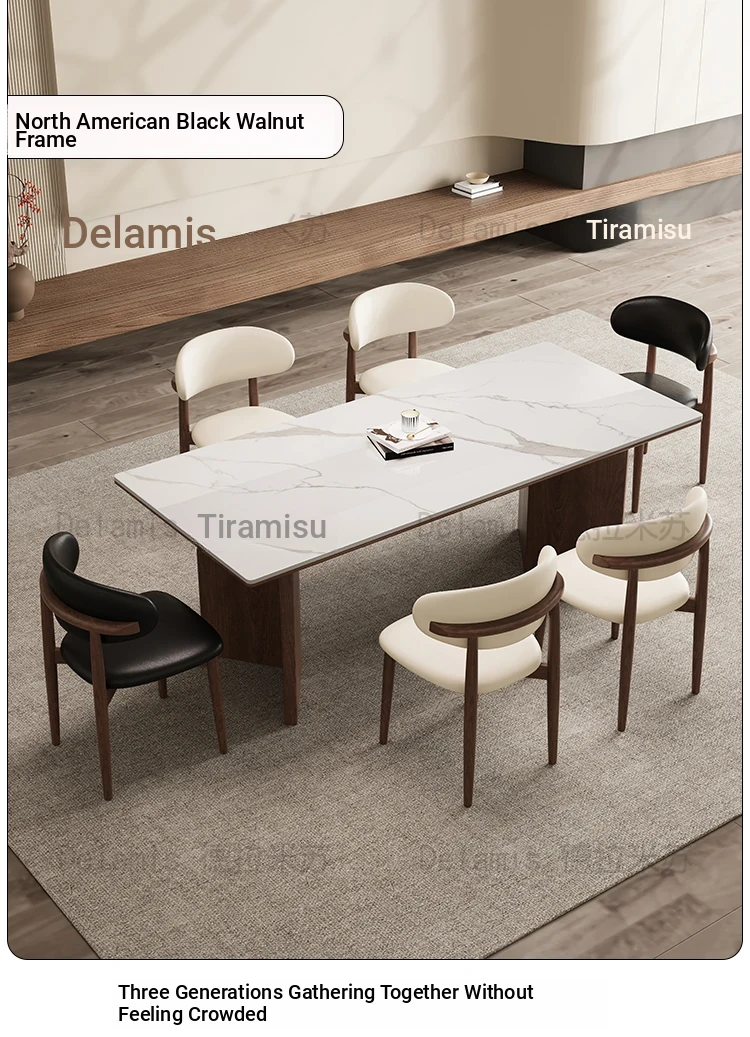 150*80 Walnut Dining Table [Delifeng Superior Board] + Solid Wood Dining Chair * 6