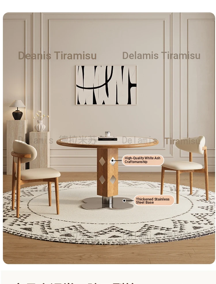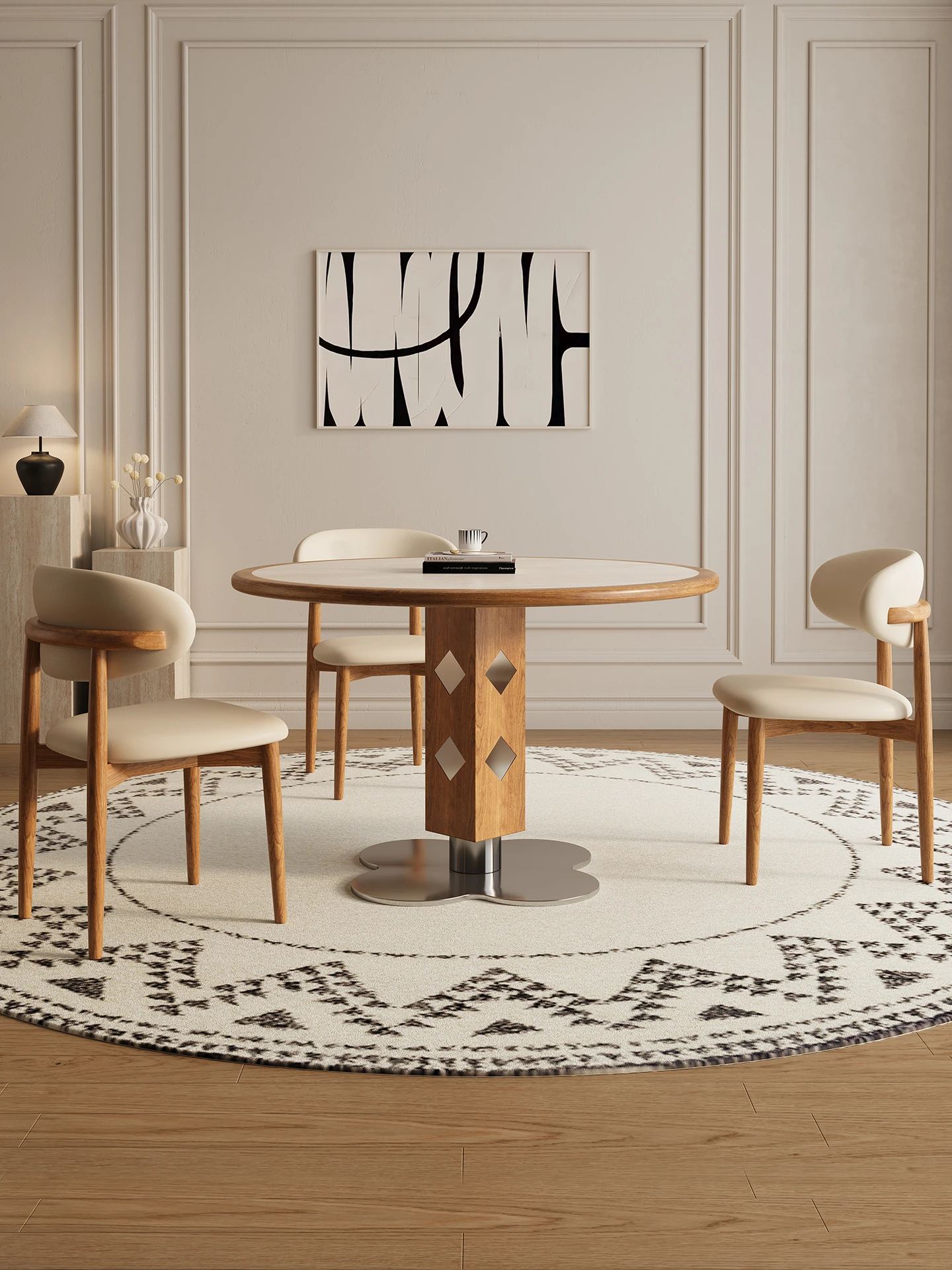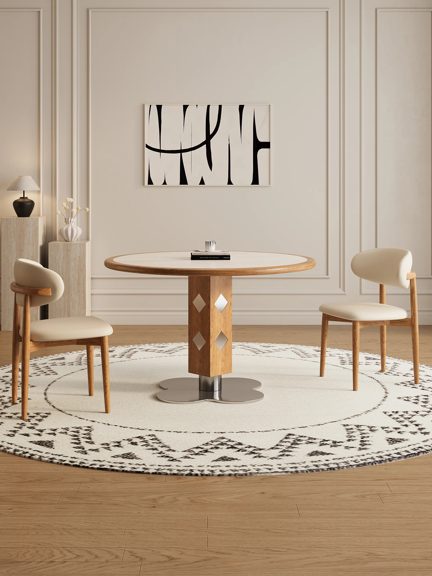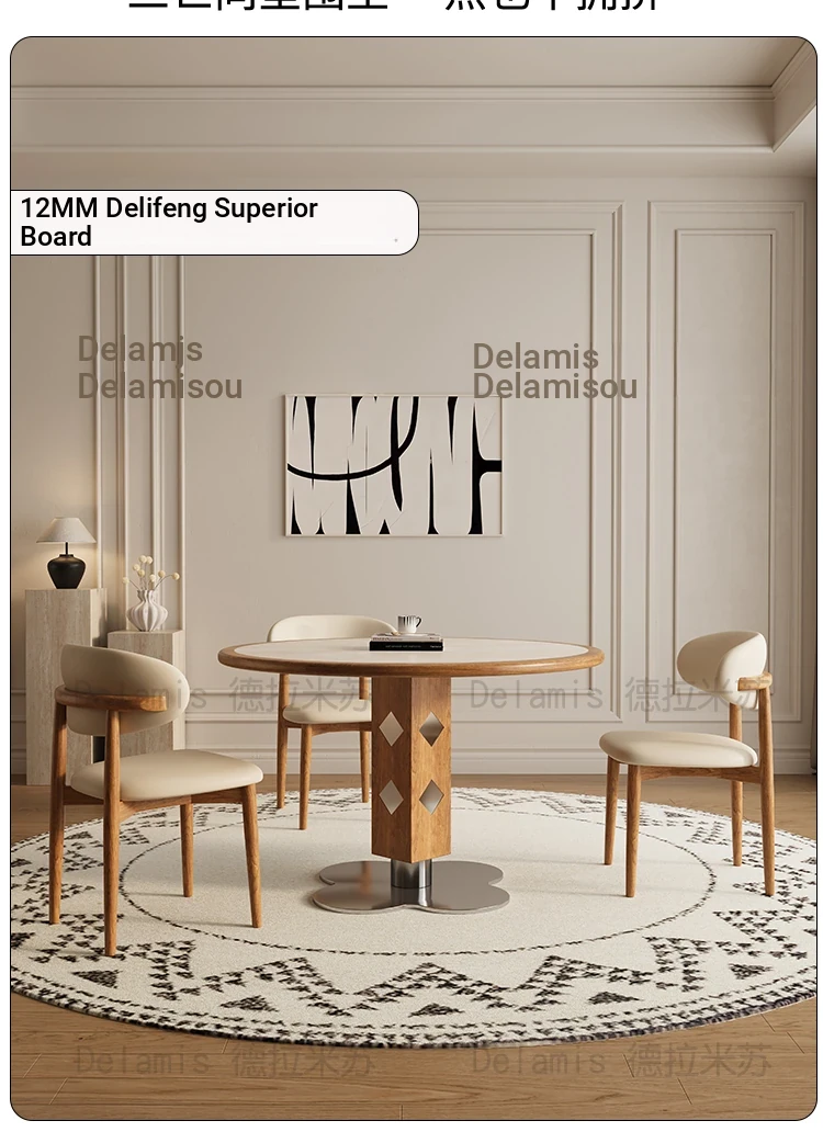 Delifeng Round Dining Table with Embedded Natural Wood Trim - French Cream Vintage Style, Perfect for Home Dining Experience, Sturdy Full Support Design
