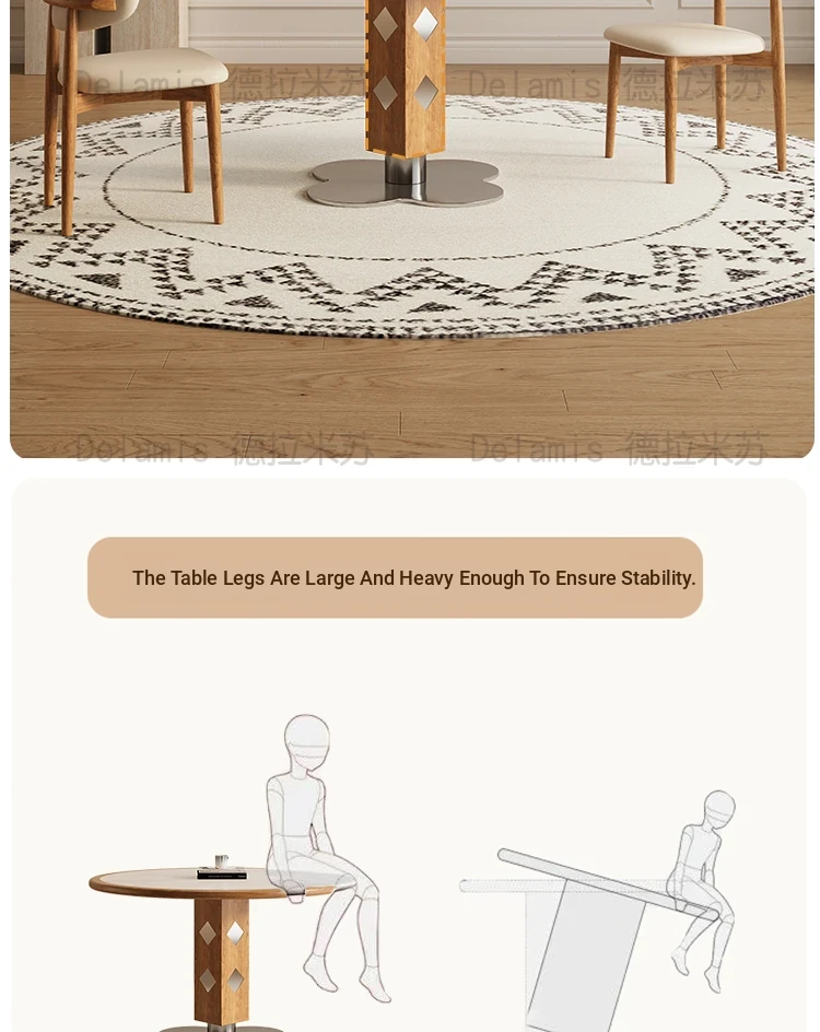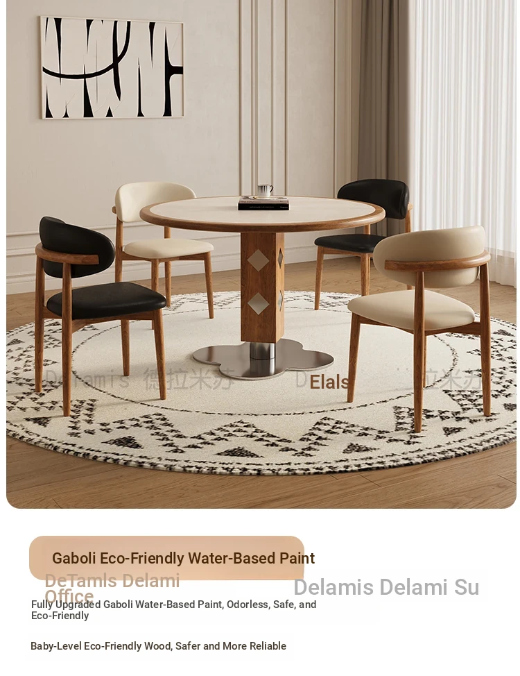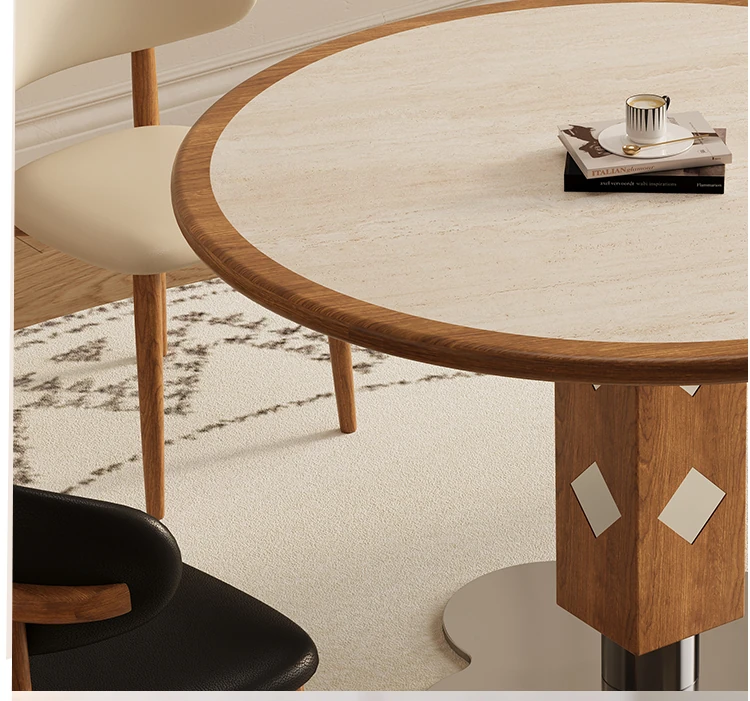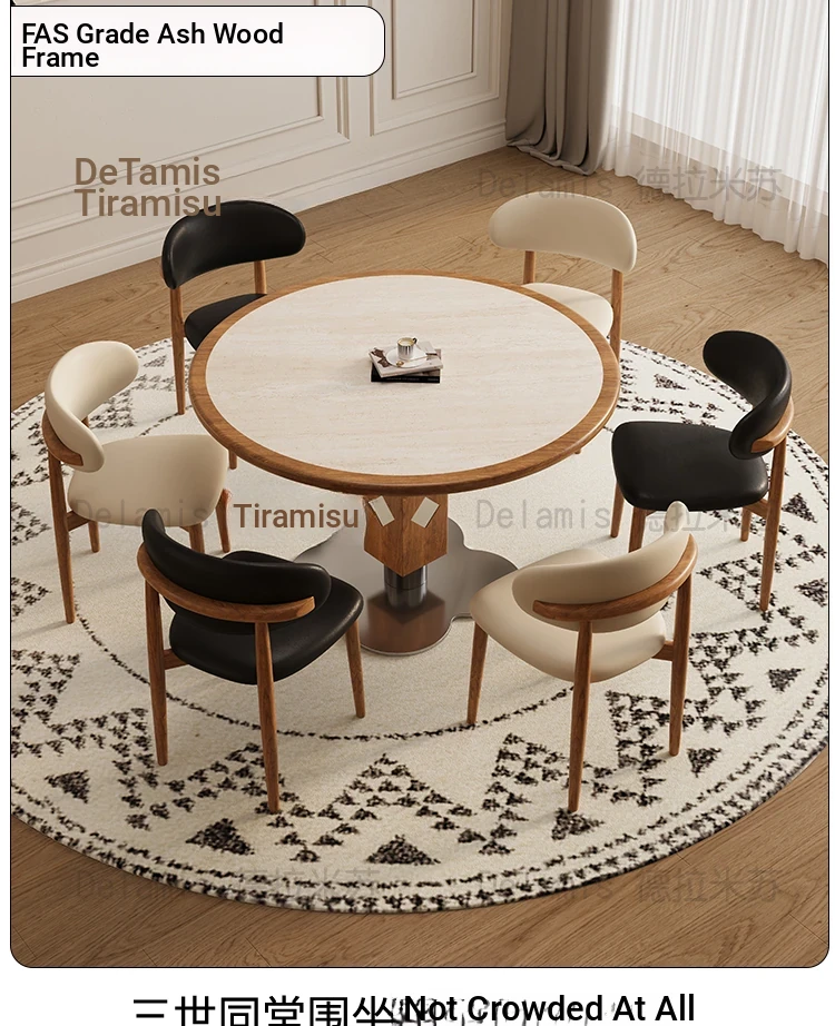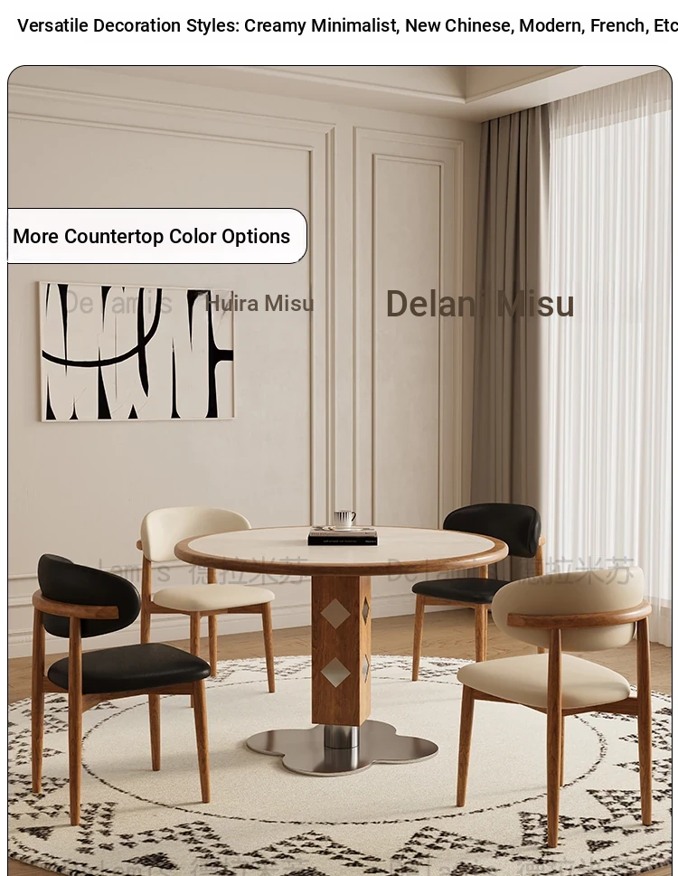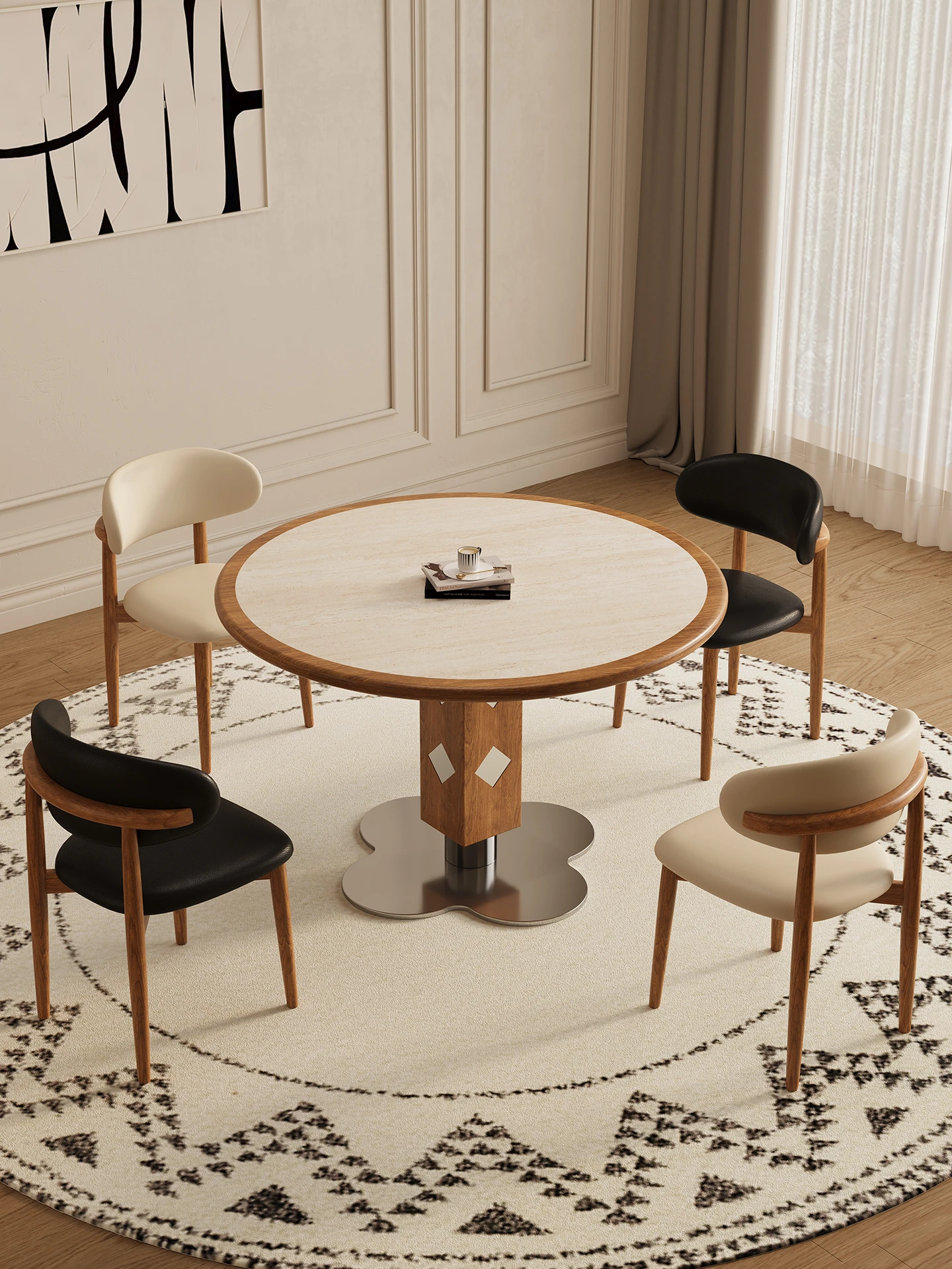 Delifeng Round Dining Table with Embedded Natural Wood Trim - French Cream Vintage Style, Perfect for Home Dining Experience, Sturdy Full Support Design
