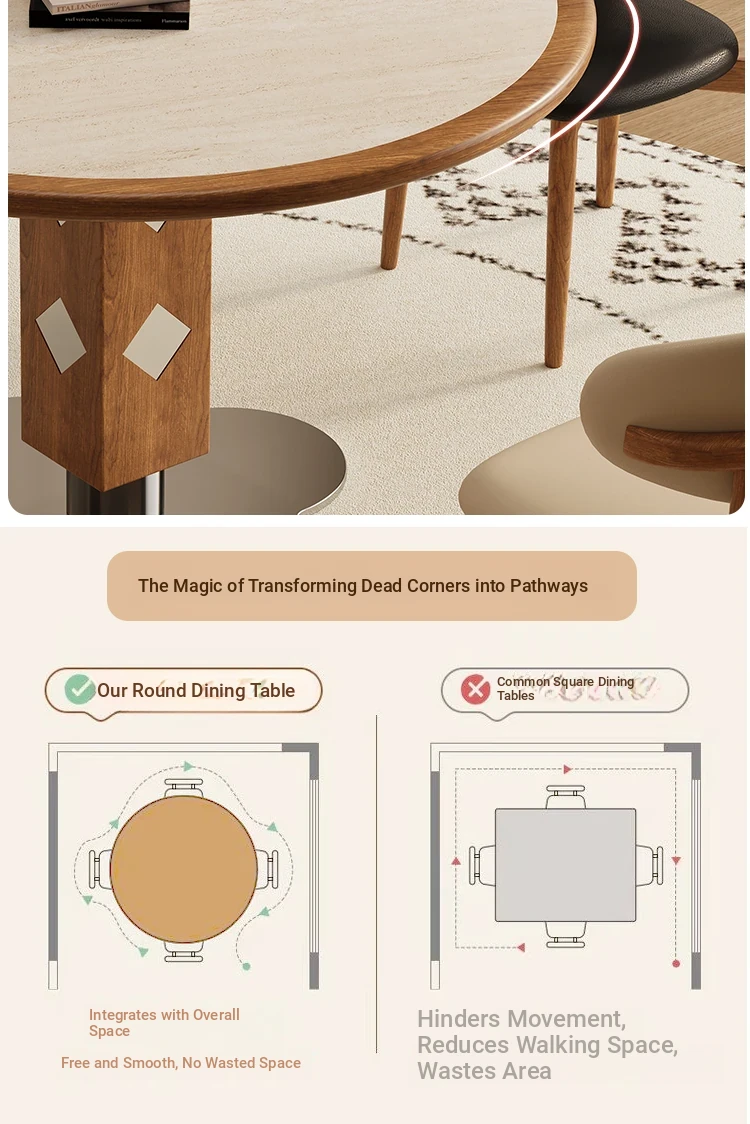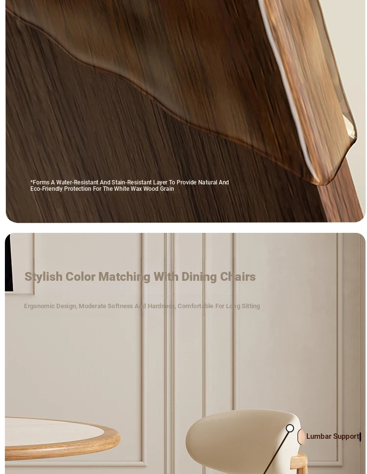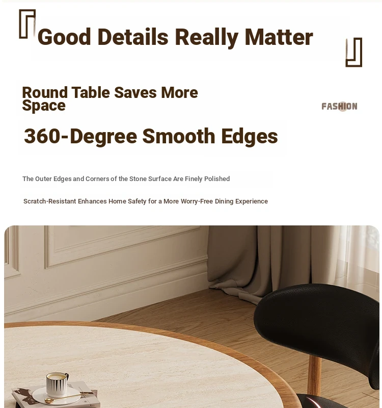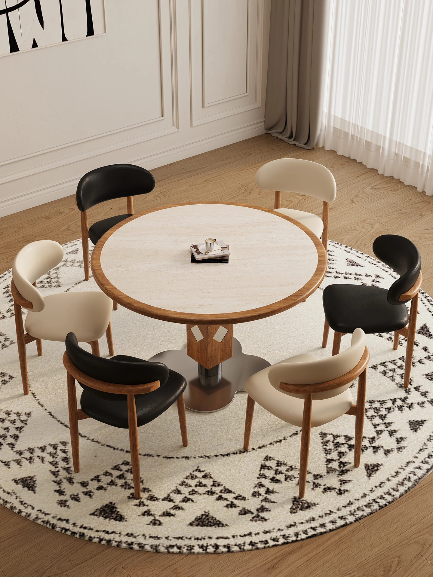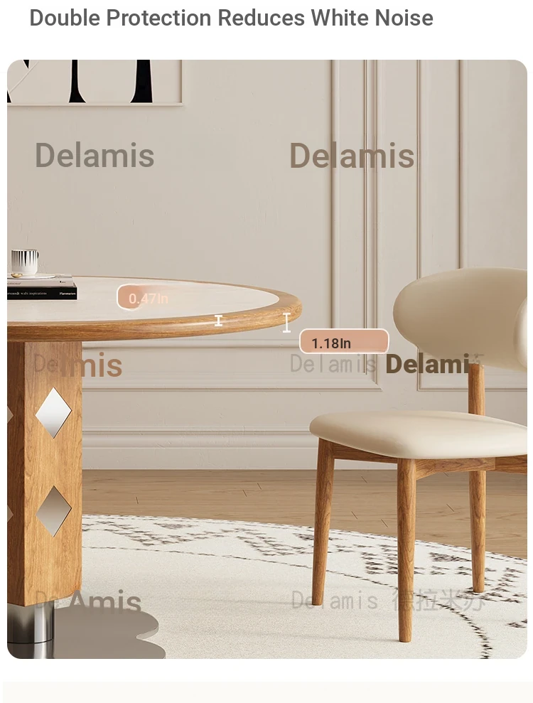 Delifeng Round Dining Table with Embedded Natural Wood Trim - French Cream Vintage Style, Perfect for Home Dining Experience, Sturdy Full Support Design