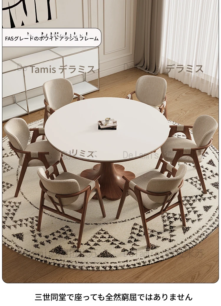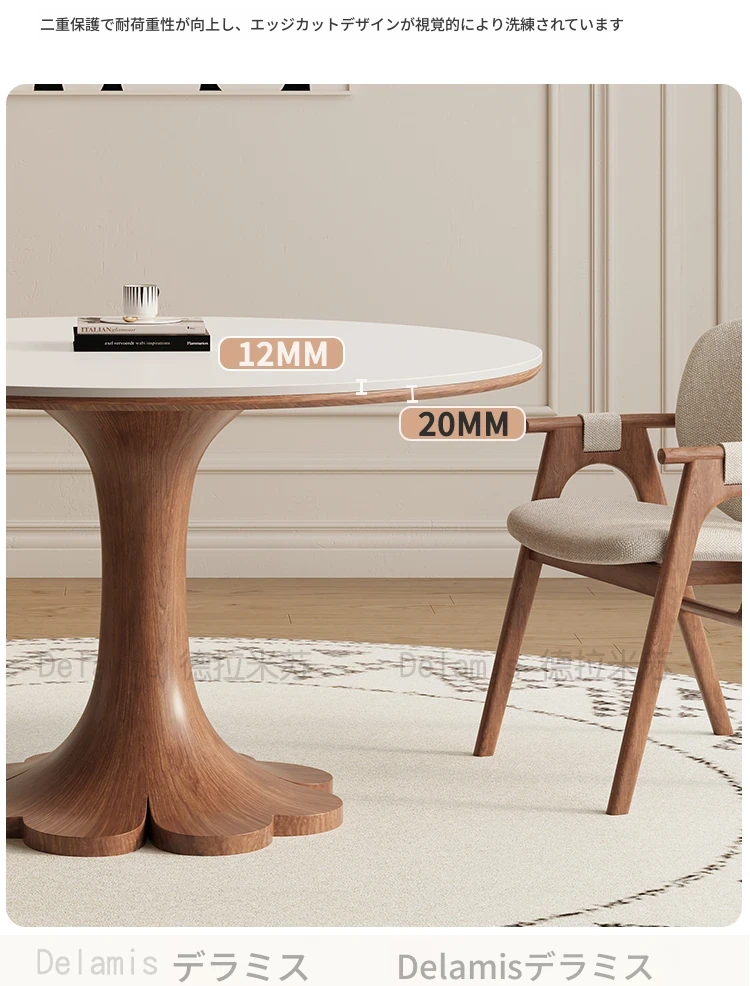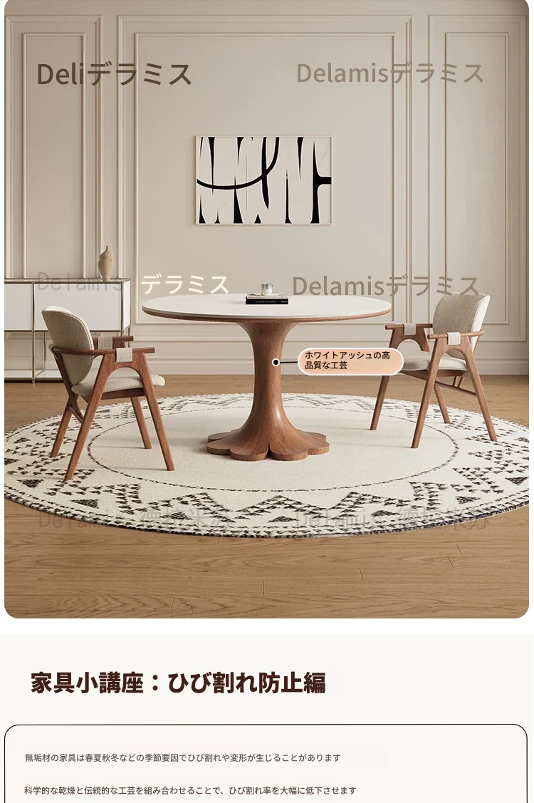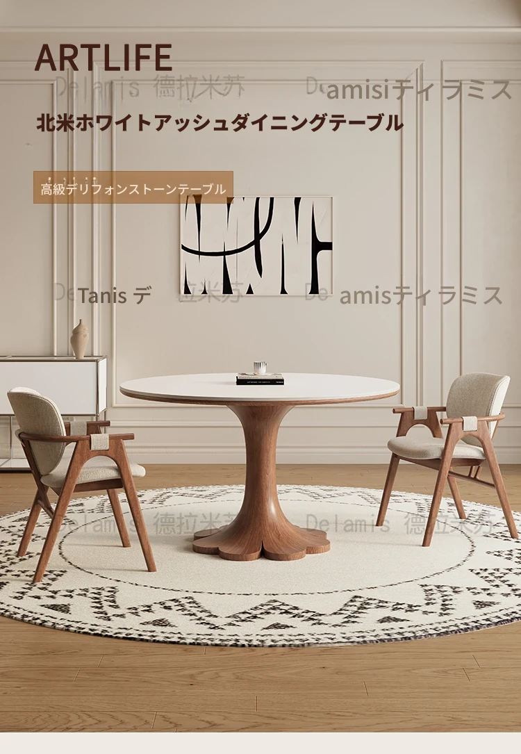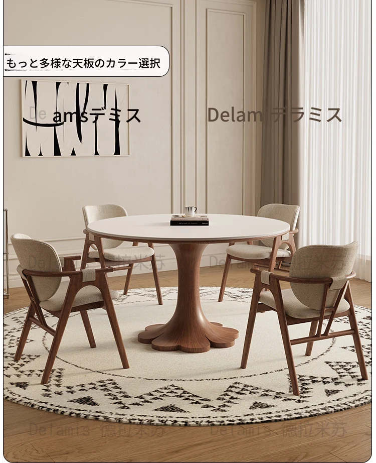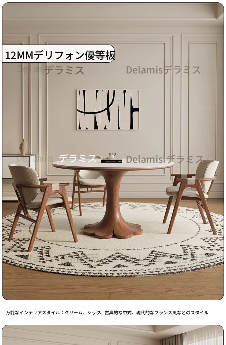 デリフォンの高級丸テーブル - 家庭用胡桃色フレンチクリーム中古スタイル、全木製の贅沢なダイニングテーブルで、特別な食事体験を演出します。