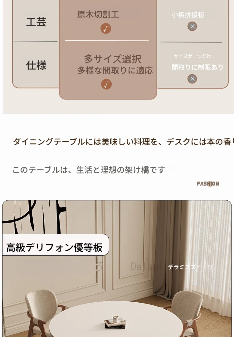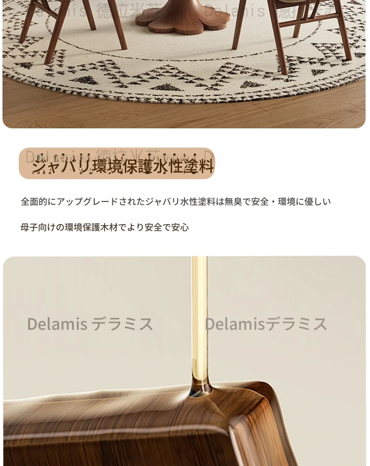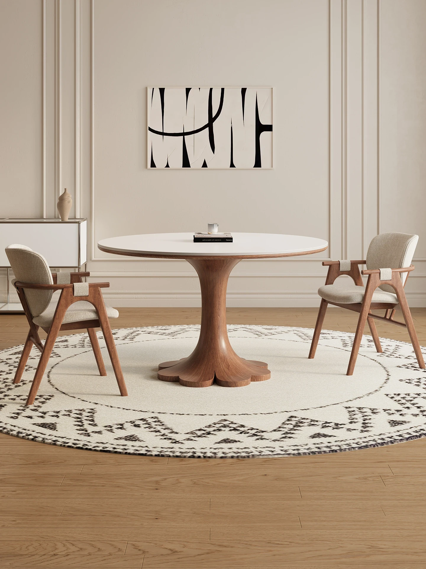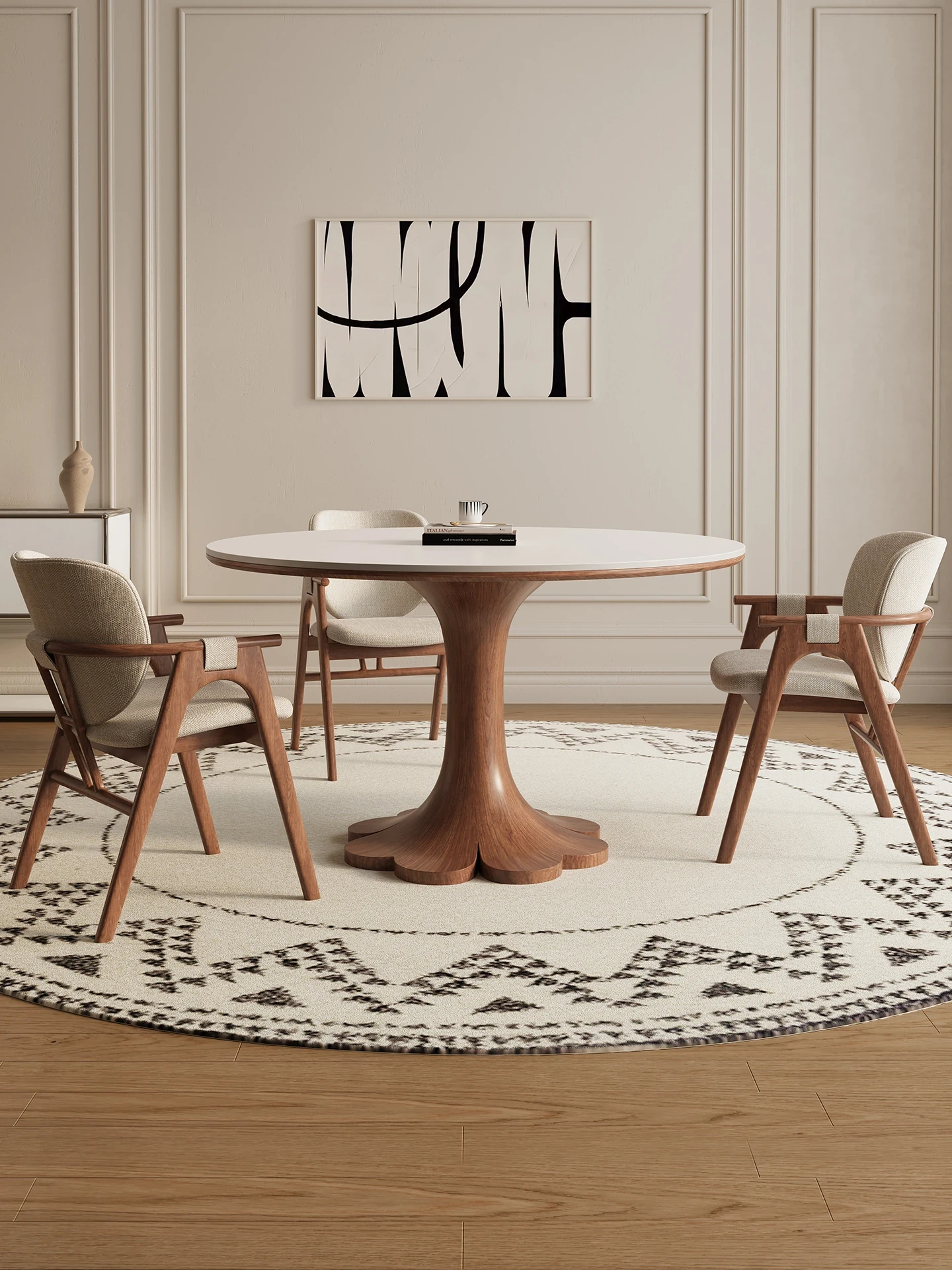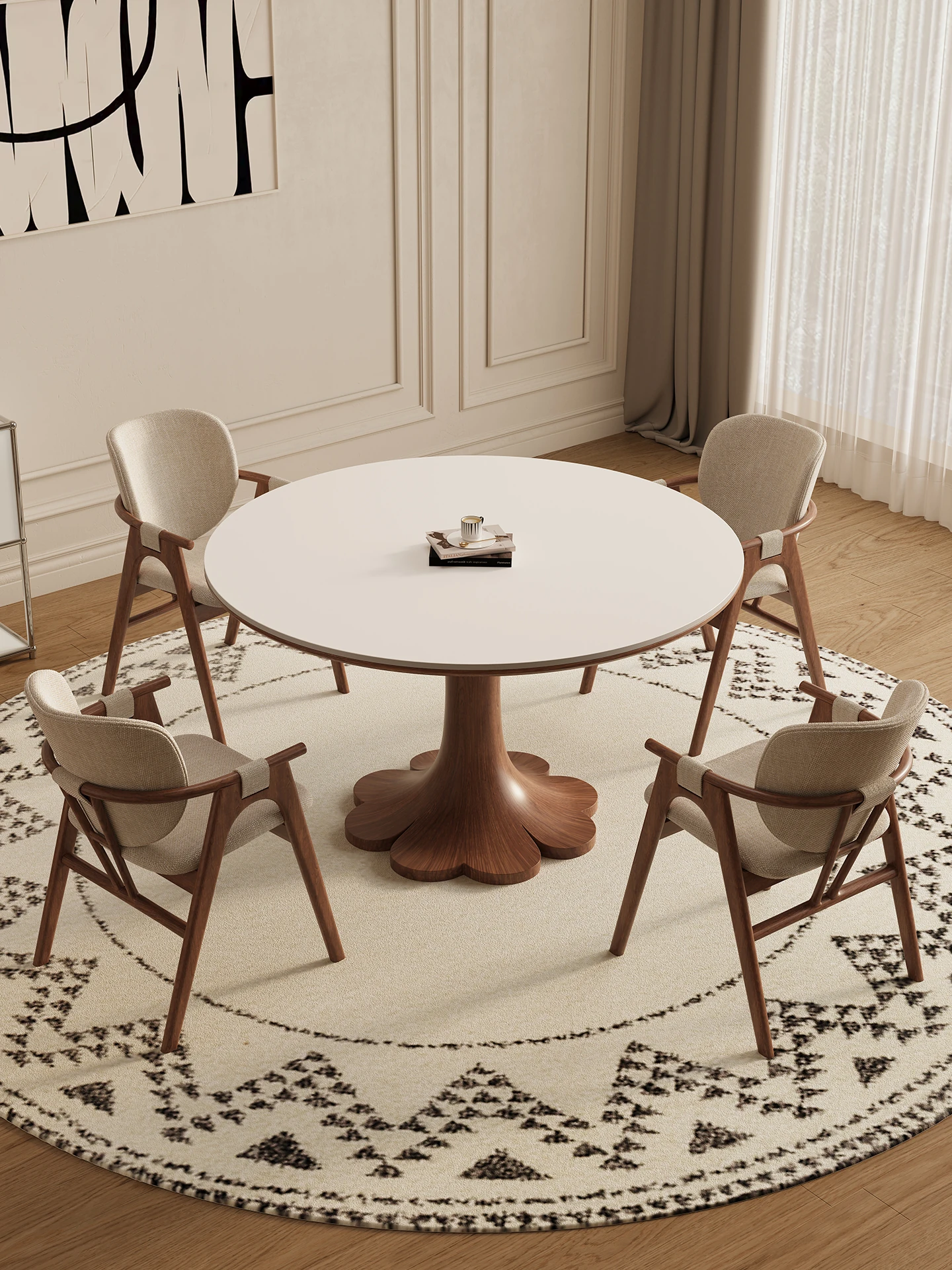 デリフォンの高級丸テーブル - 家庭用胡桃色フレンチクリーム中古スタイル、全木製の贅沢なダイニングテーブルで、特別な食事体験を演出します。