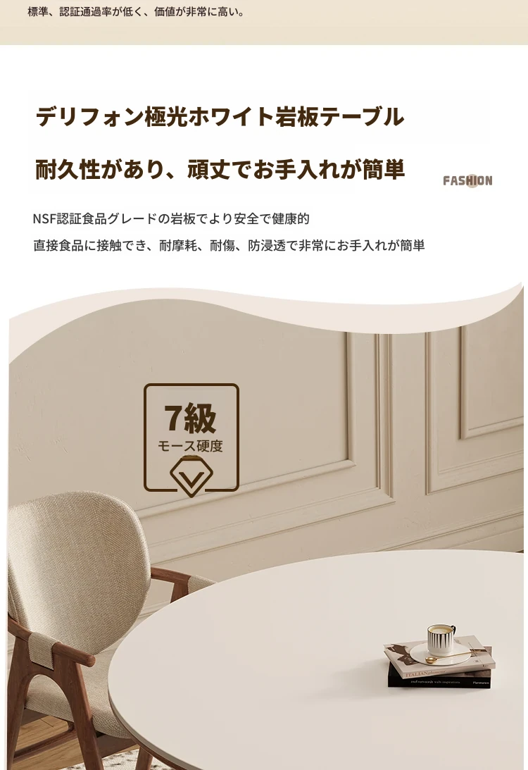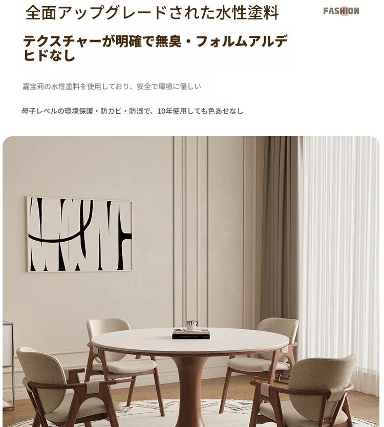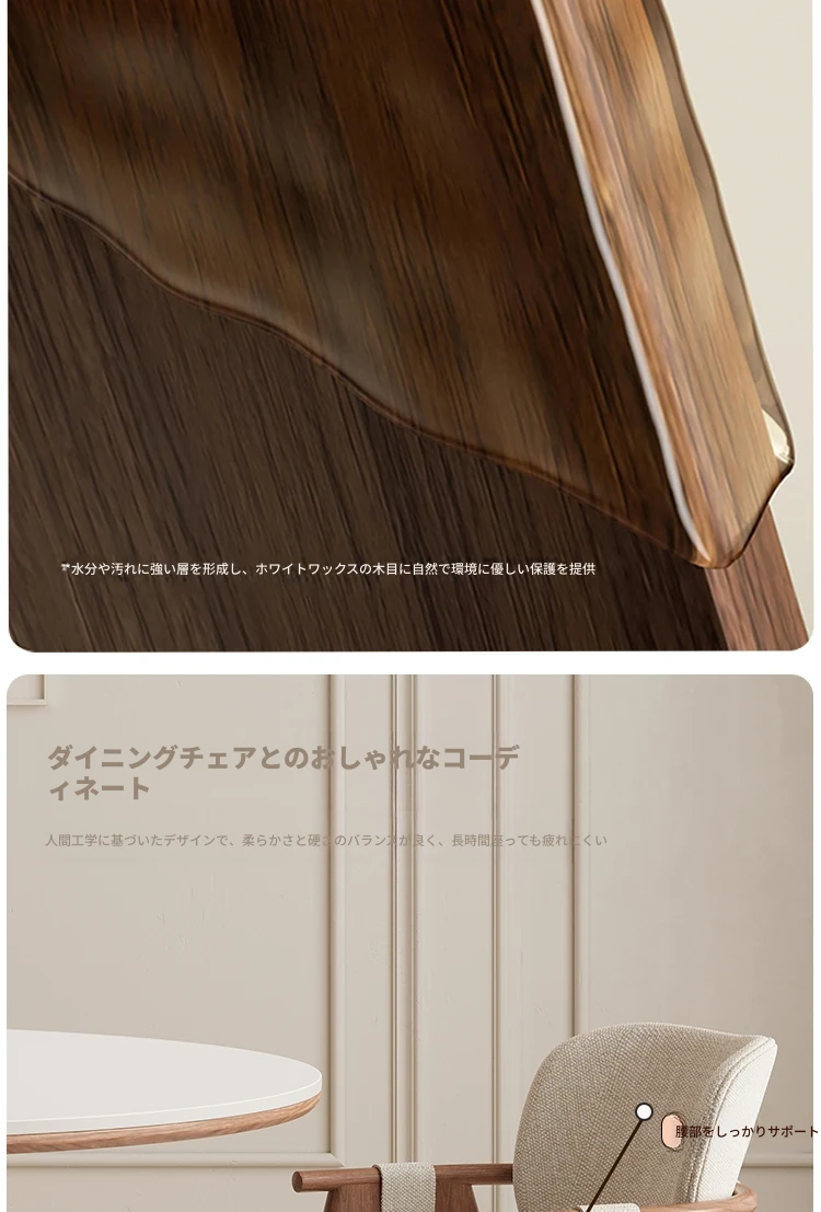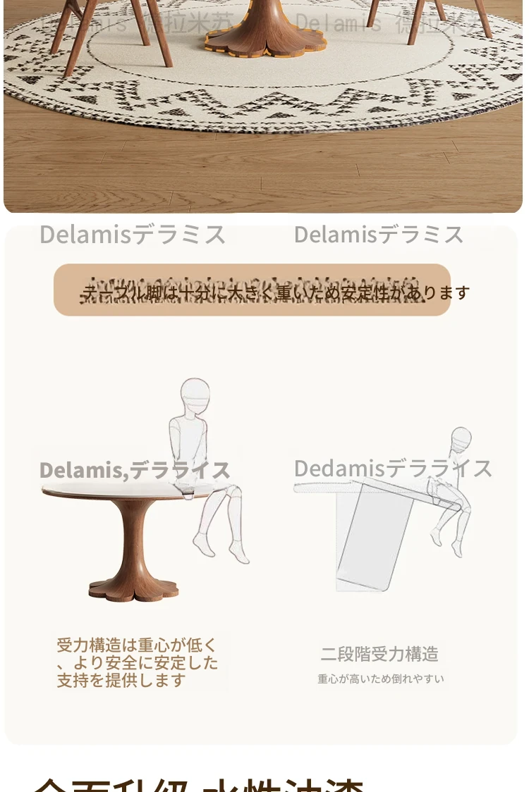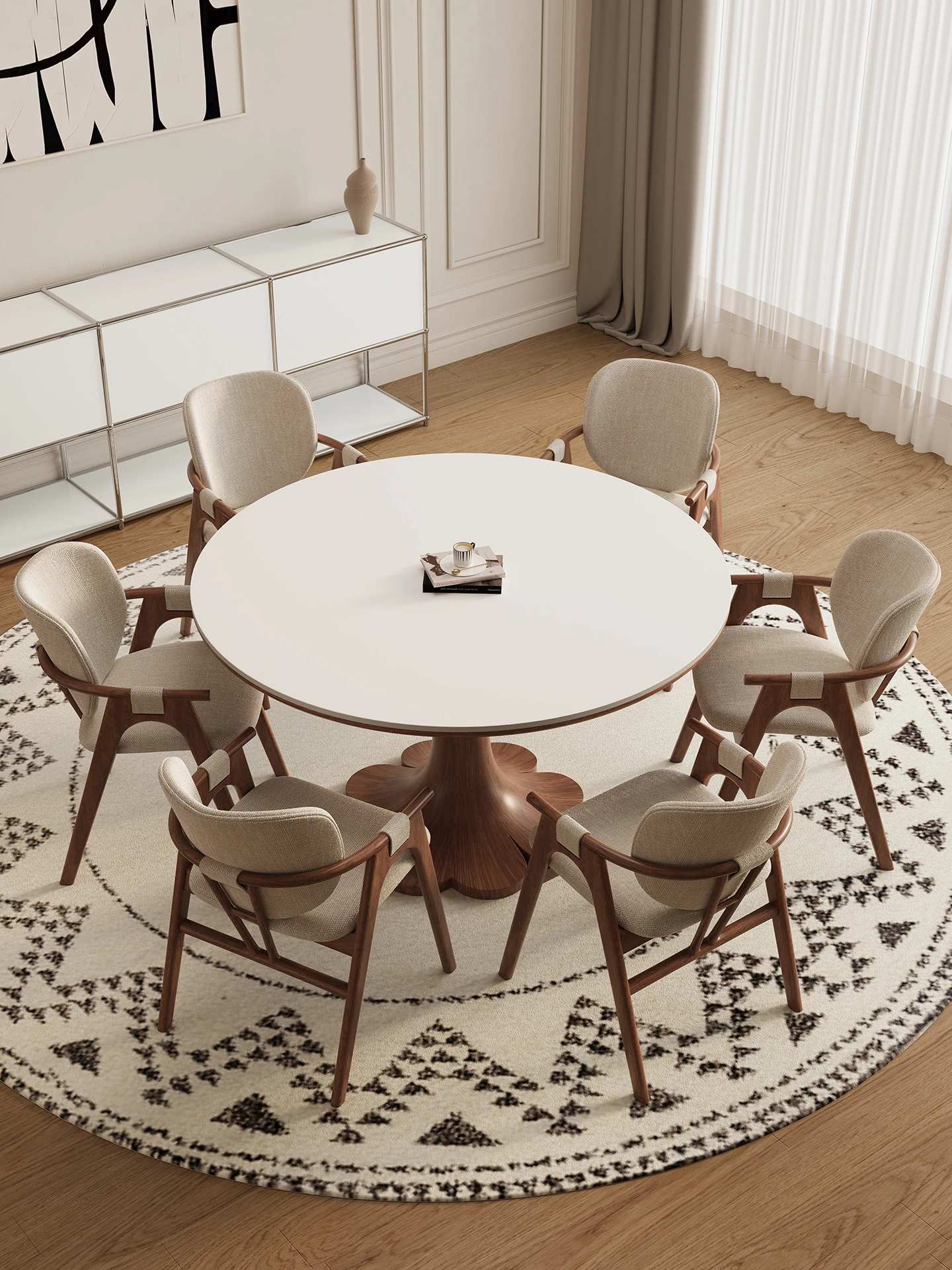 デリフォンの高級丸テーブル - 家庭用胡桃色フレンチクリーム中古スタイル、全木製の贅沢なダイニングテーブルで、特別な食事体験を演出します。
