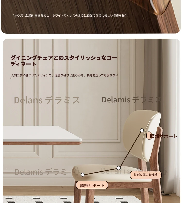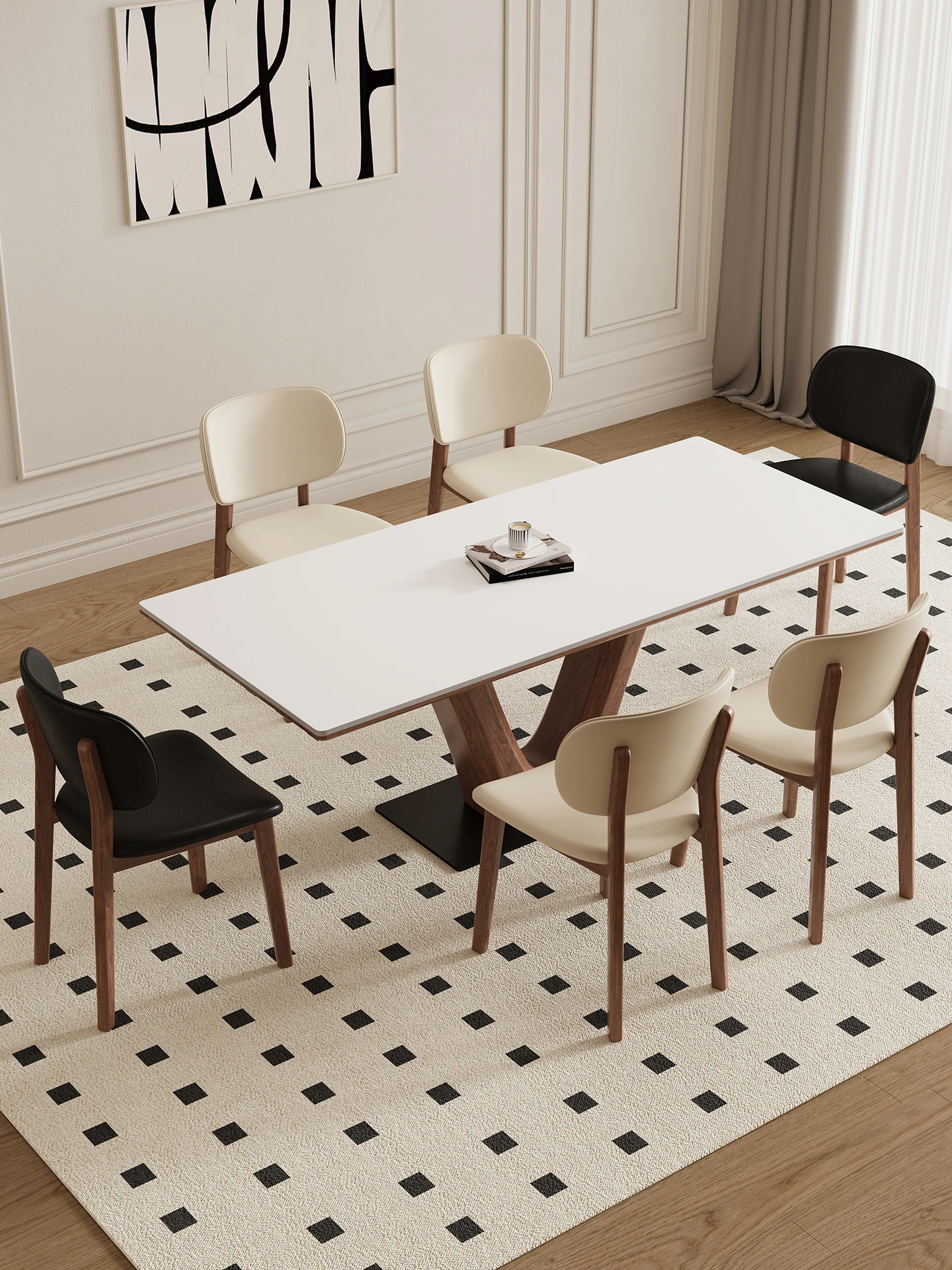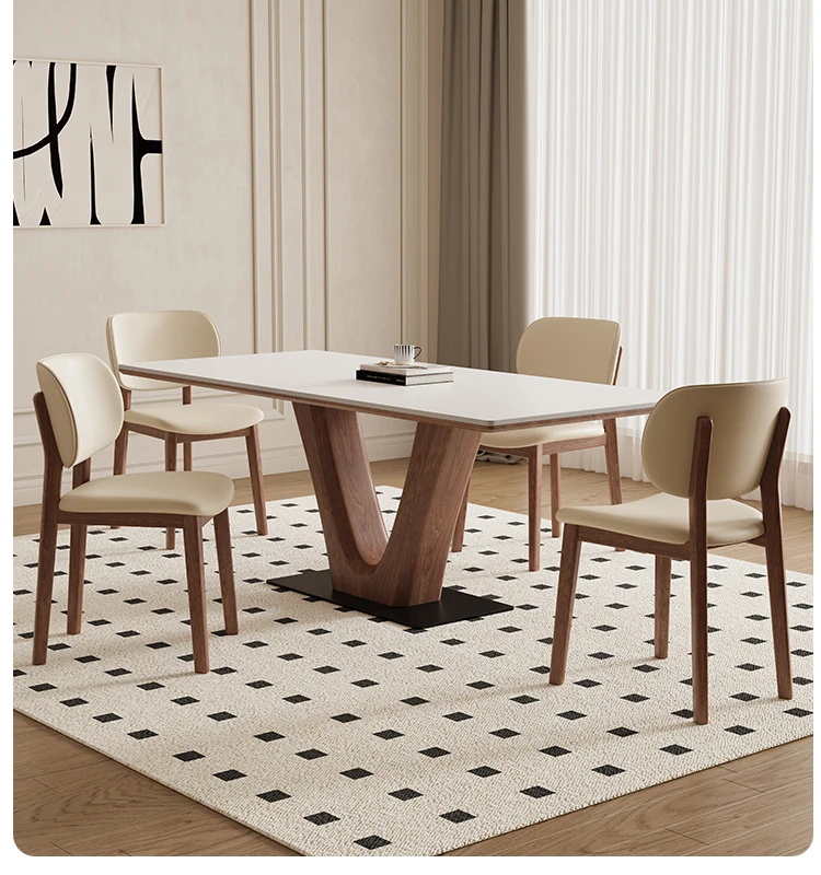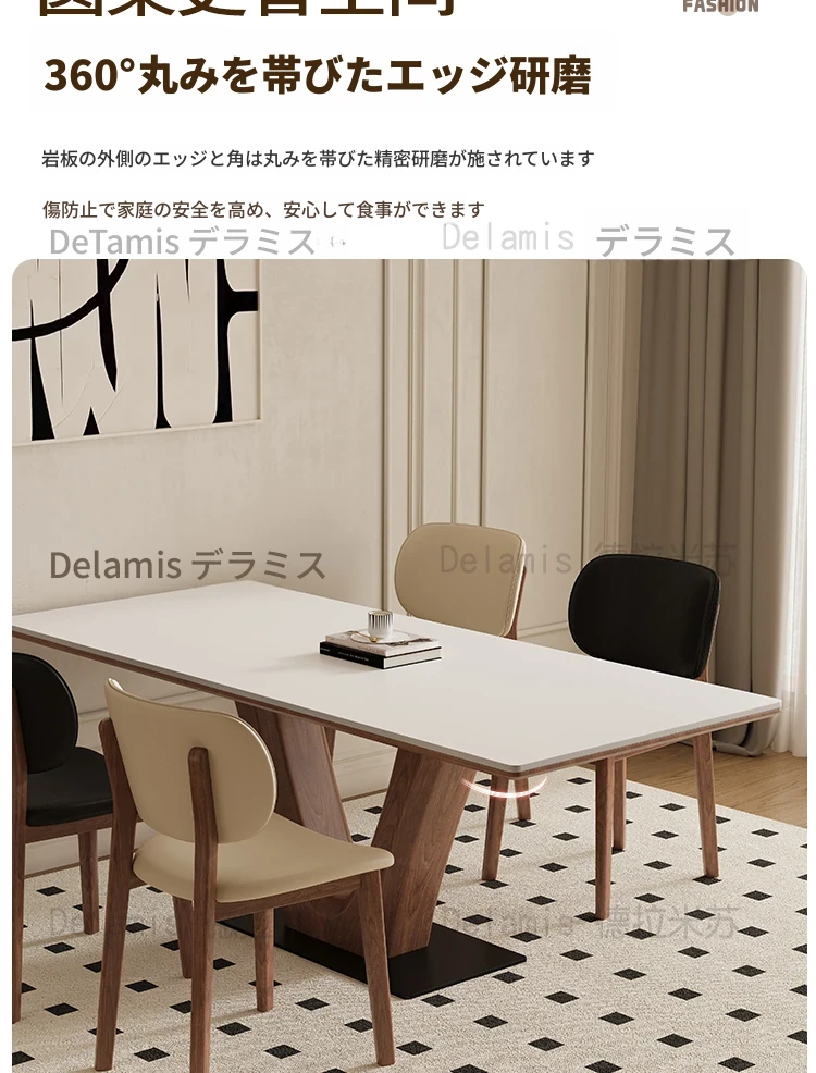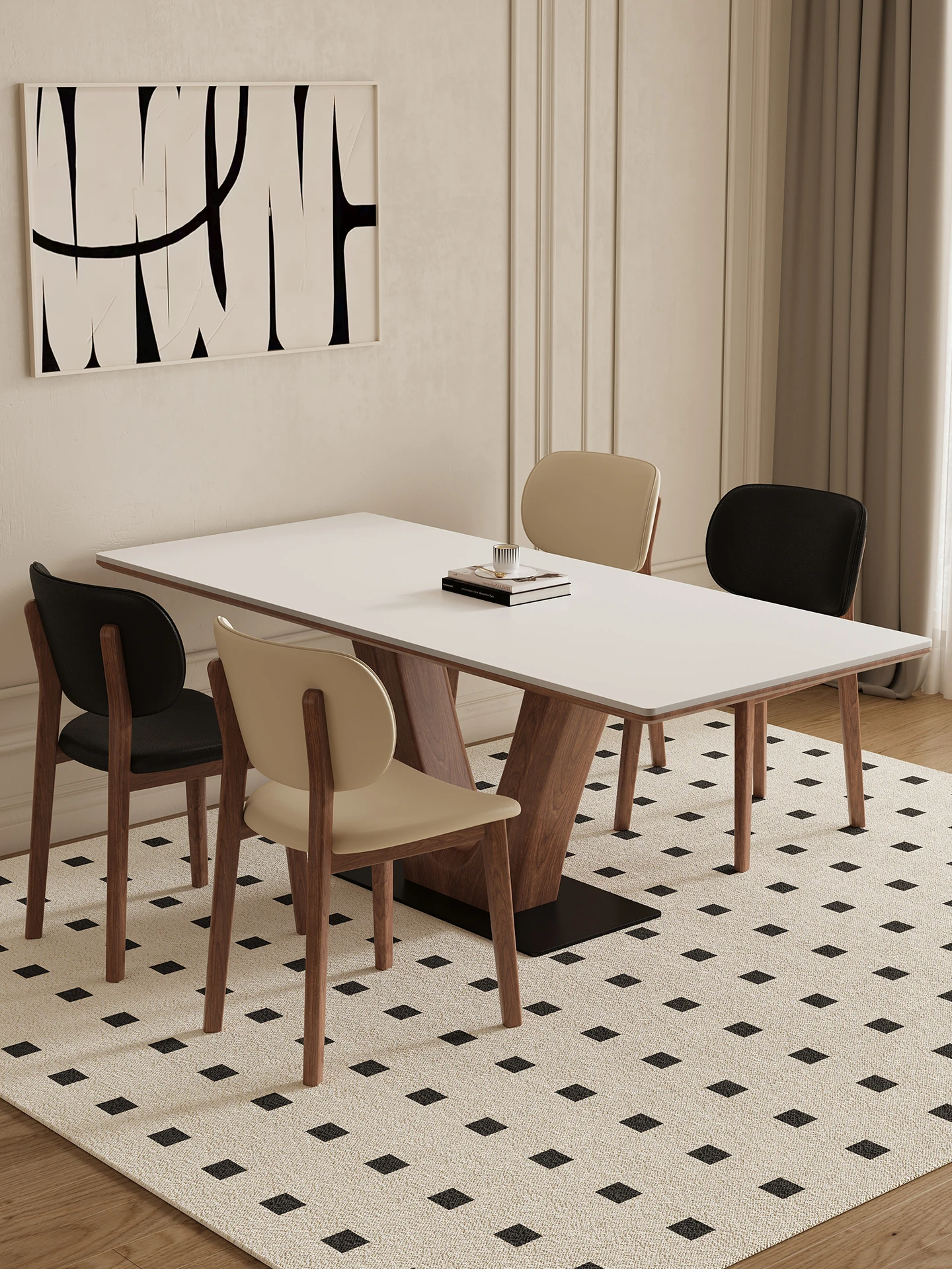 デリフォン無垢材ロックボードダイニングテーブル 家庭用ウォールナット色 フレンチクリーム風 中古デザインの長方形食卓 - 高級感溢れるデザインで、おしゃれな食卓を演出!
