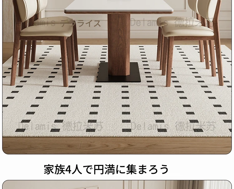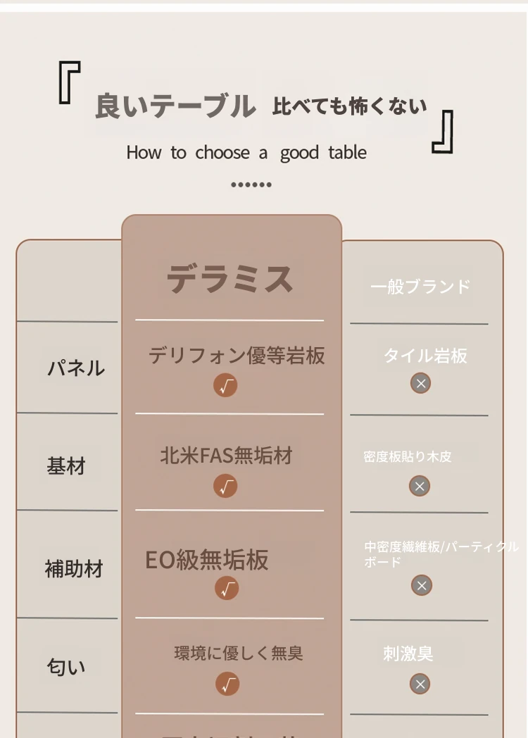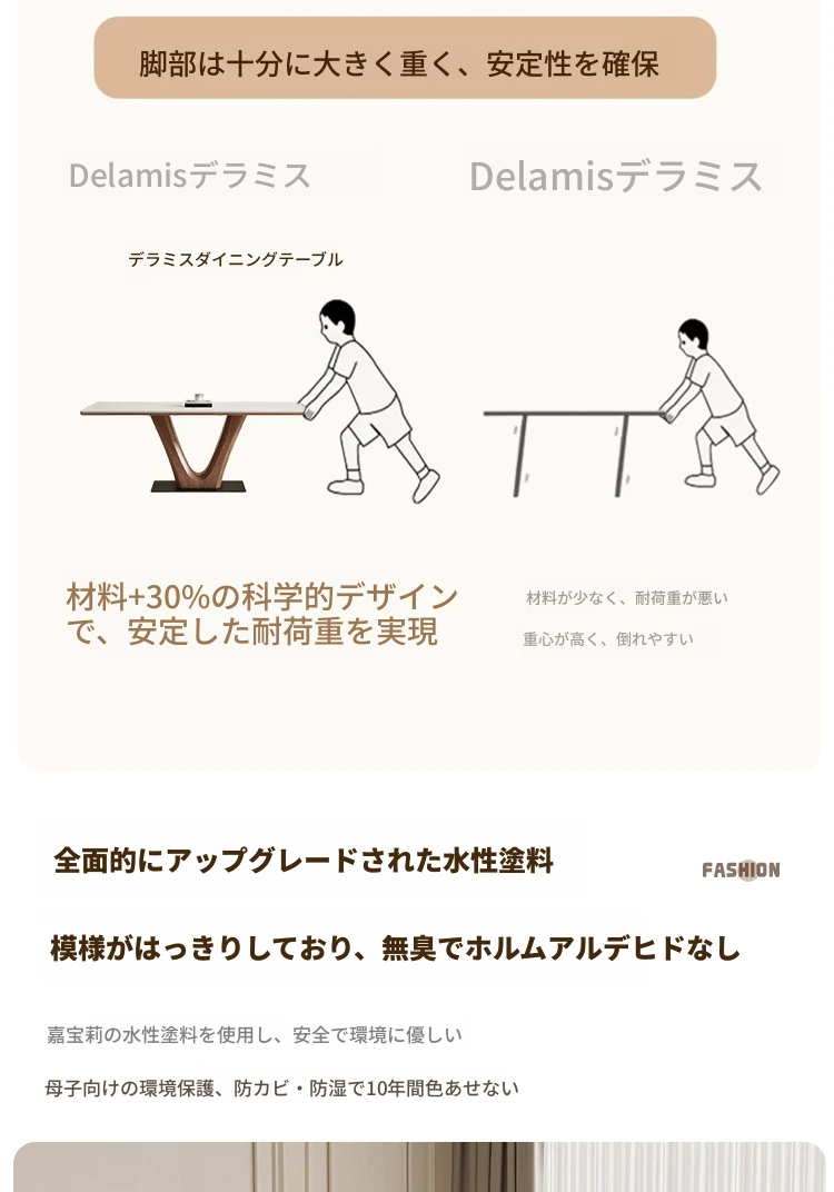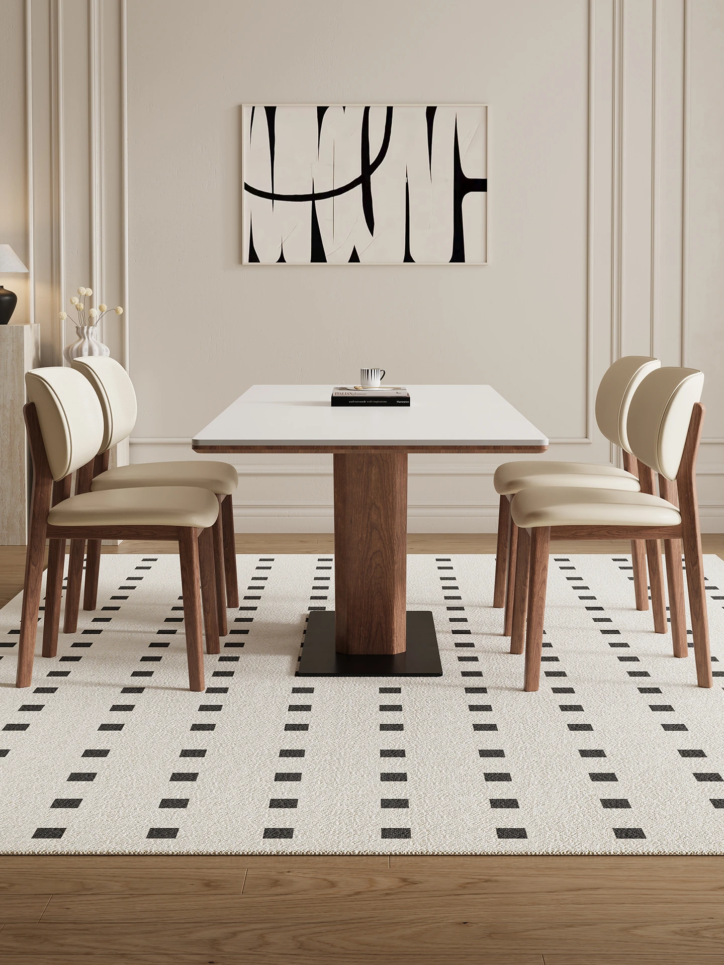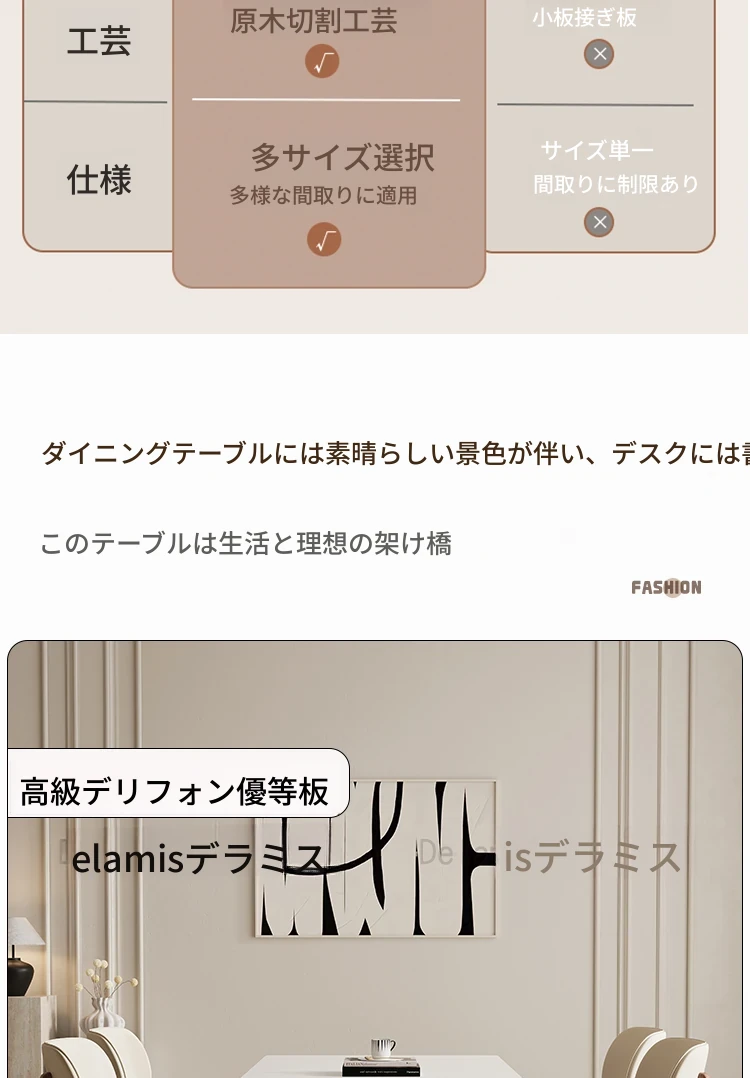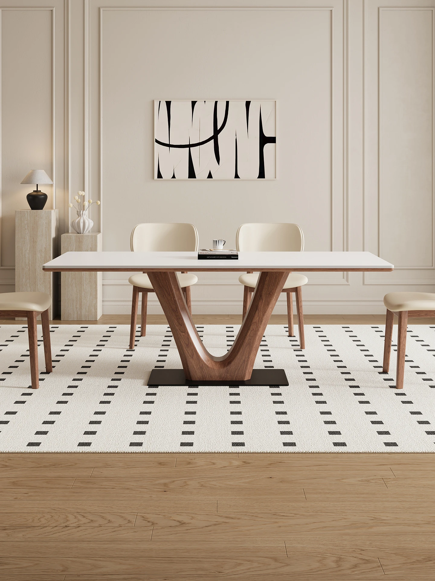 デリフォン無垢材ロックボードダイニングテーブル 家庭用ウォールナット色 フレンチクリーム風 中古デザインの長方形食卓 - 高級感溢れるデザインで、おしゃれな食卓を演出!