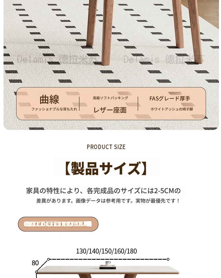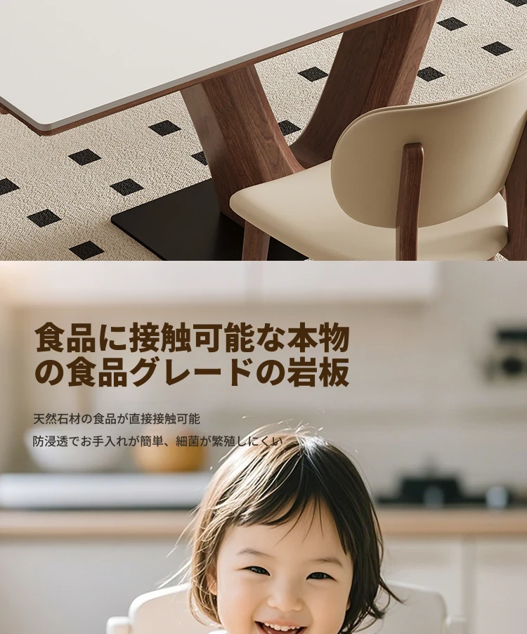 1.5メートル+ダイニングチェア*6【高級デリフォン岩板】
