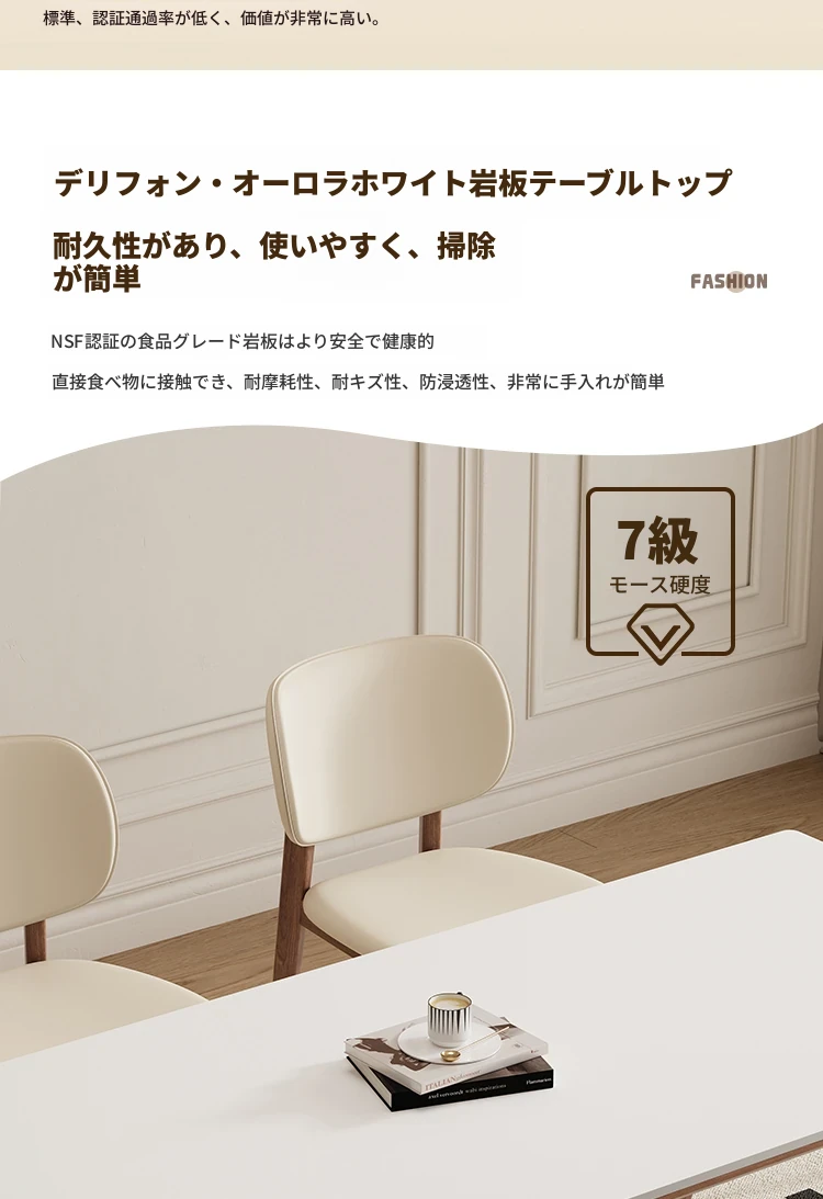 1.8メートル+ダイニングチェア*6【高級デリフォン岩板】