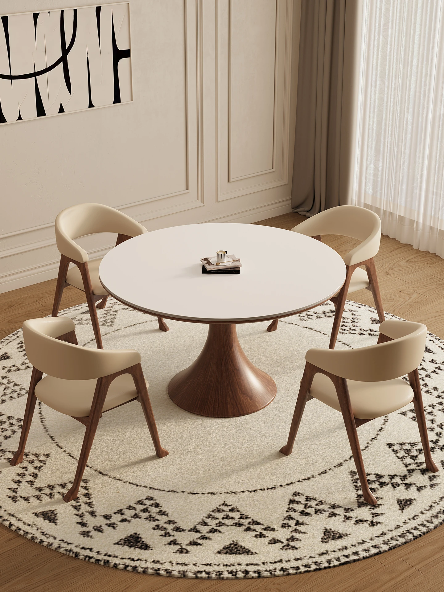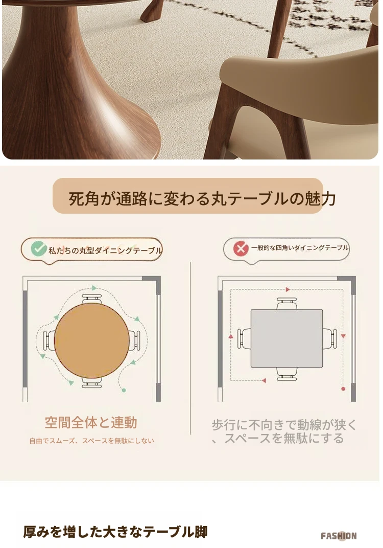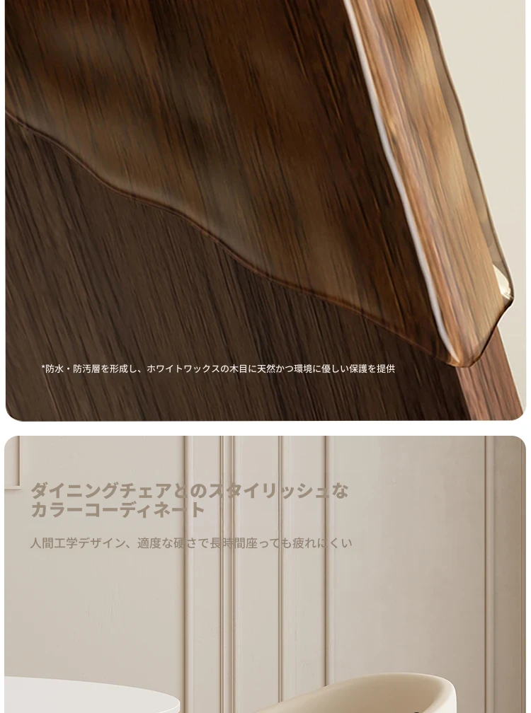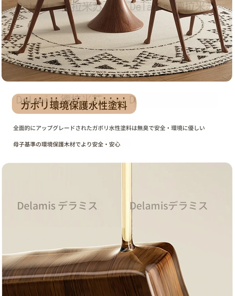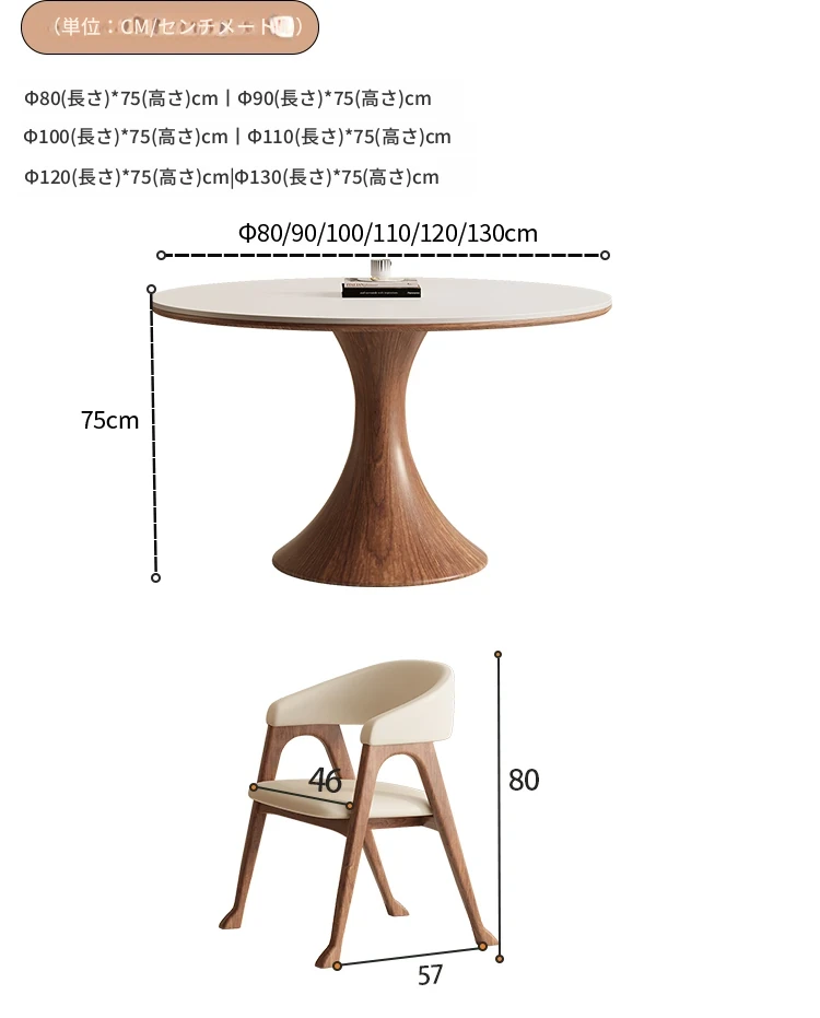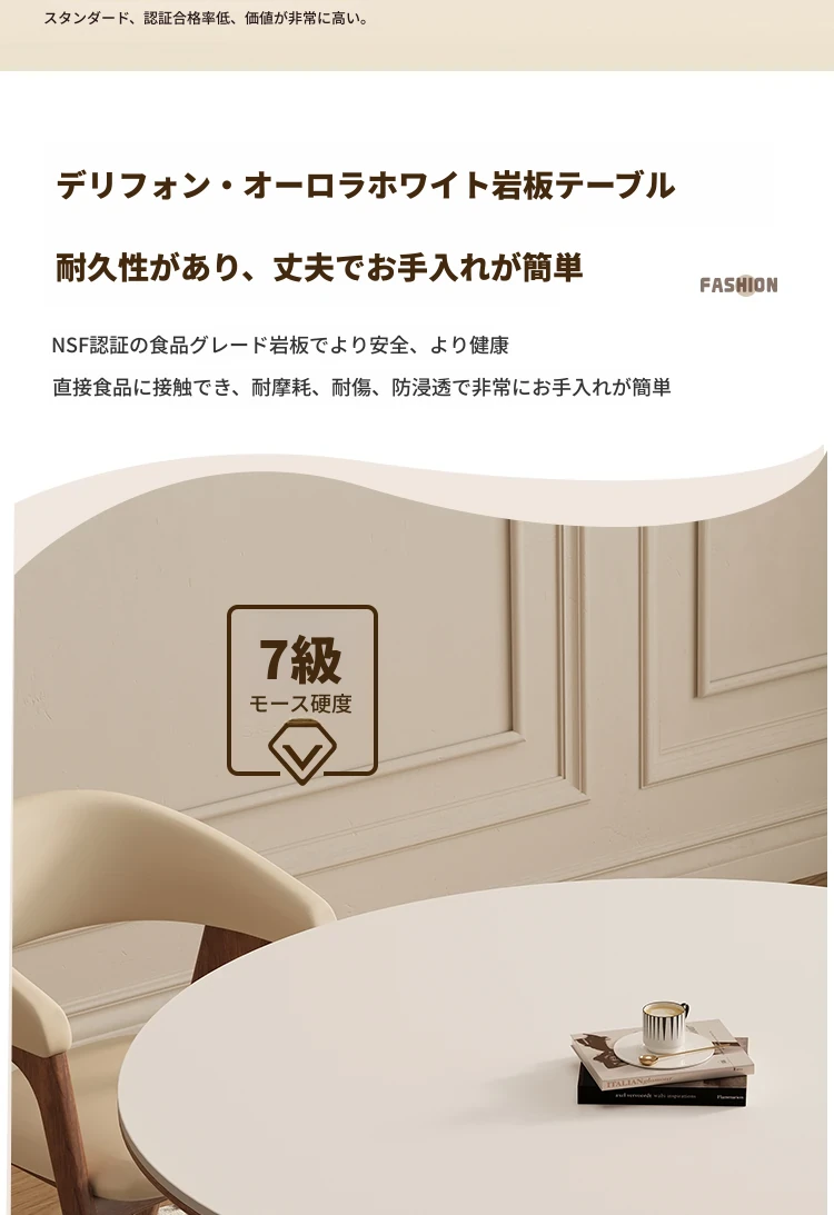 デリフォン無垢材の岩板ダイニングテーブル - 高級フレンチクリームスタイルのミニマルデザイン、狭いスペースにも最適な全支え型ラウンドテーブル。おしゃれでエレガントな食卓を演出します!