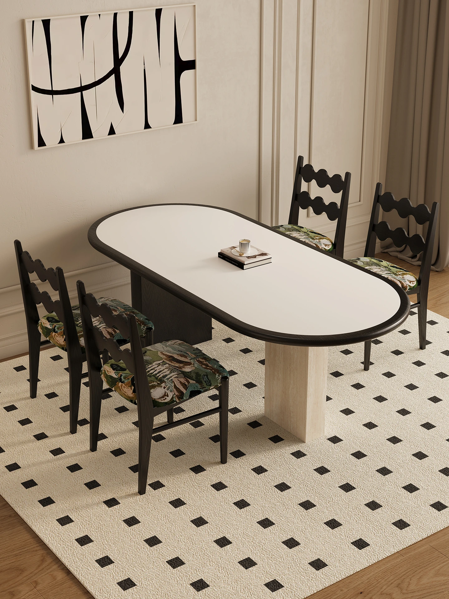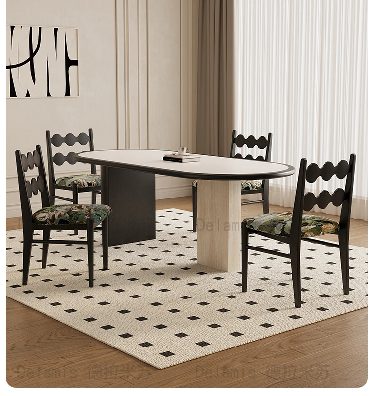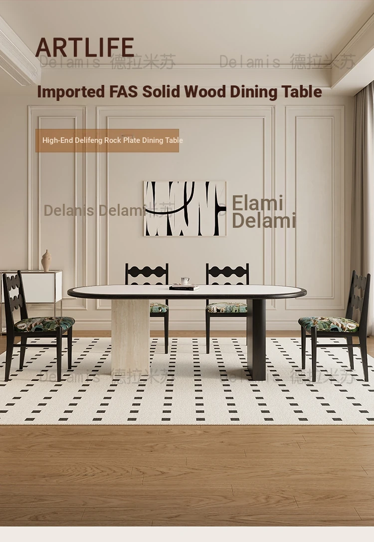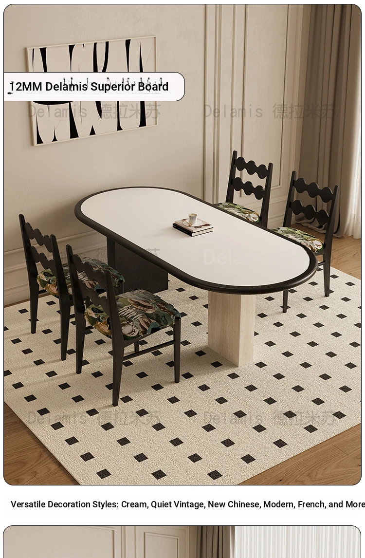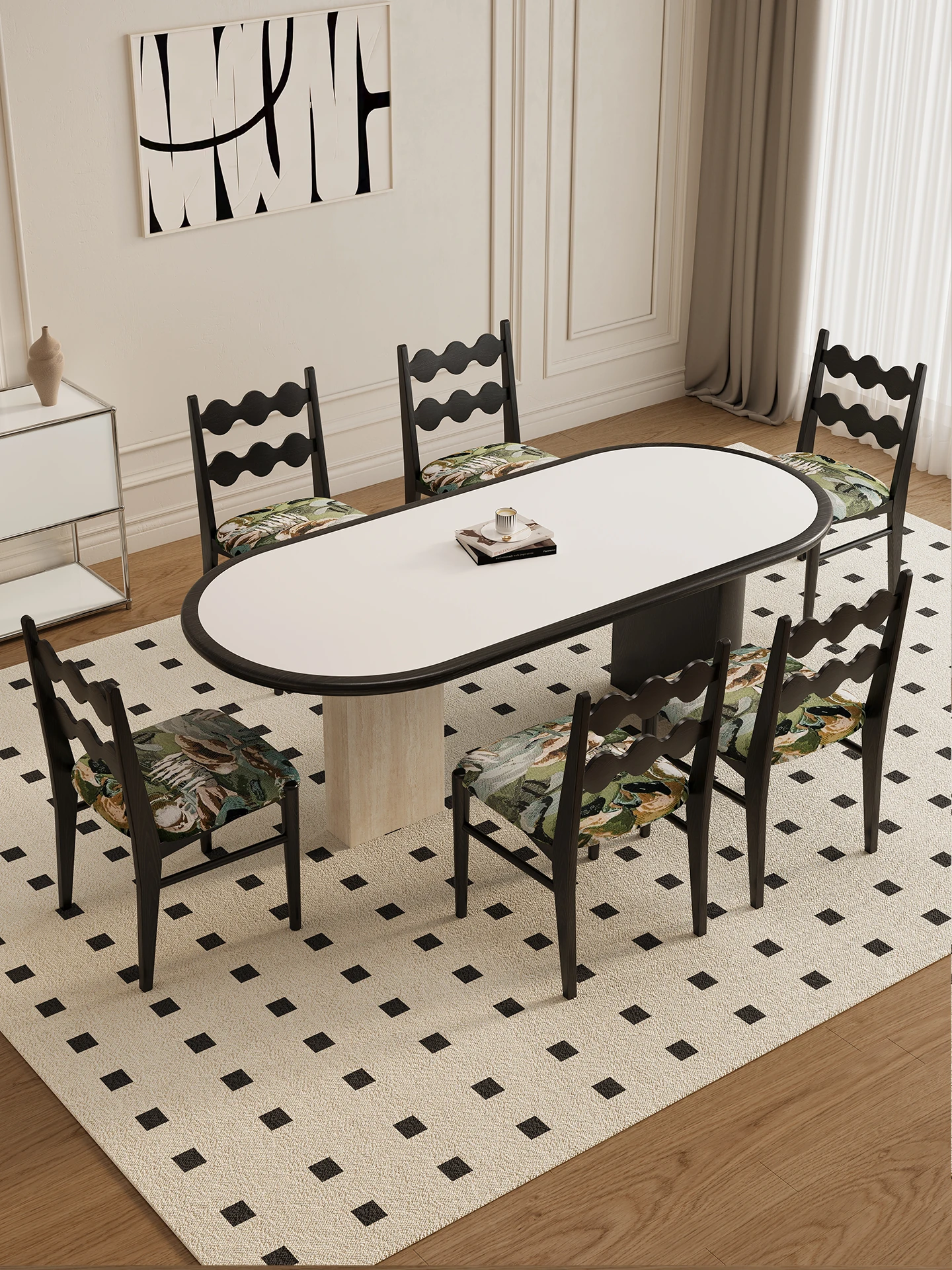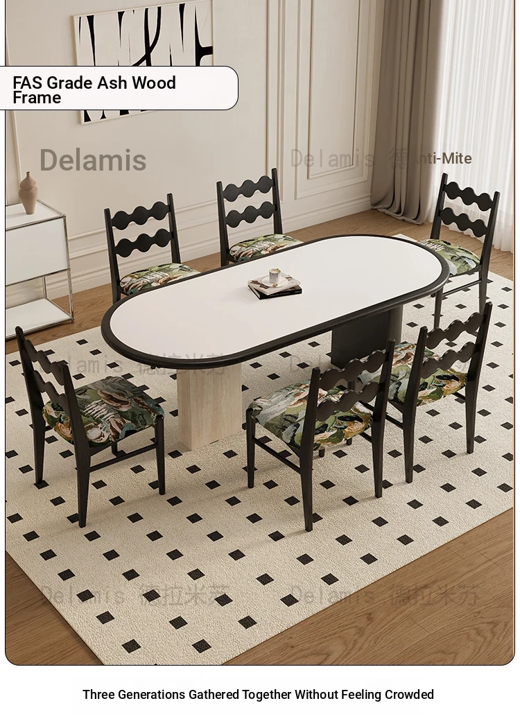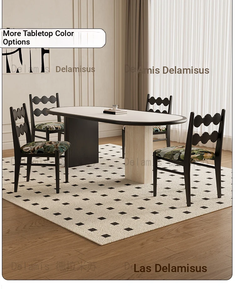 Designer Oval Solid Wood Dining Table - French Cream Vintage Style for Small Spaces, Perfect for Home Dining