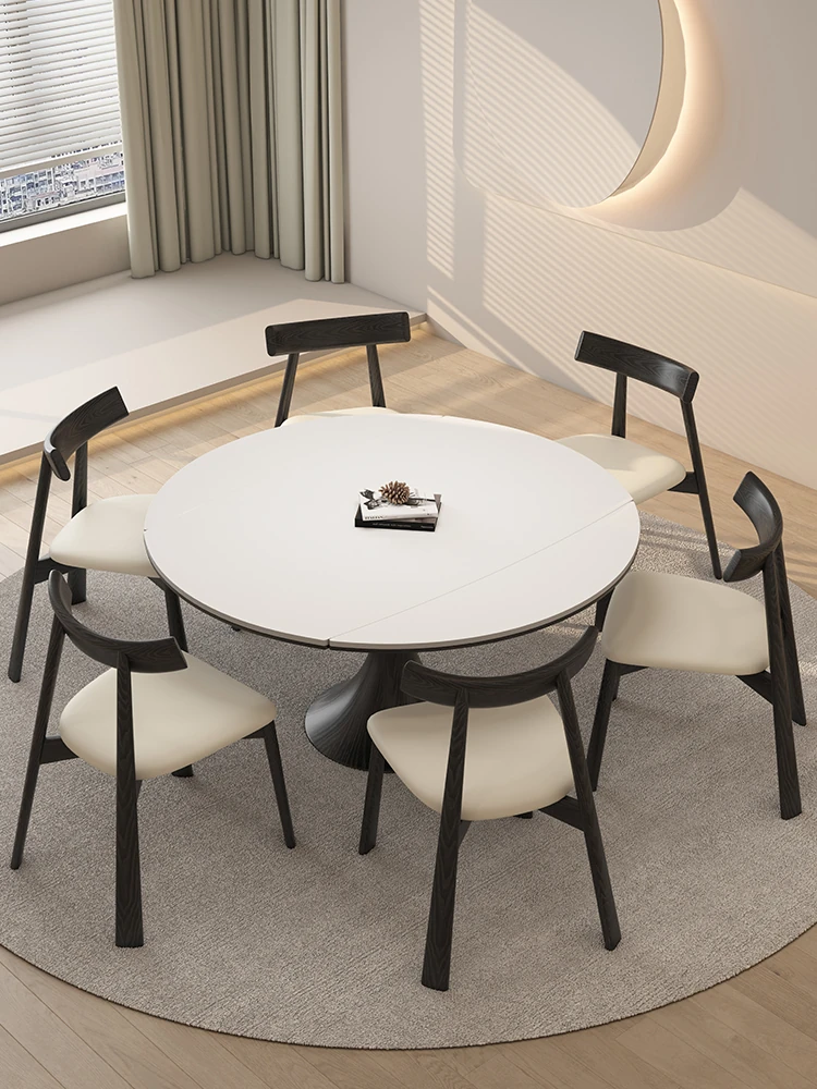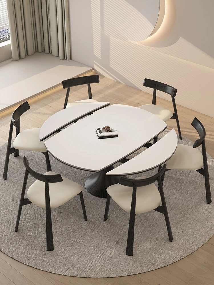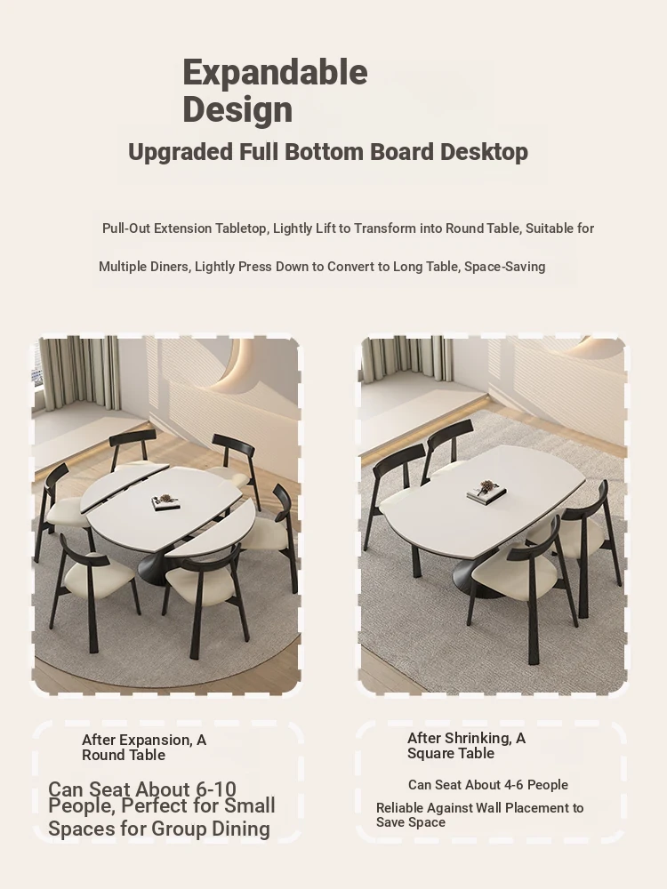 Expandable Solid Wood Dining Table Set - Cream Vintage Style Foldable Square to Round Design for Small Spaces, Perfect for Home Use