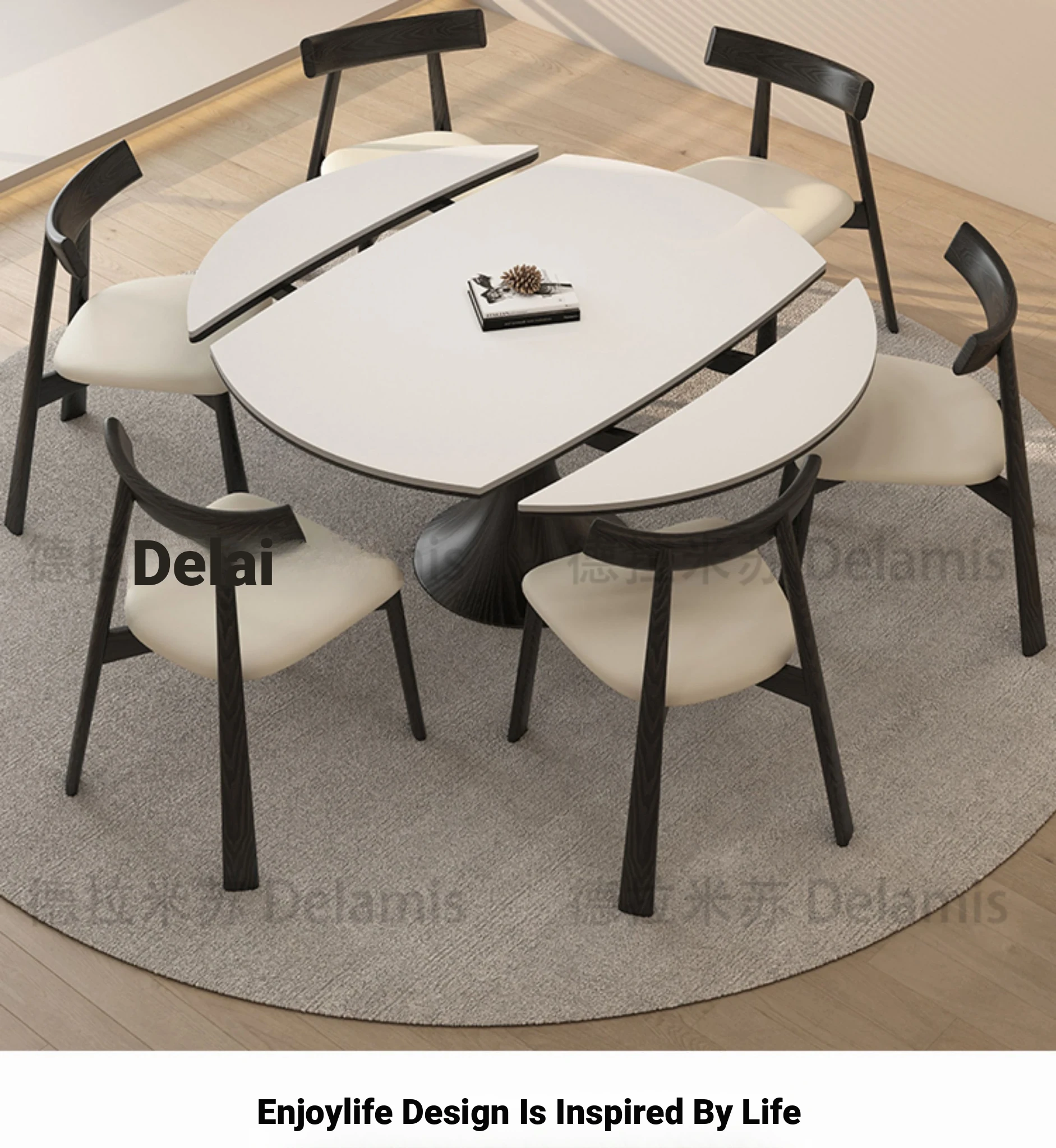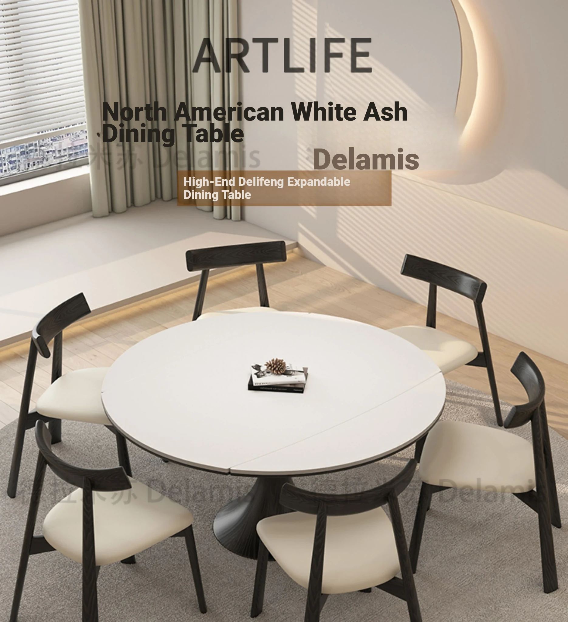 51.18 in solid wood dining table [North American ash] + solid wood dining chair * 6
