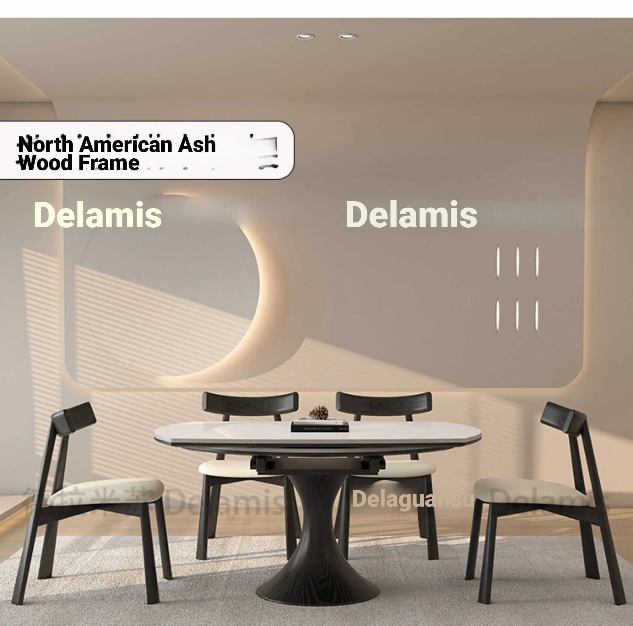 51.18 in solid wood dining table [North American ash] + solid wood dining chair * 4
