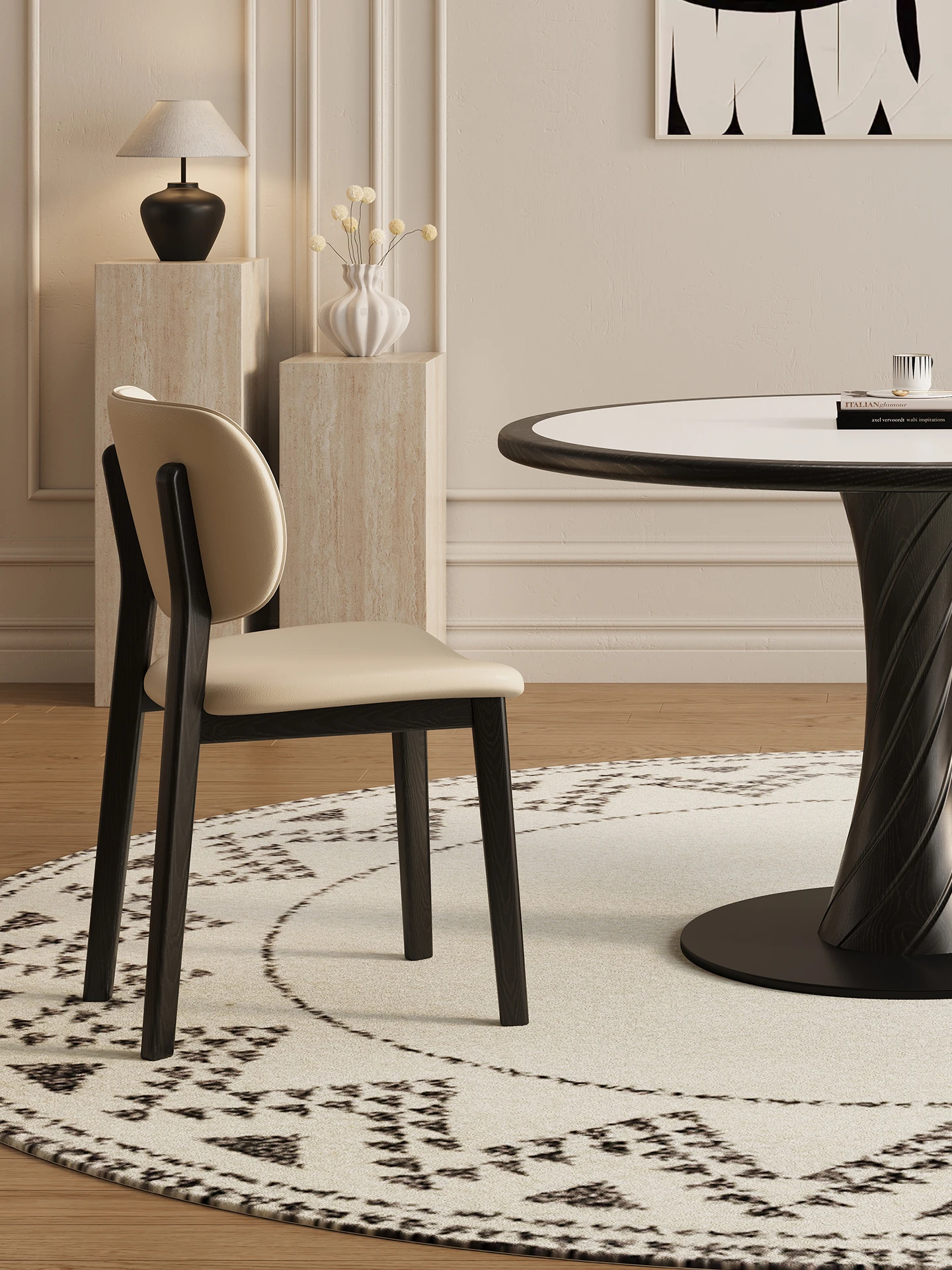 フレンチクリーム風デザインの無垢材ダイニングチェア。洗練されたソフトパッキングと心地よい背もたれで、家庭に軽やかな贅沢感をプラス。リラックスしたひとときを提供する、スタイリッシュなデザイナーズチェアです。