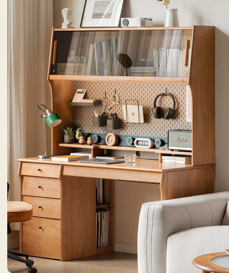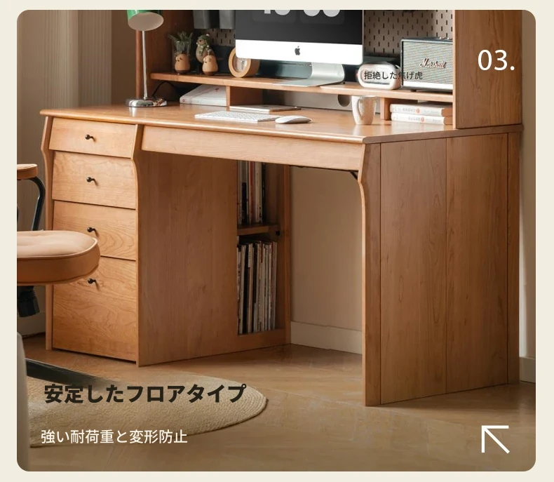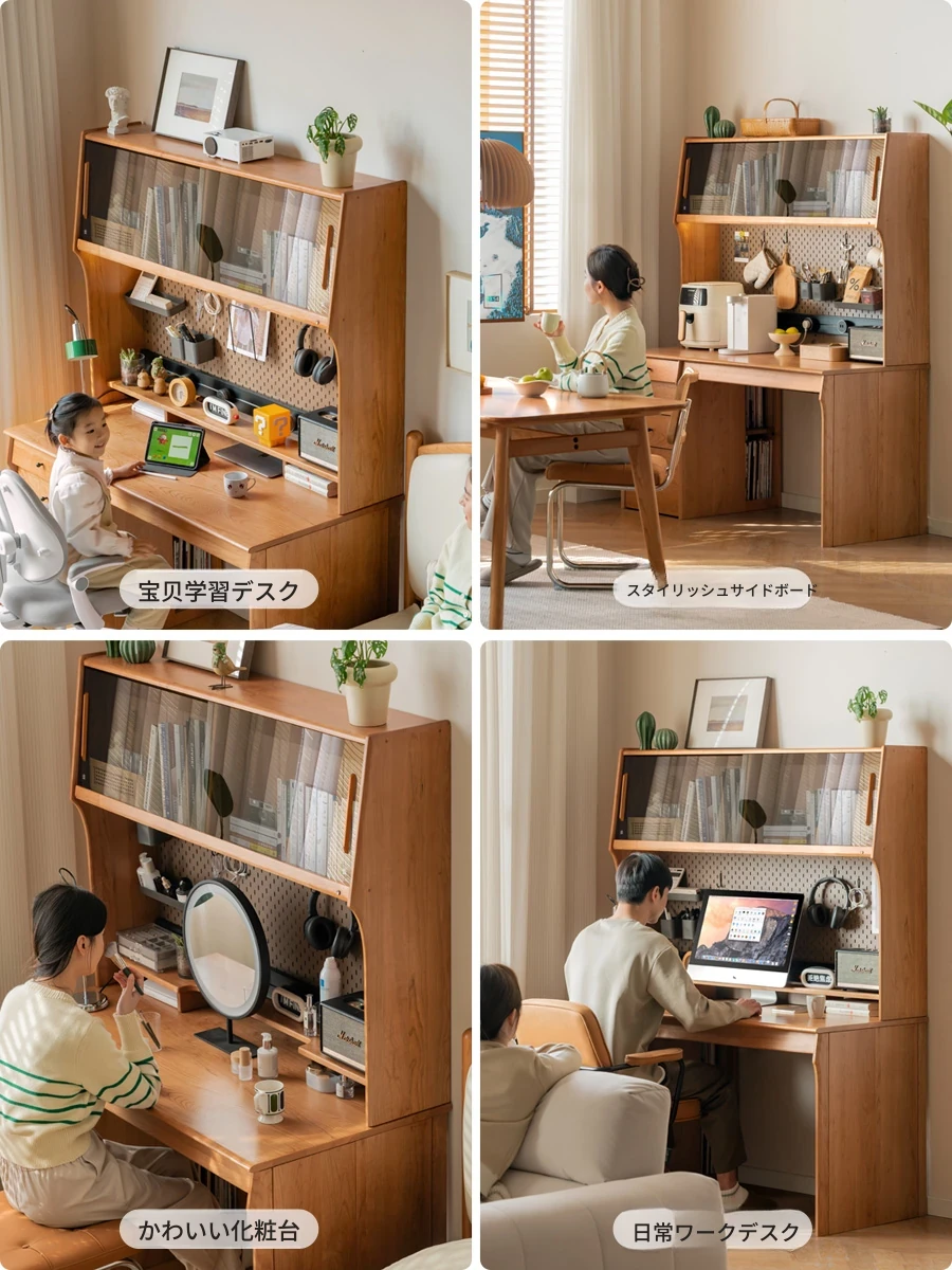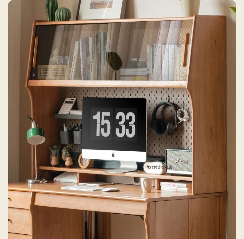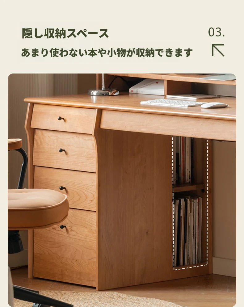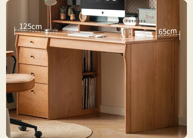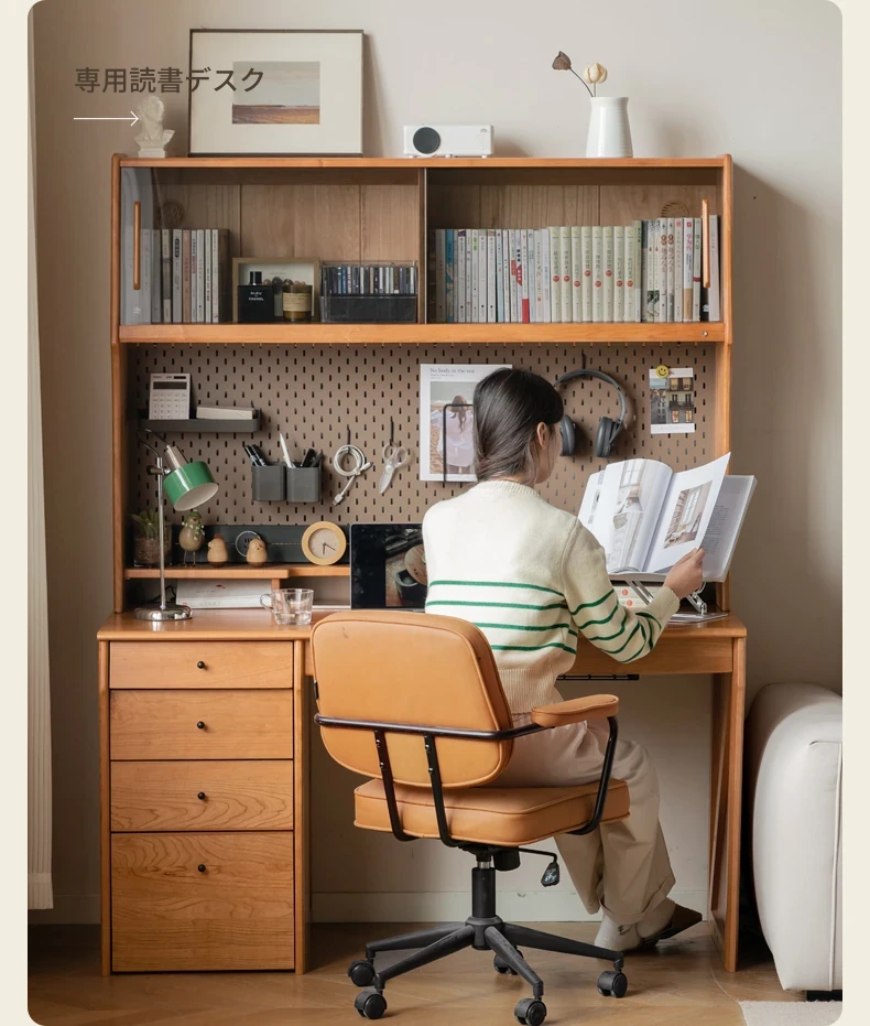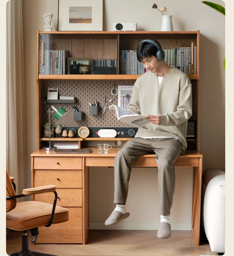 源氏木語 中古チェリー材の一体型多機能デスク 書棚付きの実木デスク - スタイリッシュな書斎にぴったり!快適な作業空間を実現します。