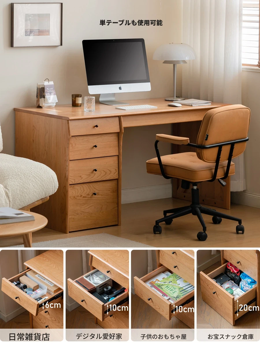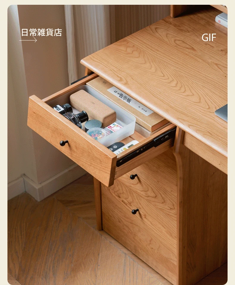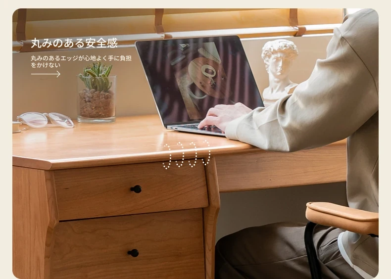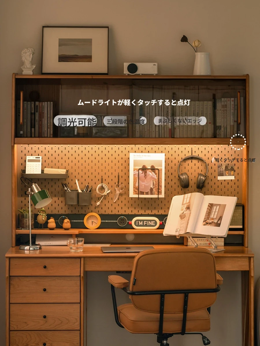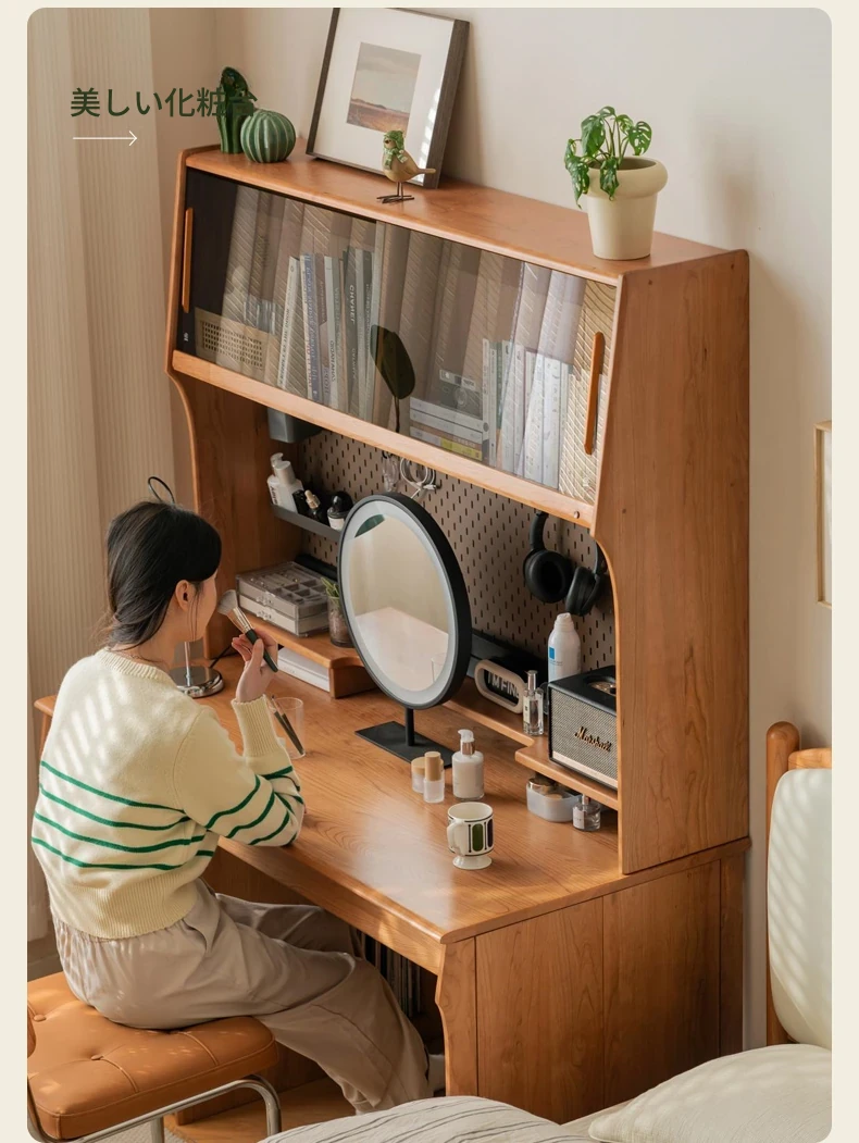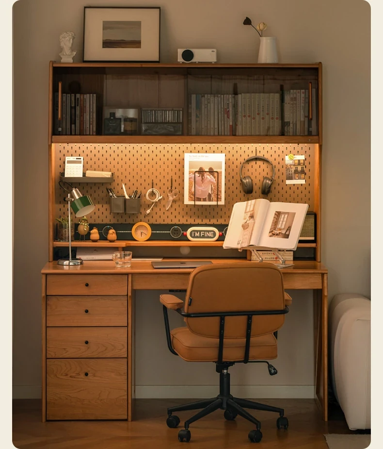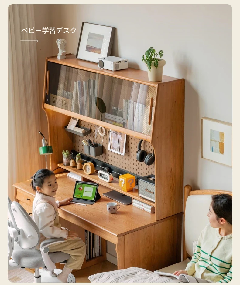 源氏木語 中古チェリー材の一体型多機能デスク 書棚付きの実木デスク - スタイリッシュな書斎にぴったり!快適な作業空間を実現します。