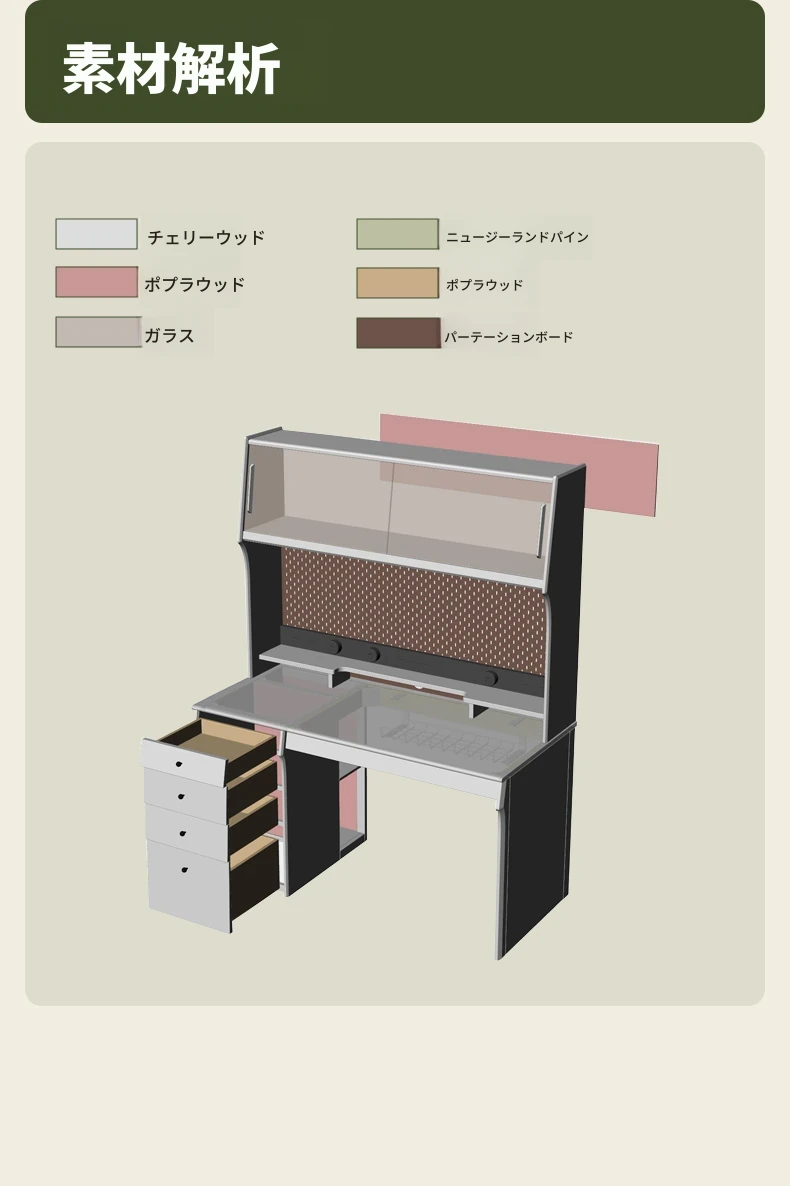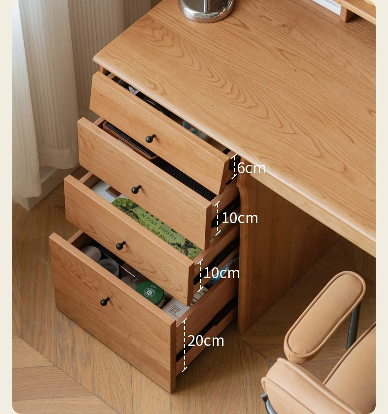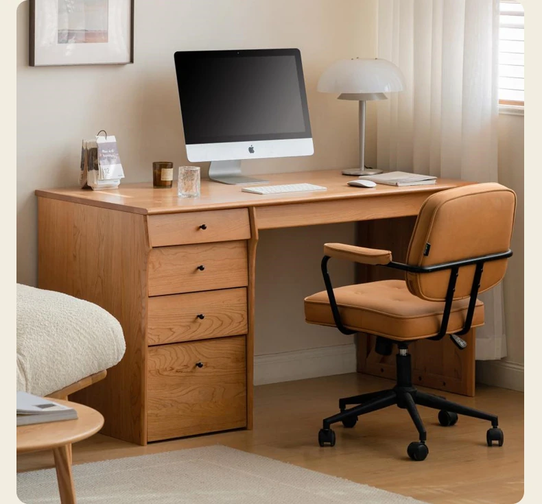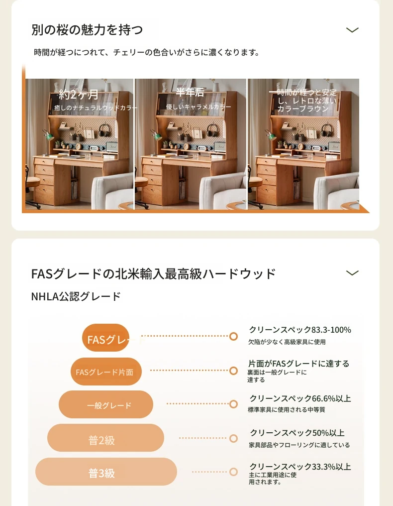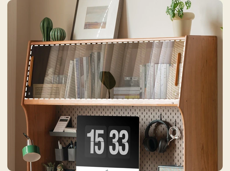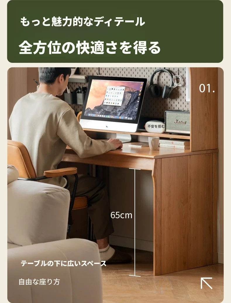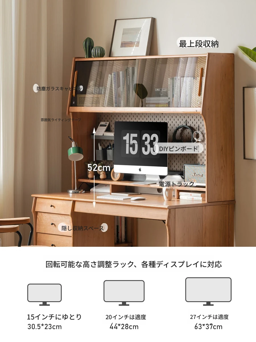 源氏木語 中古チェリー材の一体型多機能デスク 書棚付きの実木デスク - スタイリッシュな書斎にぴったり!快適な作業空間を実現します。