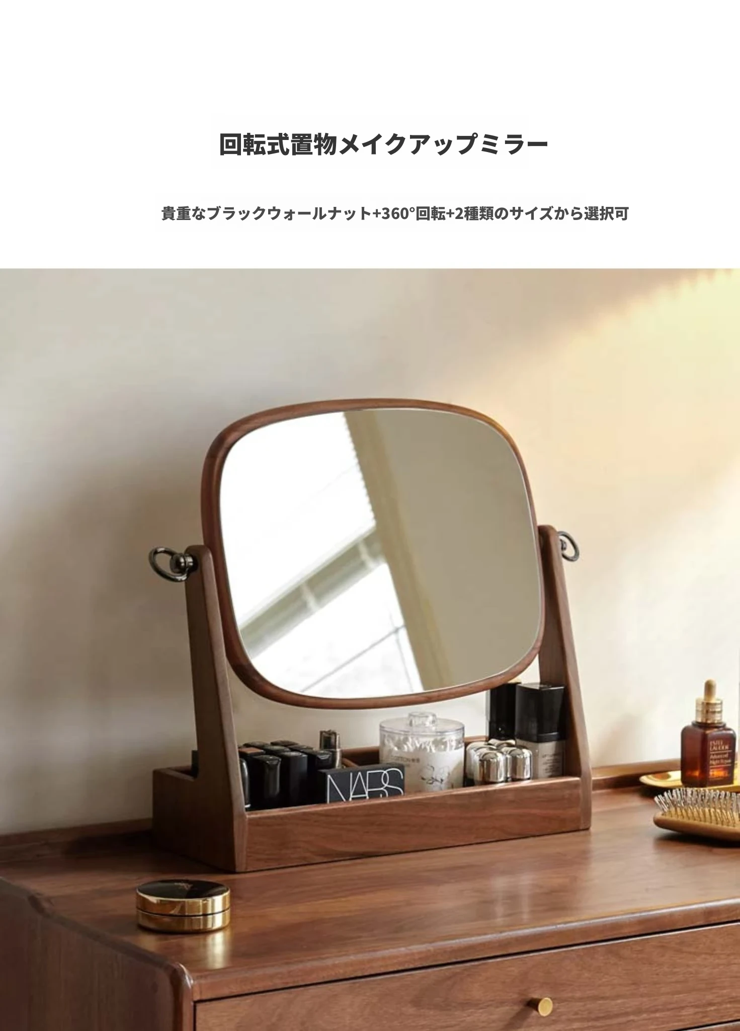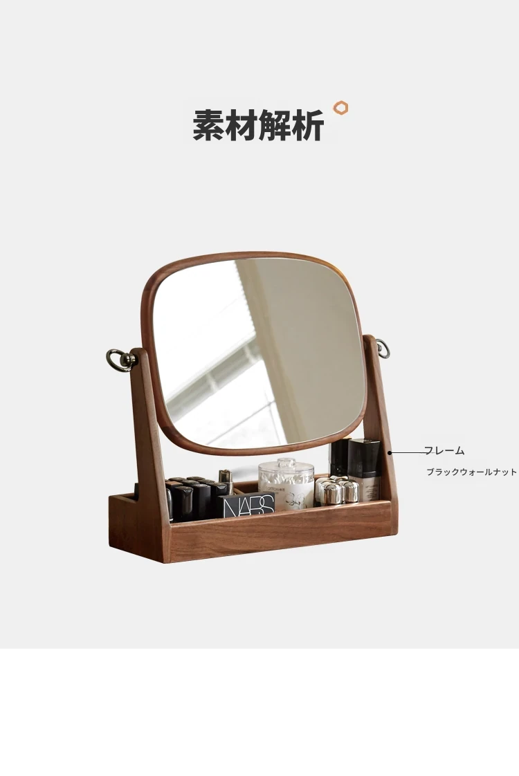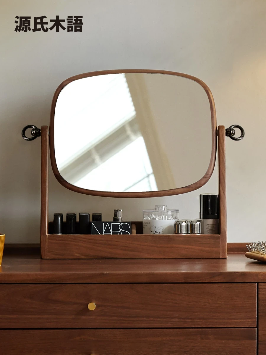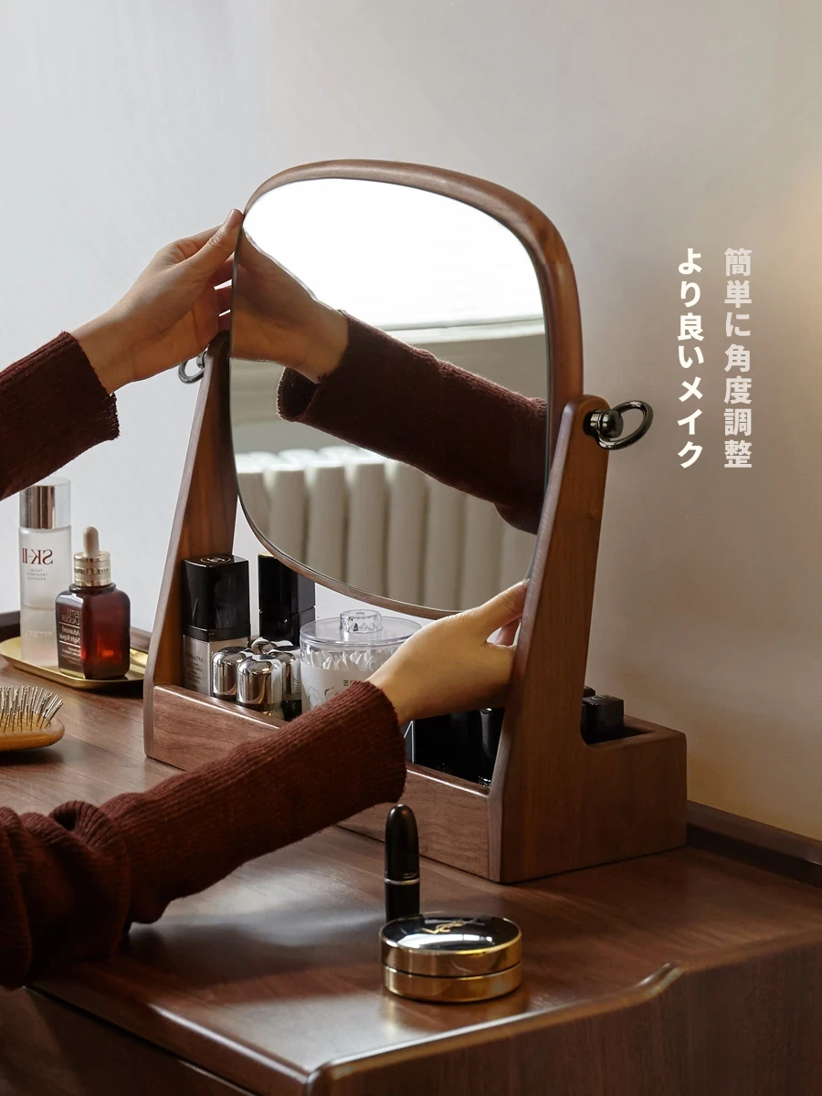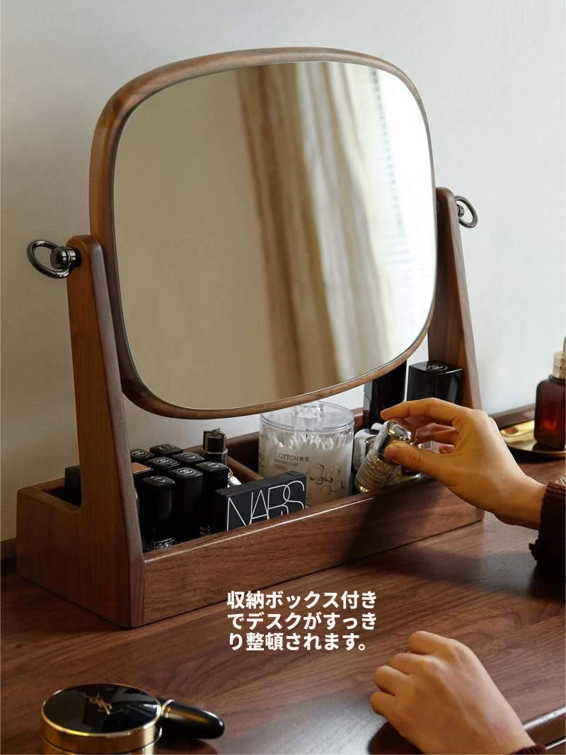 源氏木语実木化粧鏡収納ボックス一体型 ブラックウォールナット製 寝室用ドレッサーミラー 360度回転機能付き!美しく整ったメイクアップをサポートします。