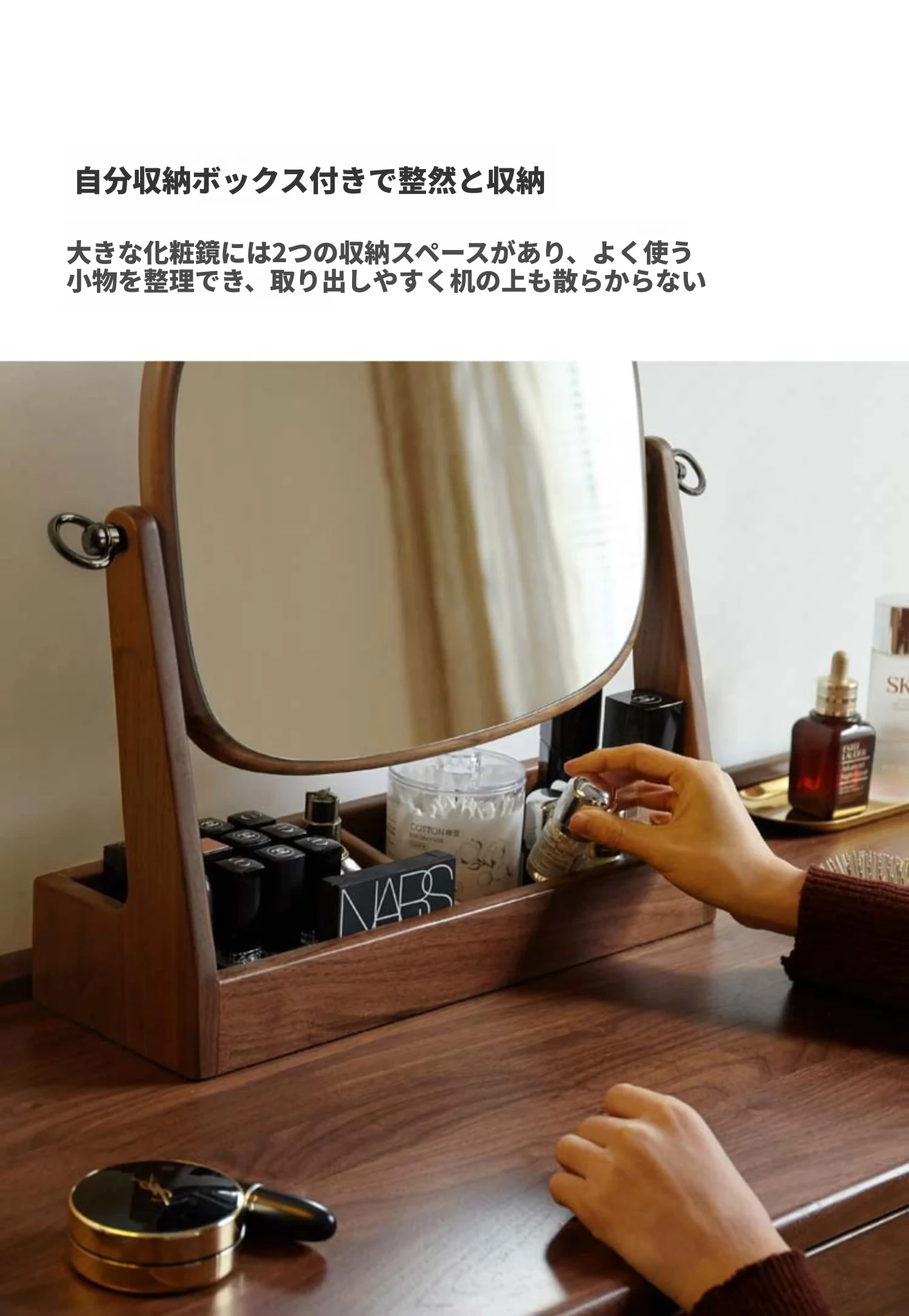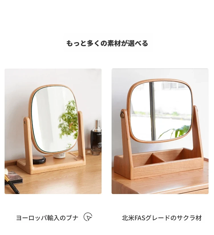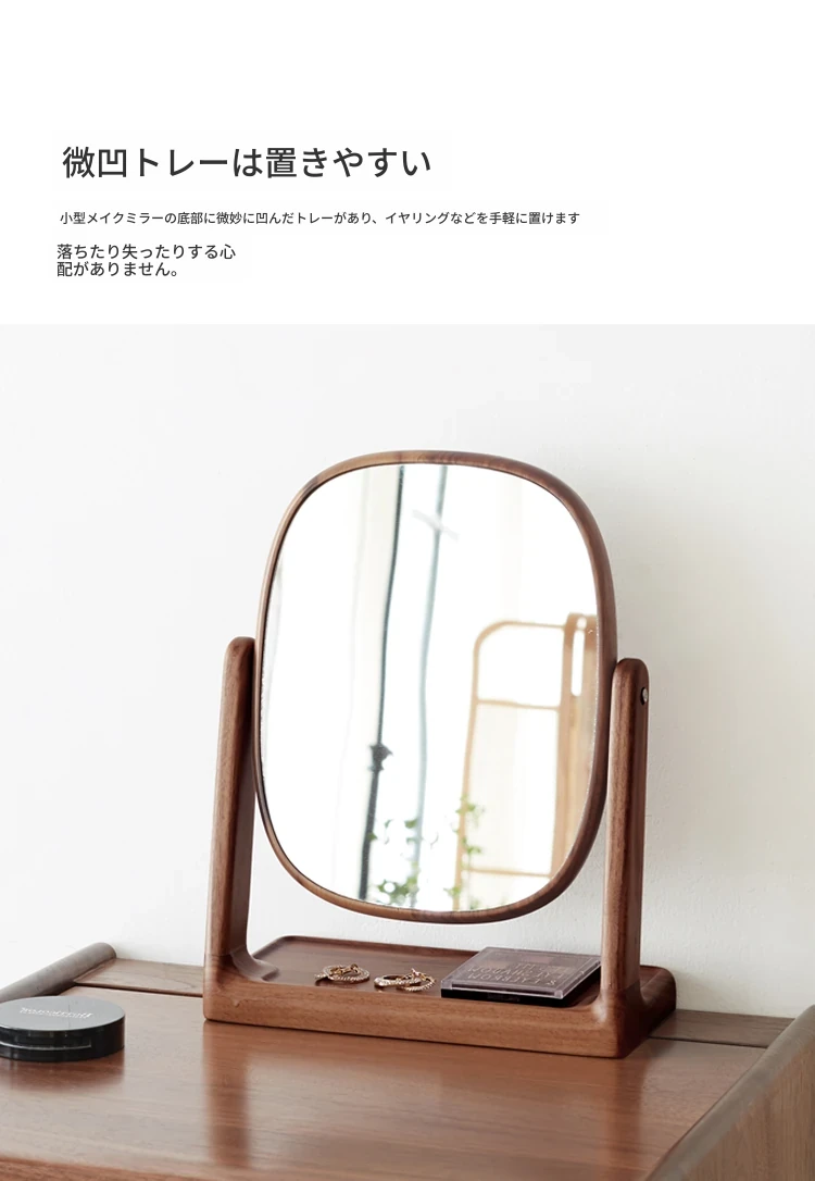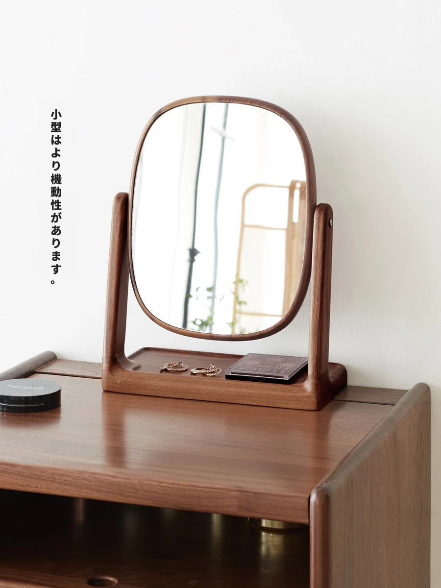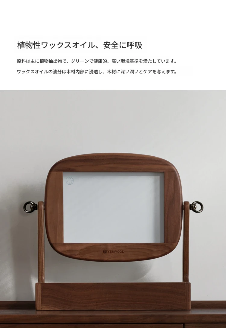 源氏木语実木化粧鏡収納ボックス一体型 ブラックウォールナット製 寝室用ドレッサーミラー 360度回転機能付き!美しく整ったメイクアップをサポートします。