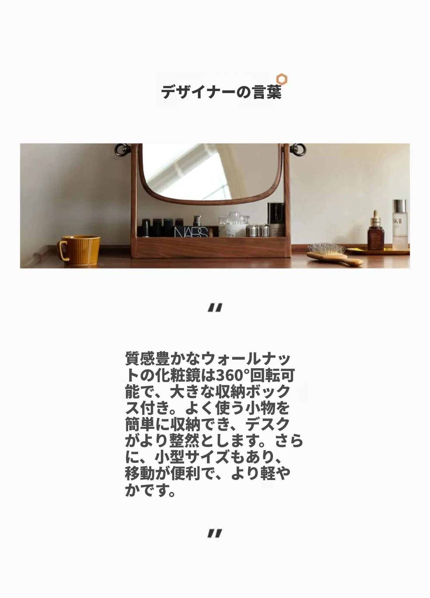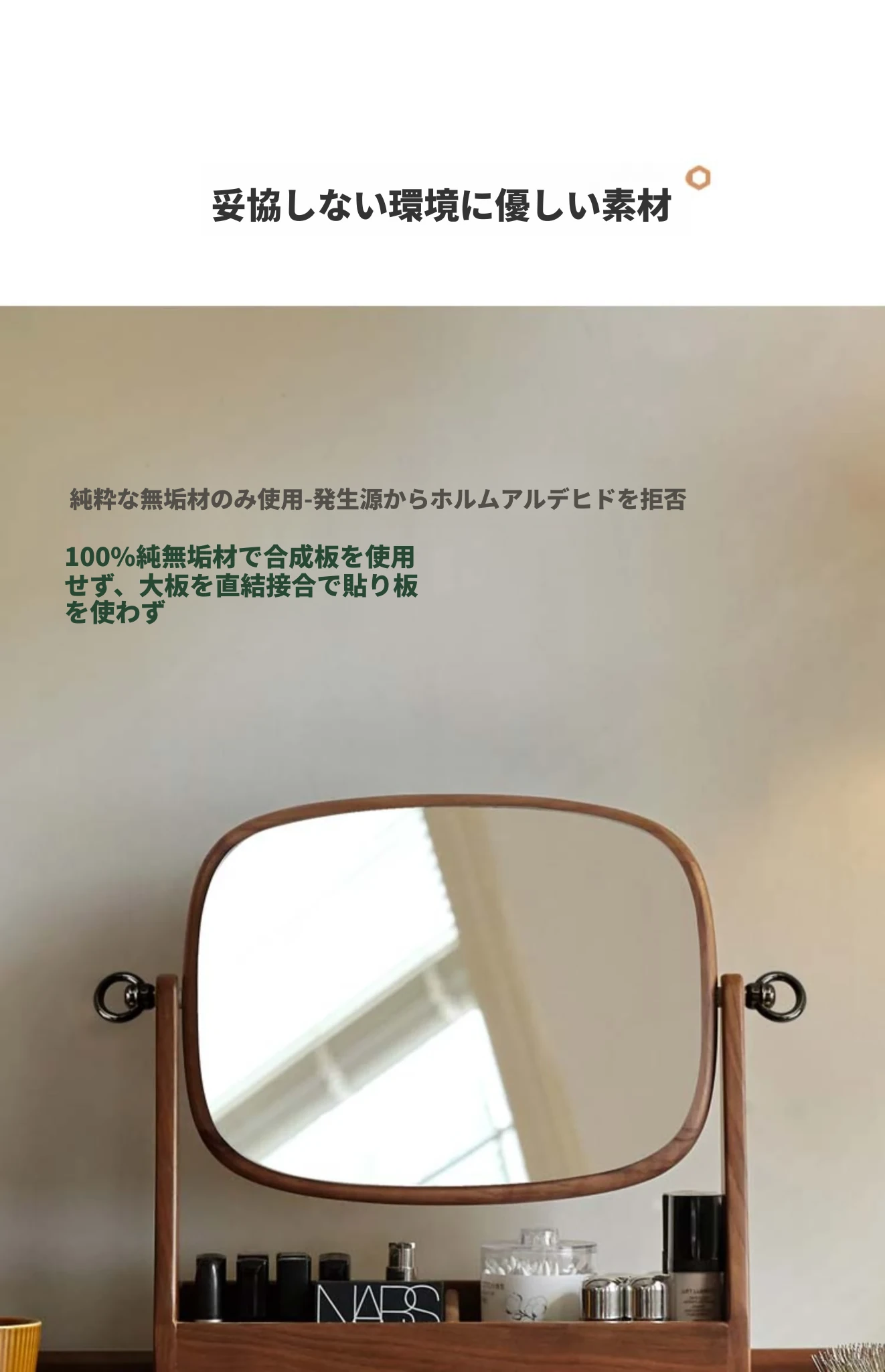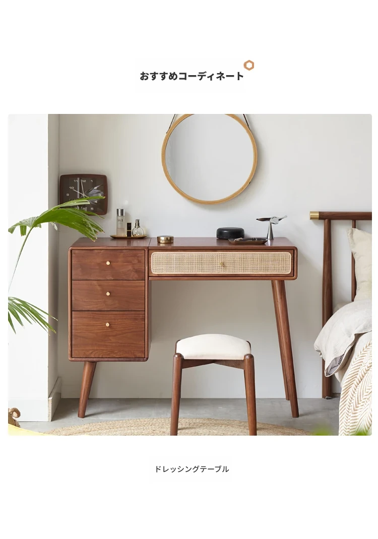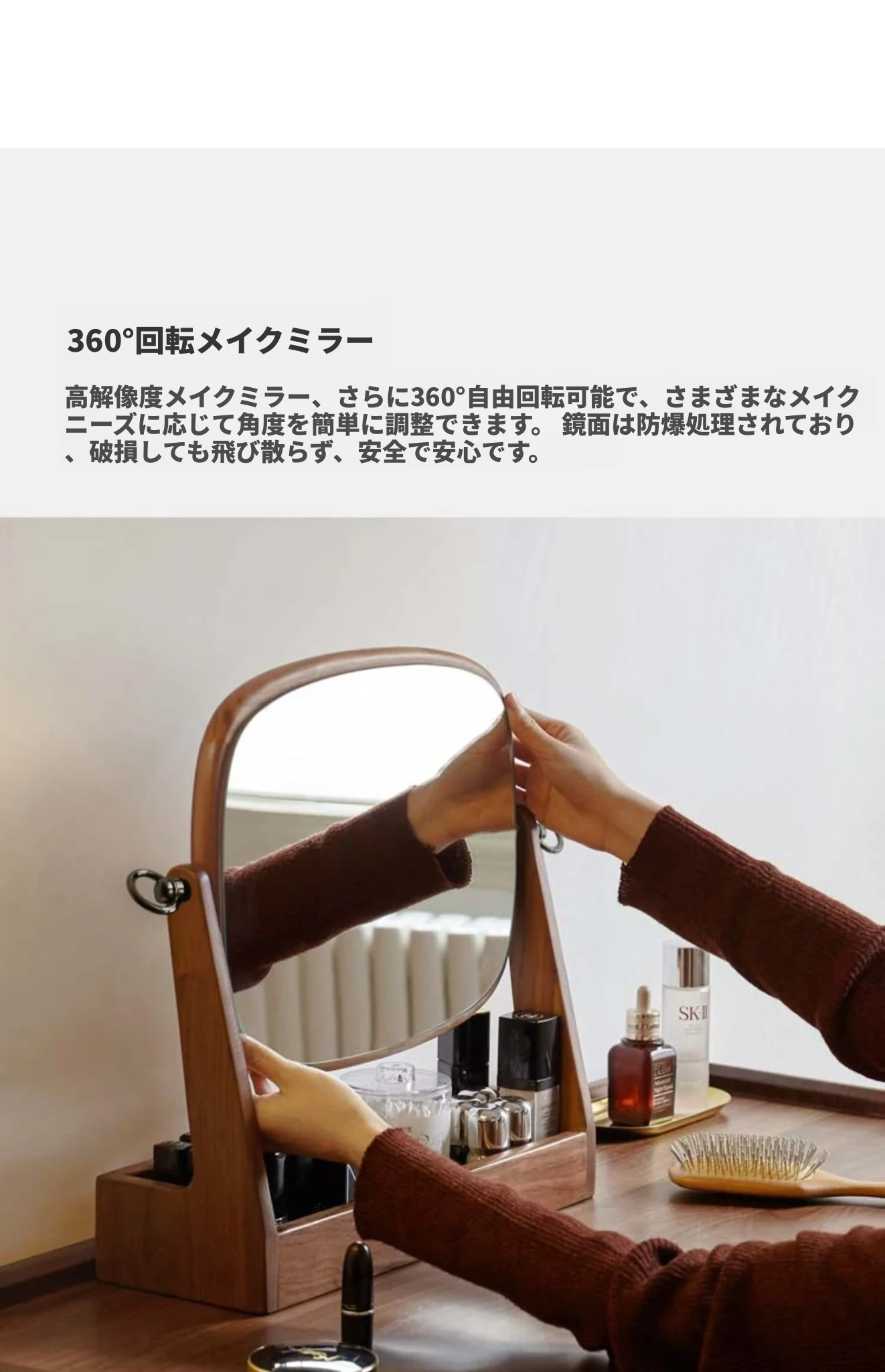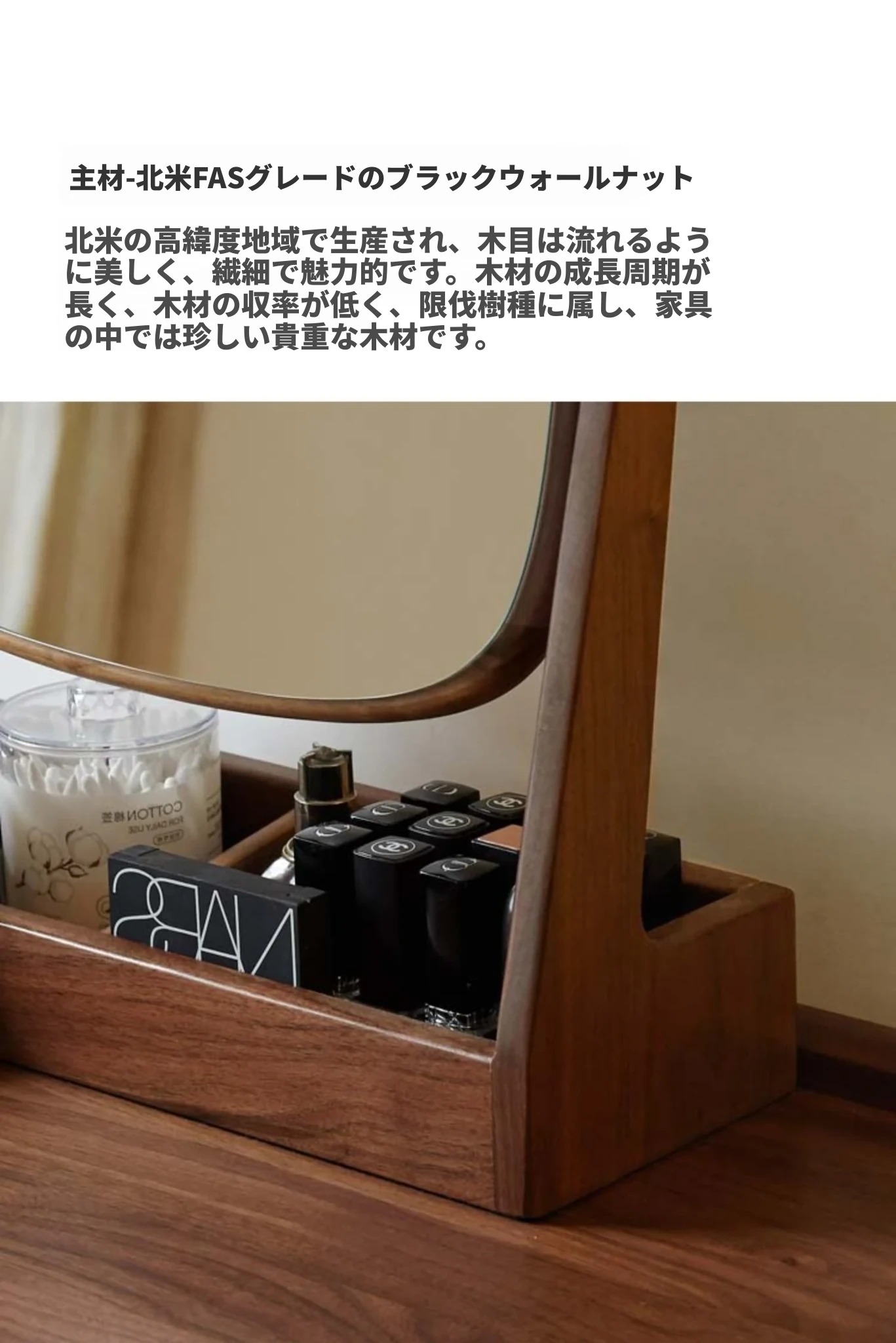 源氏木语実木化粧鏡収納ボックス一体型 ブラックウォールナット製 寝室用ドレッサーミラー 360度回転機能付き!美しく整ったメイクアップをサポートします。