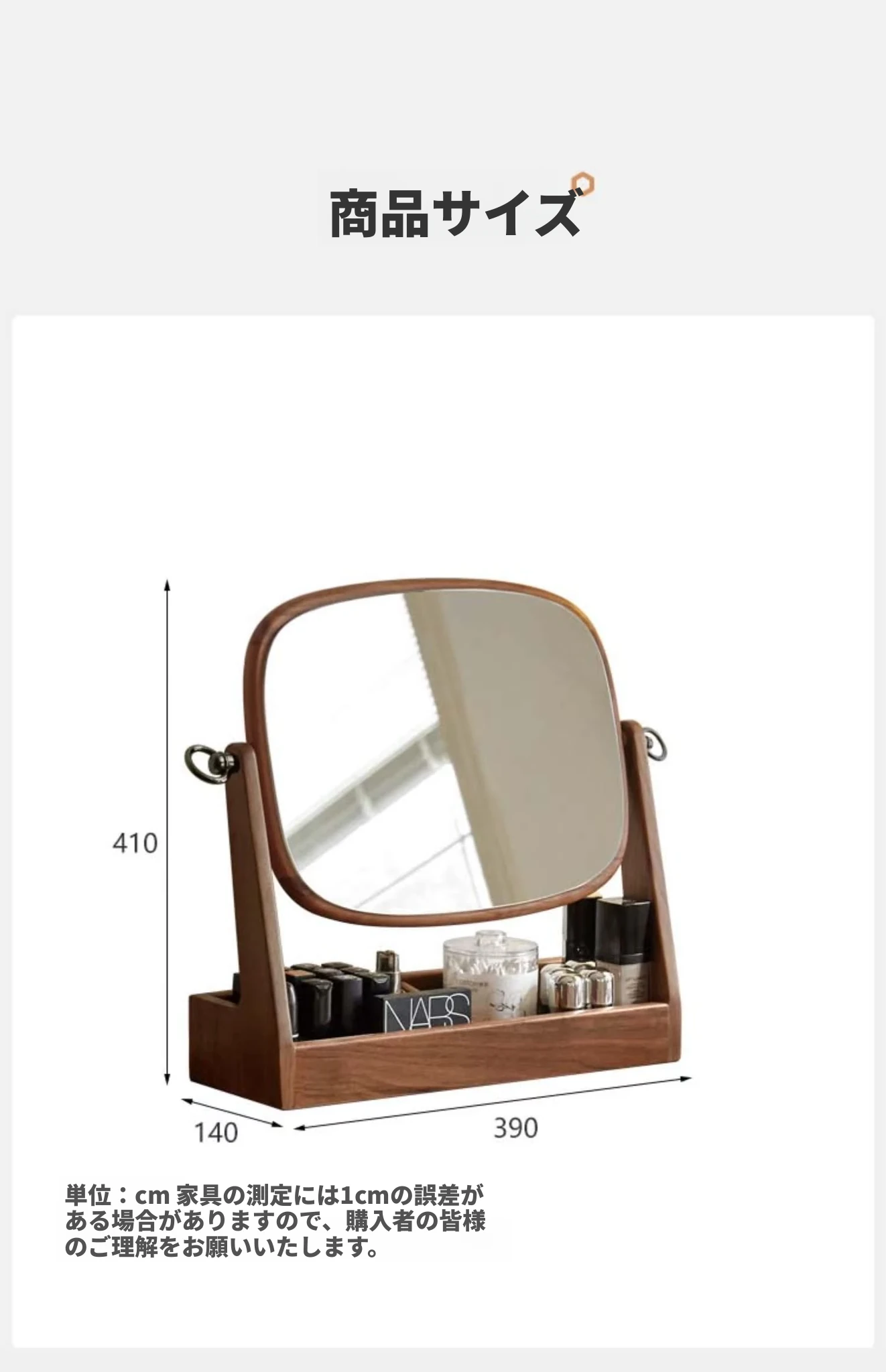 (ブラックウォールナット)回転式収納化粧鏡(収納ボックス型)(390*140*410mm)K00D62