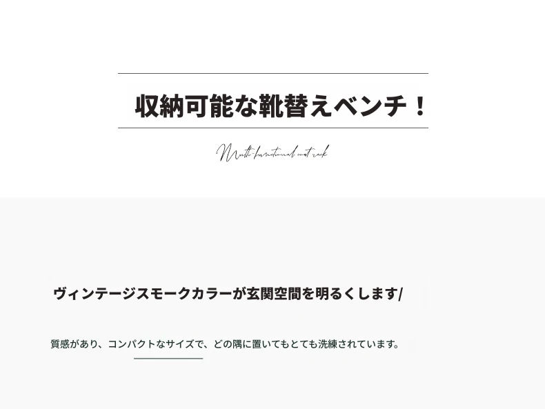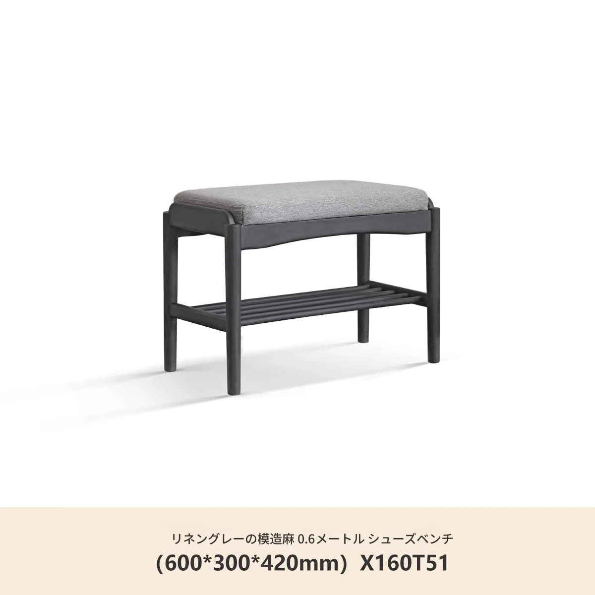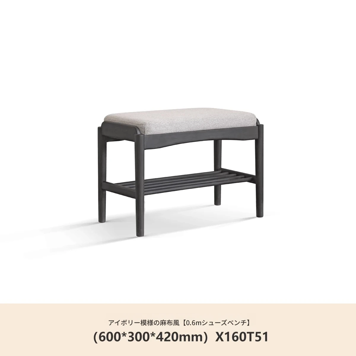 (ラバーウッドスモークカラー)0.6メートルシューズベンチ(コットンリネン風クリームホワイト)(600*300*420mm)