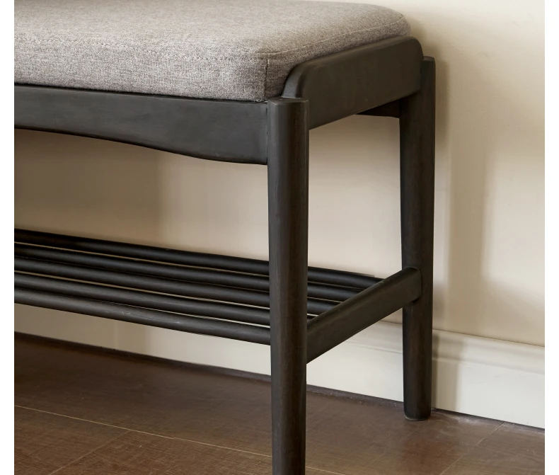 (ラバーウッドスモークカラー)0.8メートルシューズベンチ(コットンリネン風リネーグレー)(800*300*420mm)