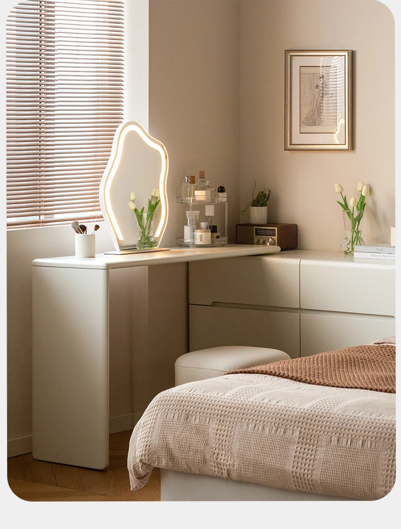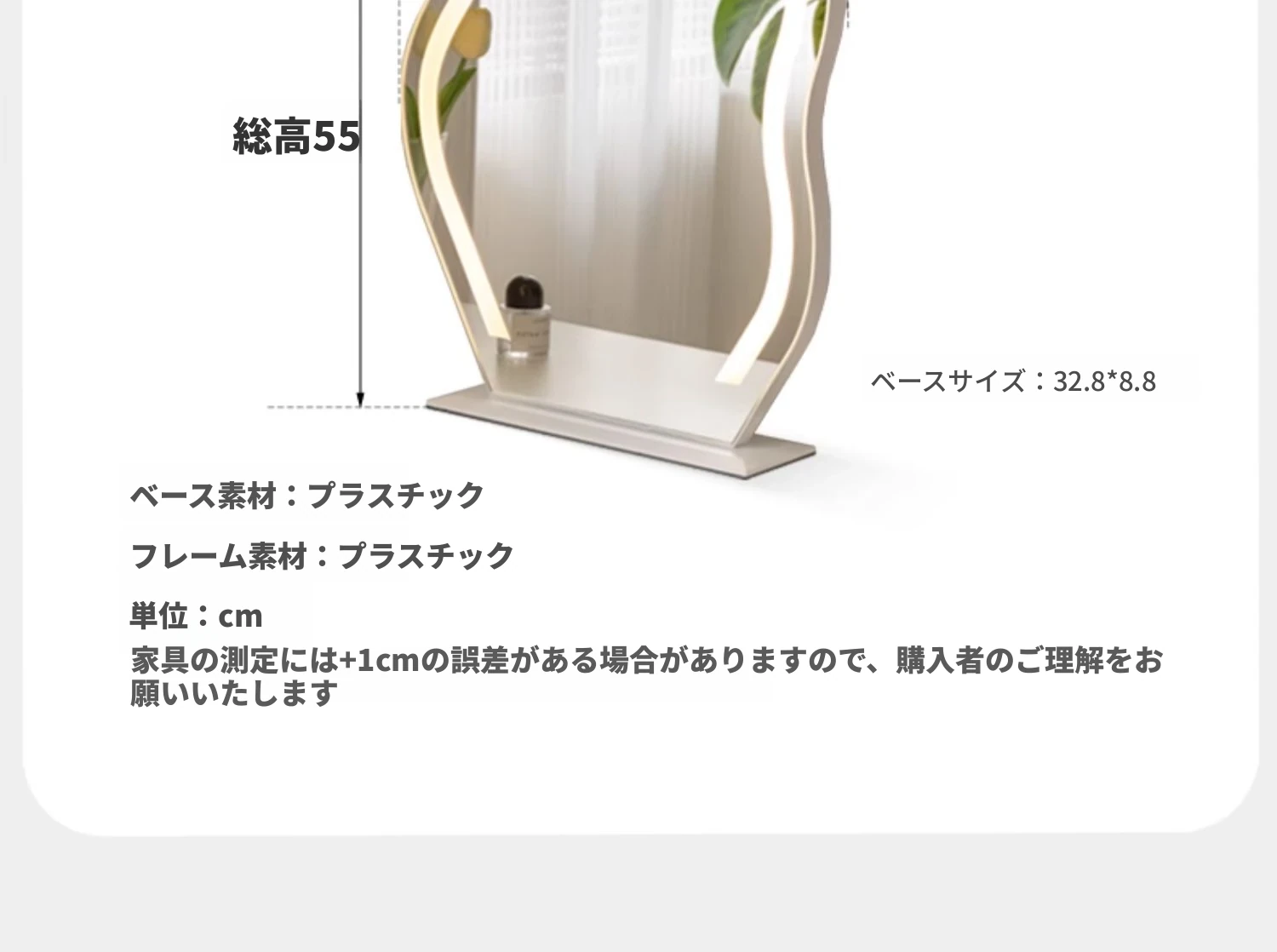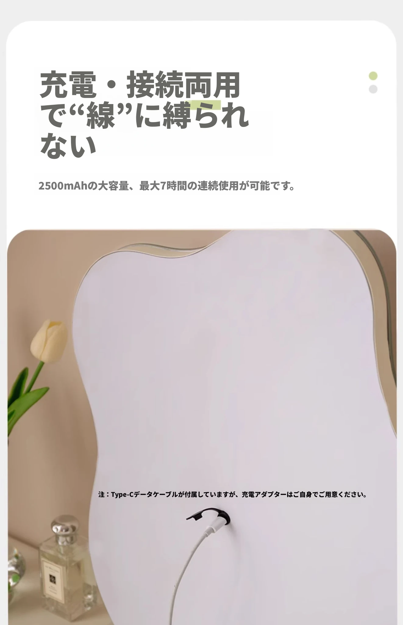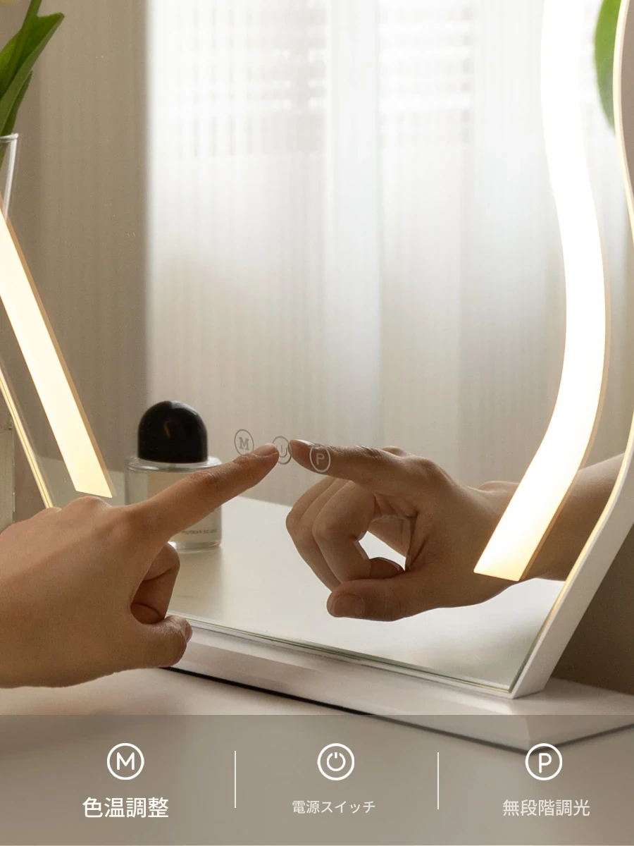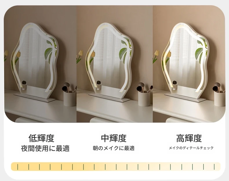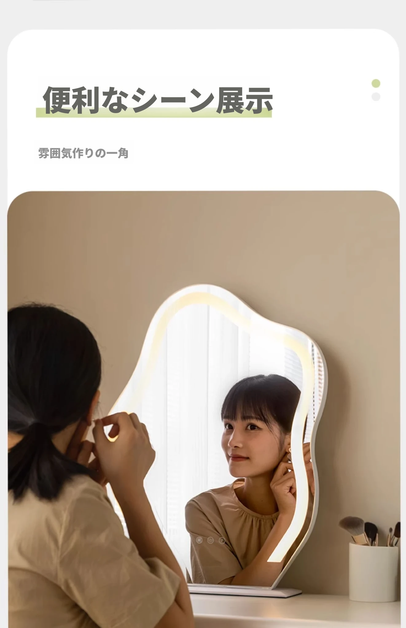 源氏木语の軽奢雲朵化粧鏡 - おしゃれな寝室にぴったり!クリーミーな風合いのシンプルデザイン、LED補光機能付きでメイクがもっと楽しくなる!防爆設計も安心。あなたのビューティータイムを彩ります。