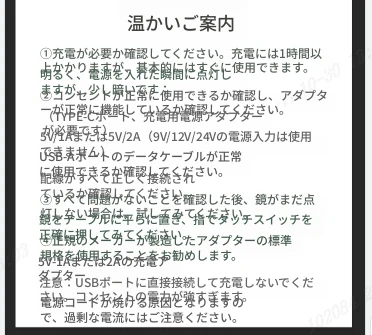 注意:USBポートに直接充電しないでください。コンセントの電源が大きすぎると電源コードが焼ける恐れがあります。