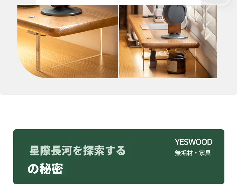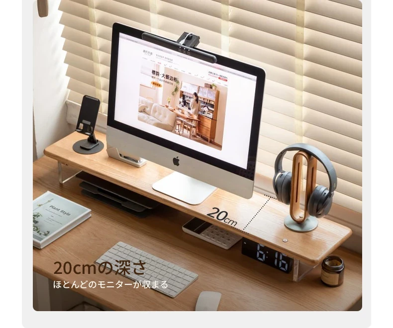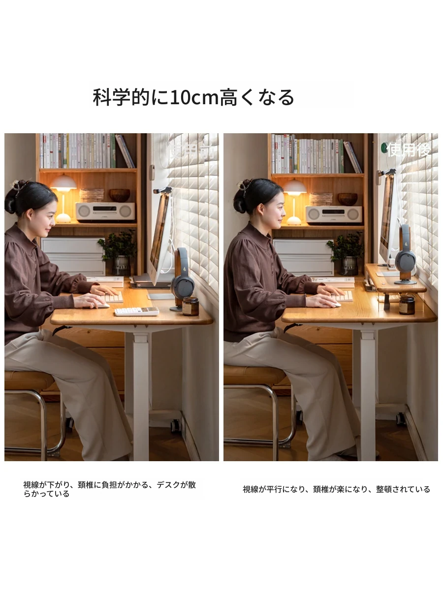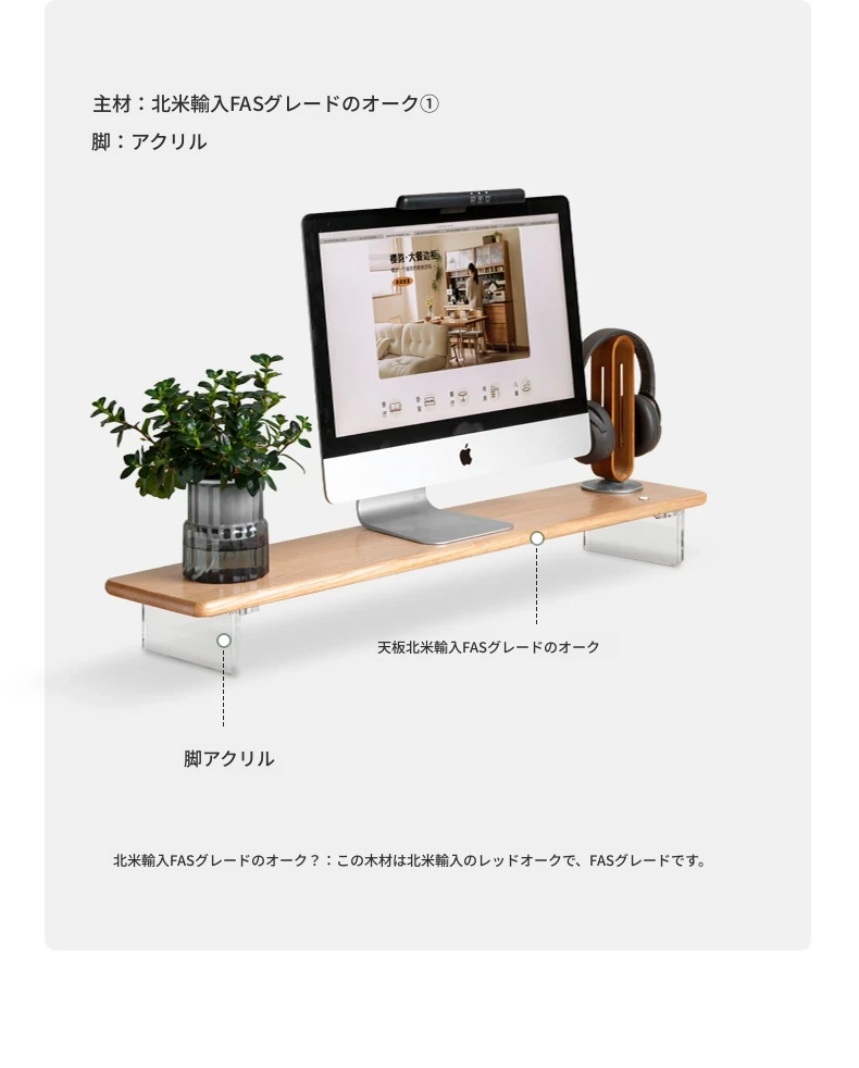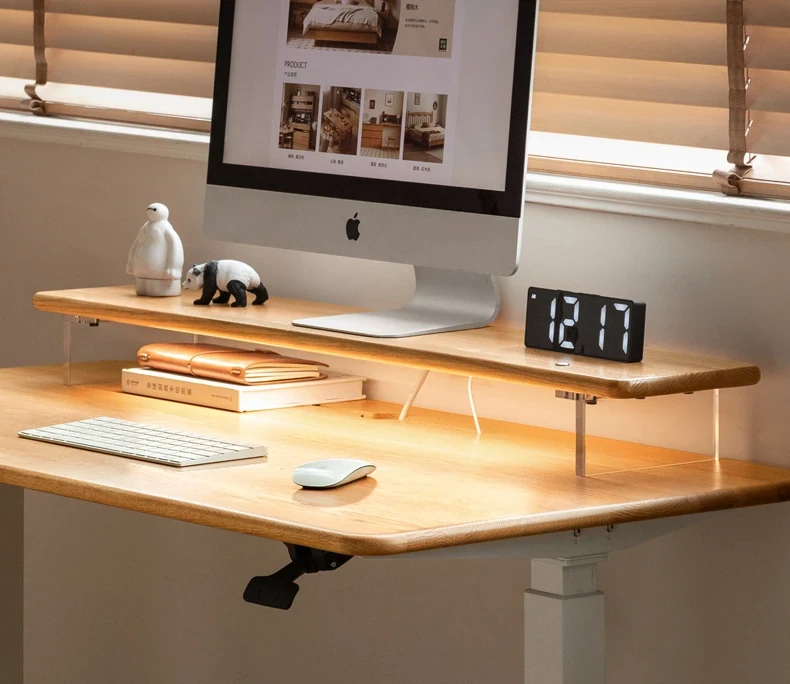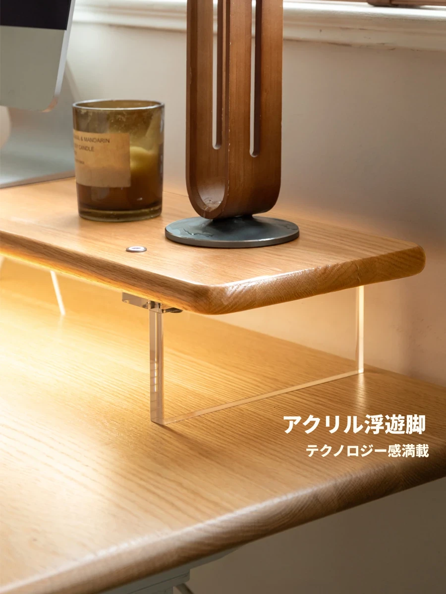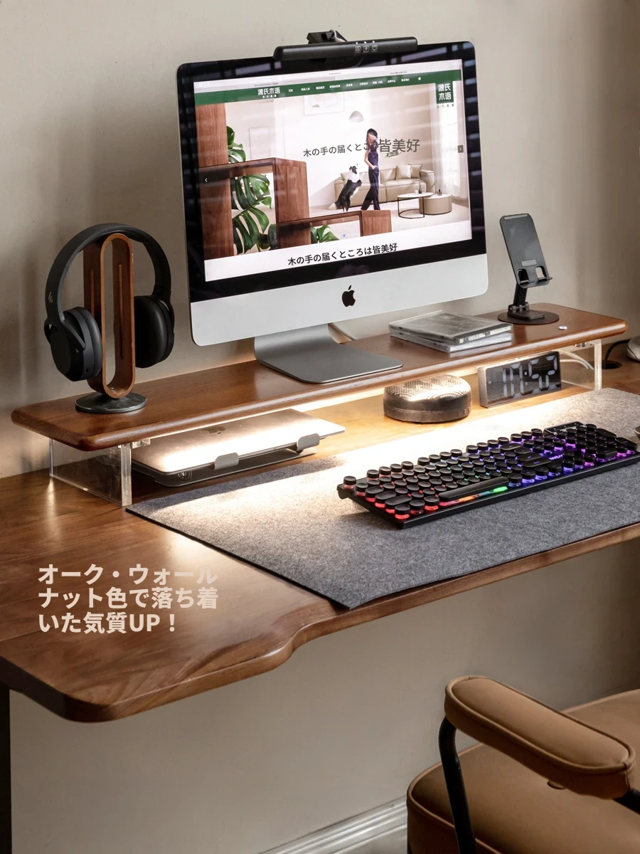 源氏木语 シンプルな無垢材デスクトップコンピューター高さ調整スタンド オーク製オフィスモニター支架 吊り下げ収納棚で快適な作業環境を実現!