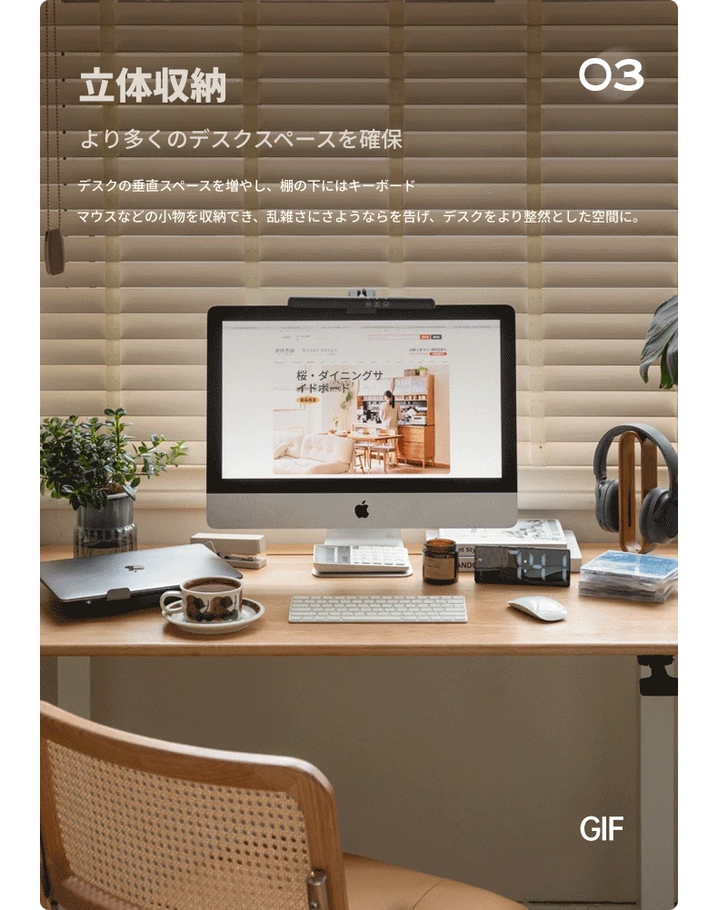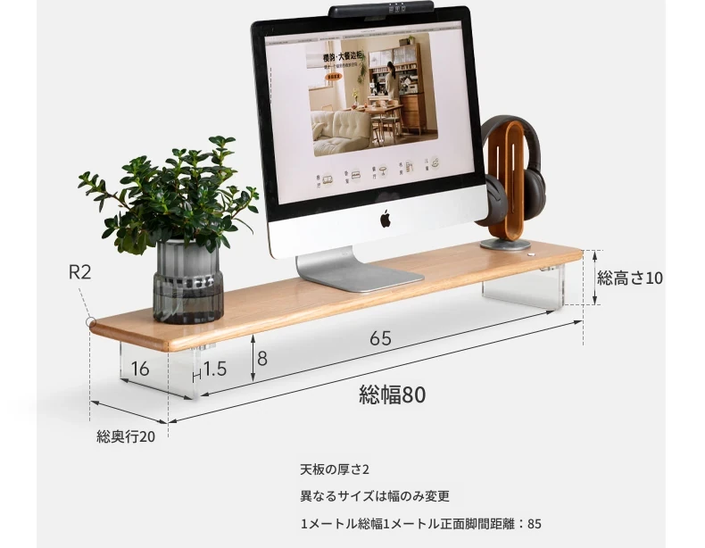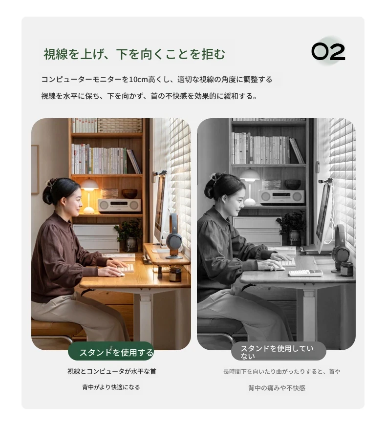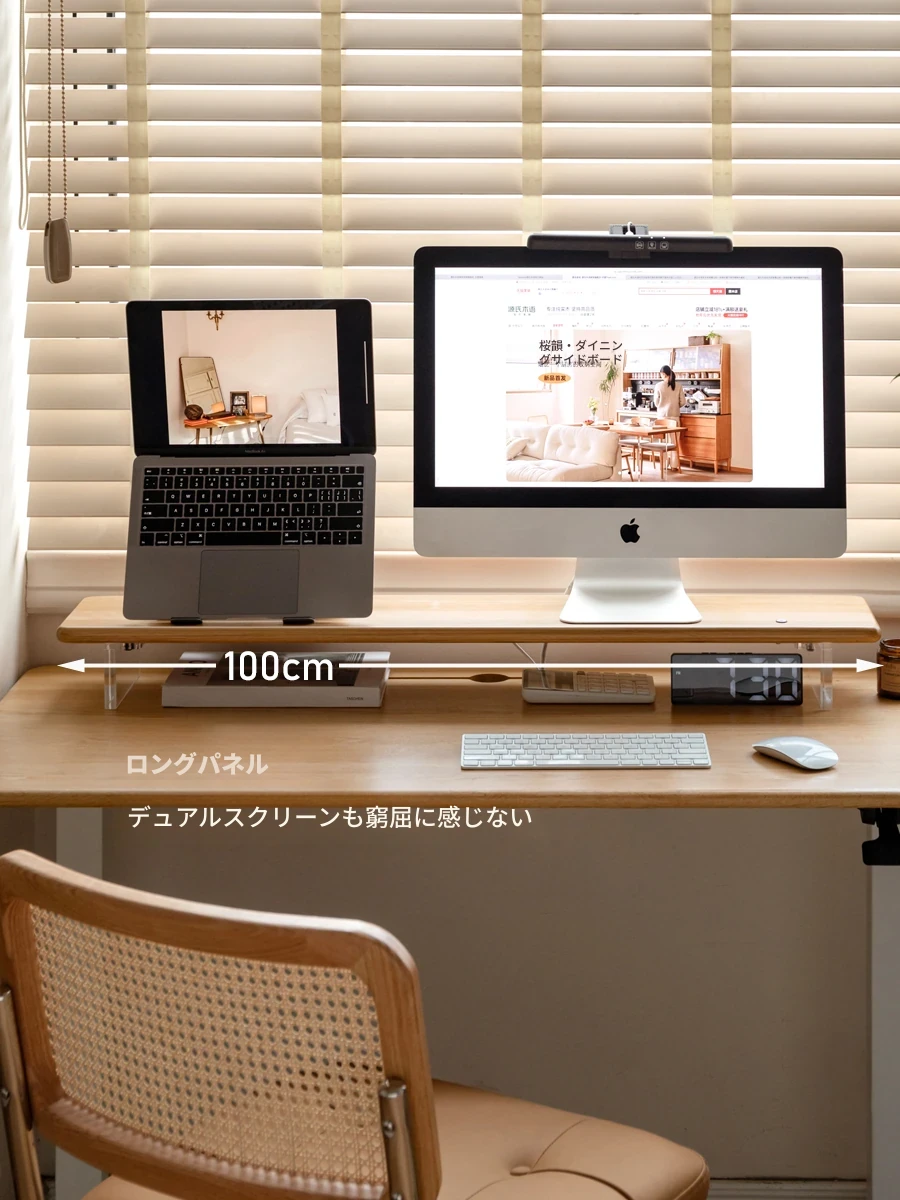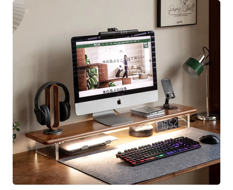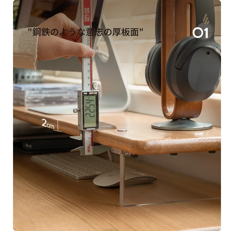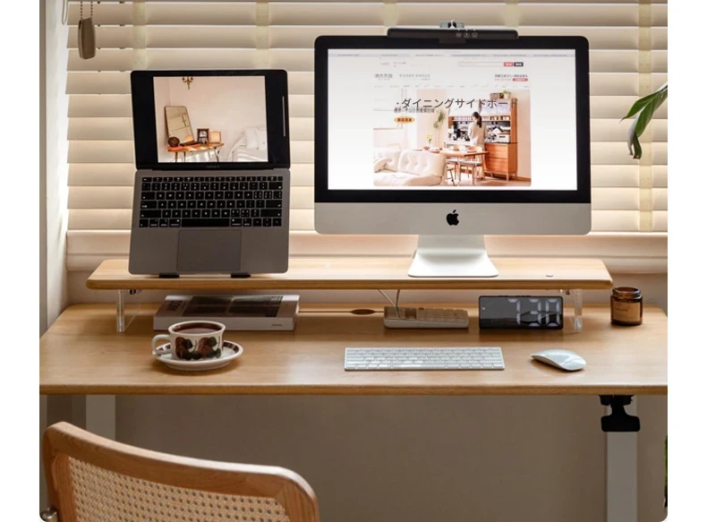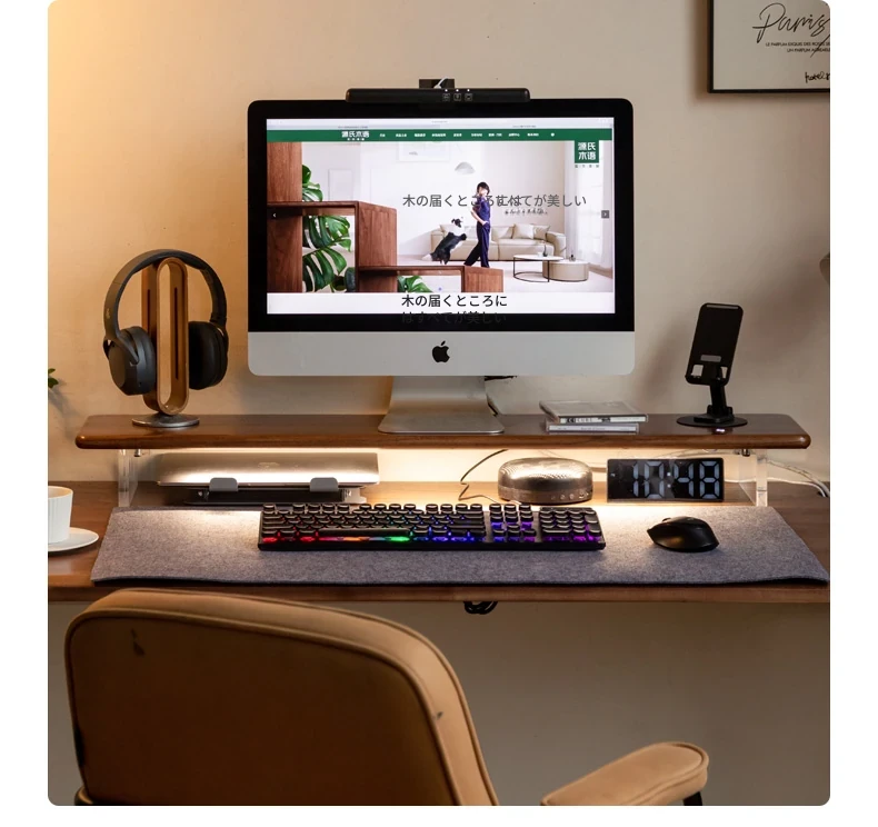 源氏木语 シンプルな無垢材デスクトップコンピューター高さ調整スタンド オーク製オフィスモニター支架 吊り下げ収納棚で快適な作業環境を実現!