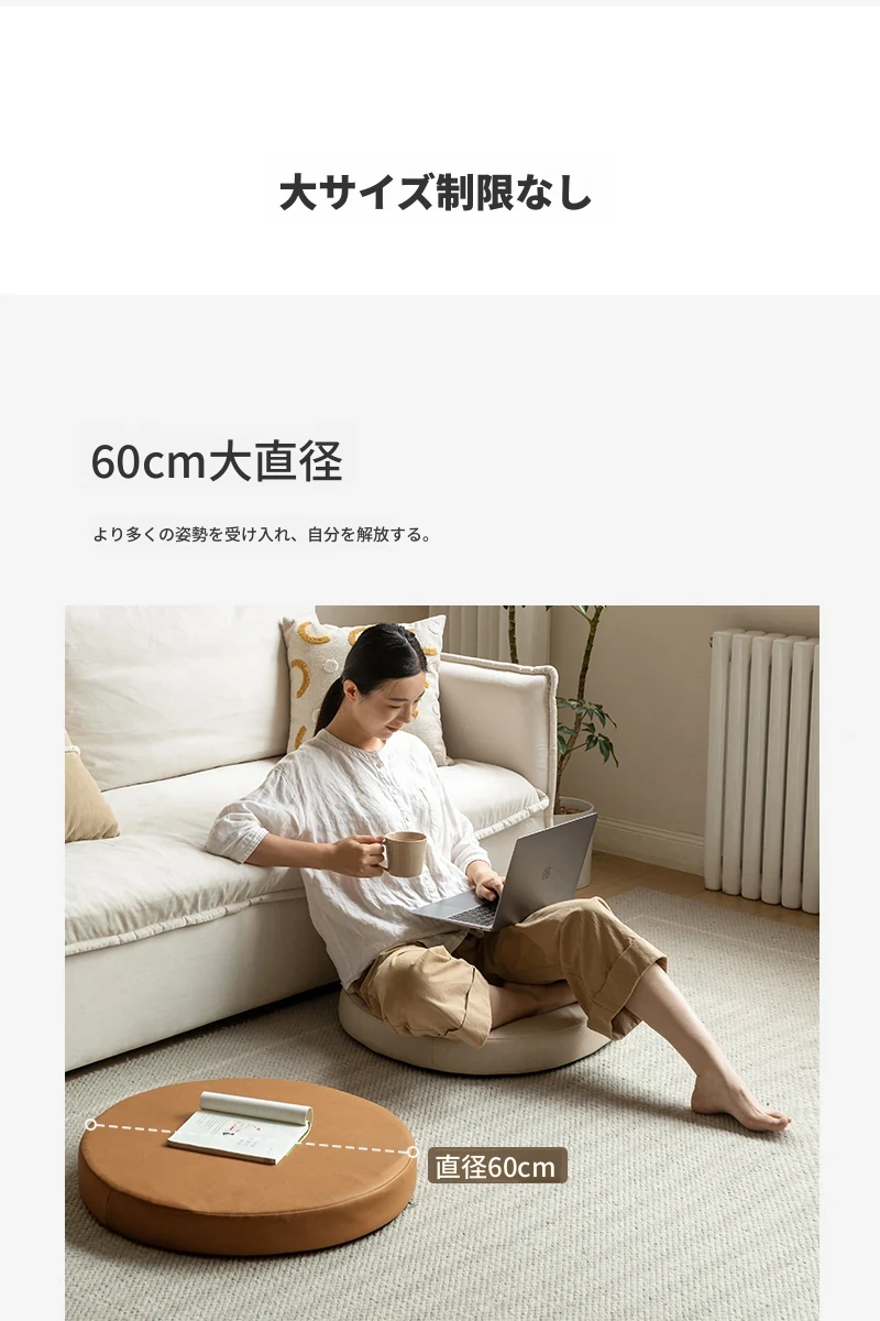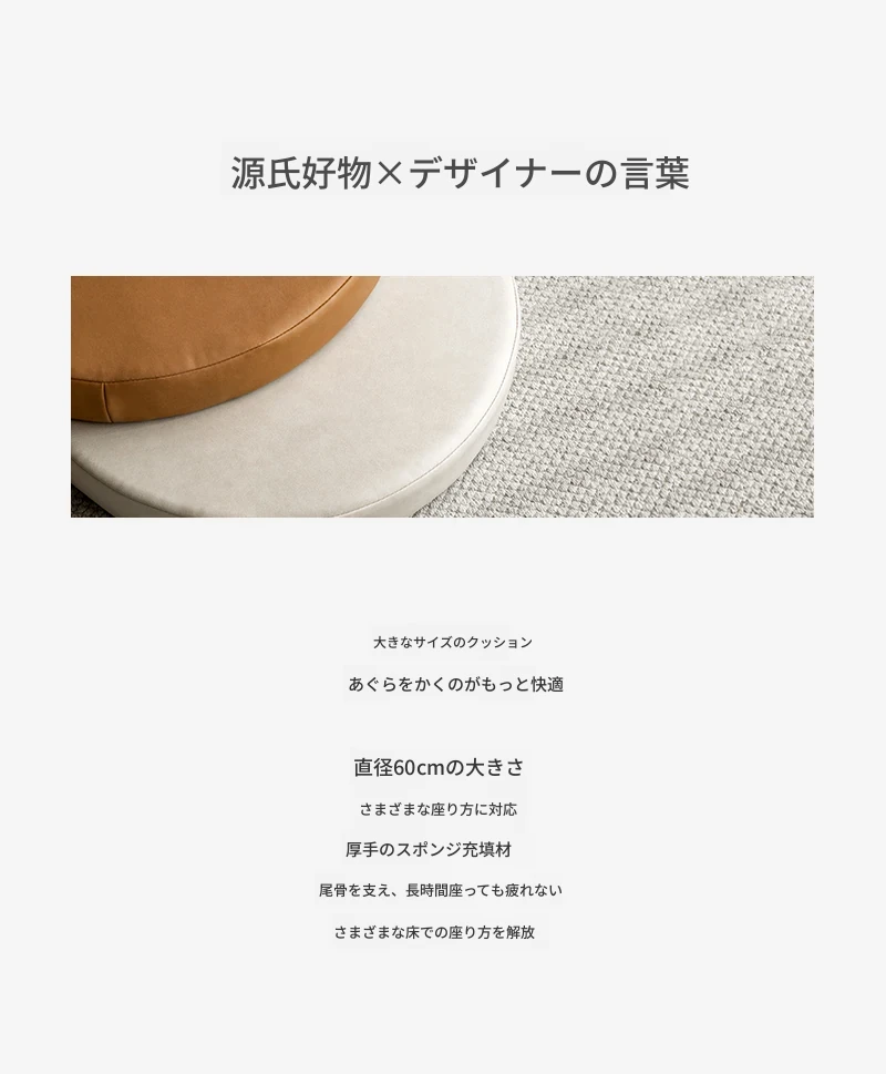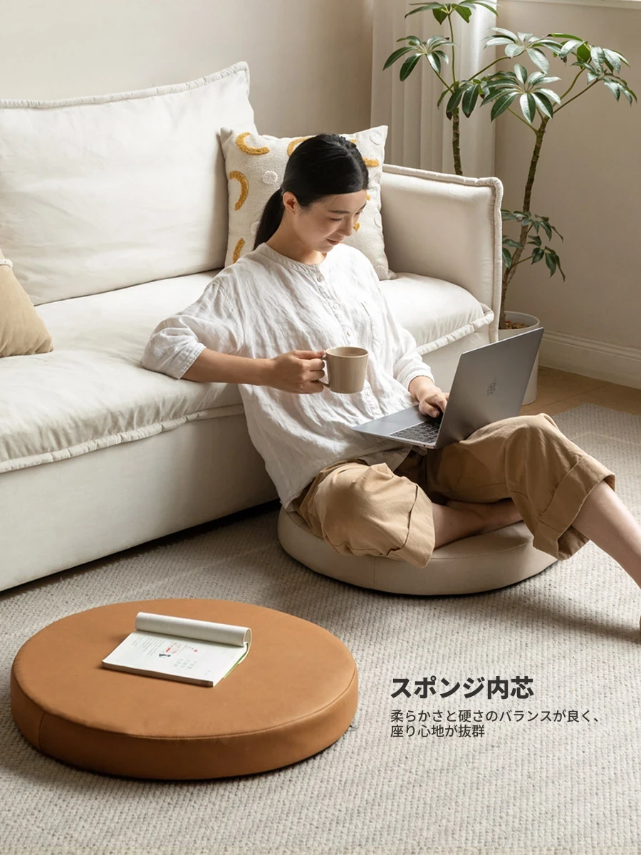 源氏木语ファブリック座布団 - 丸型タタミ用、バルコニーや窓辺に最適なリラックスクッション!テクノロジー繊維使用で、快適さと耐久性を両立。くつろぐための理想的なアイテムです!
