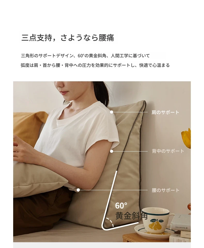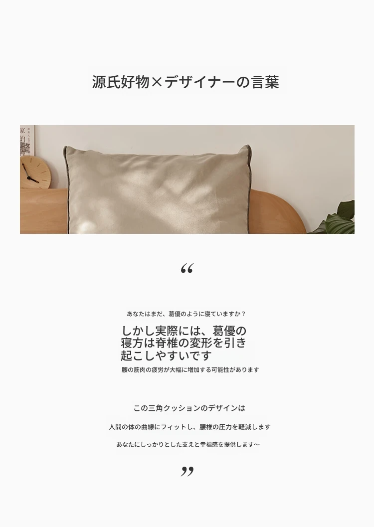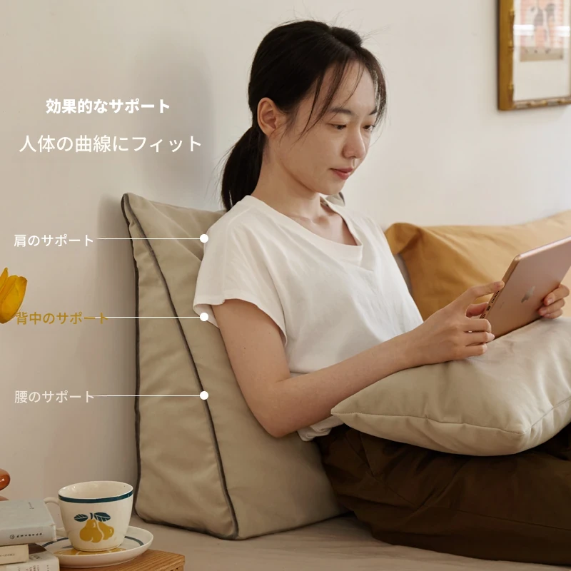 源氏木語 三角クッション ベッドヘッド サポート 腰の負担を軽減する タタミ用 クッション 椅子やソファに最適な背当て【快適な姿勢を保つ】