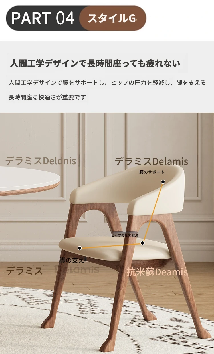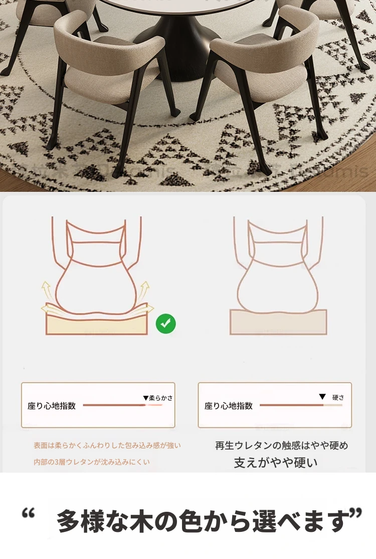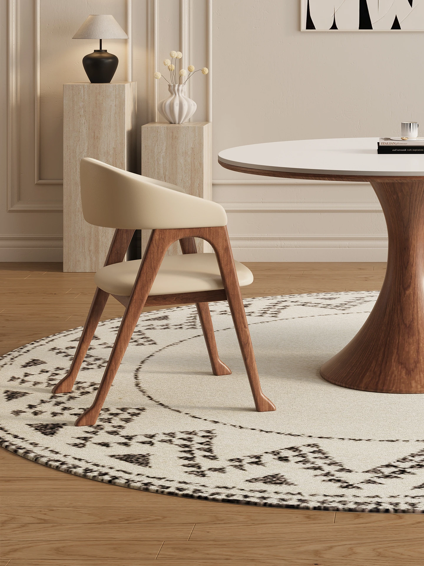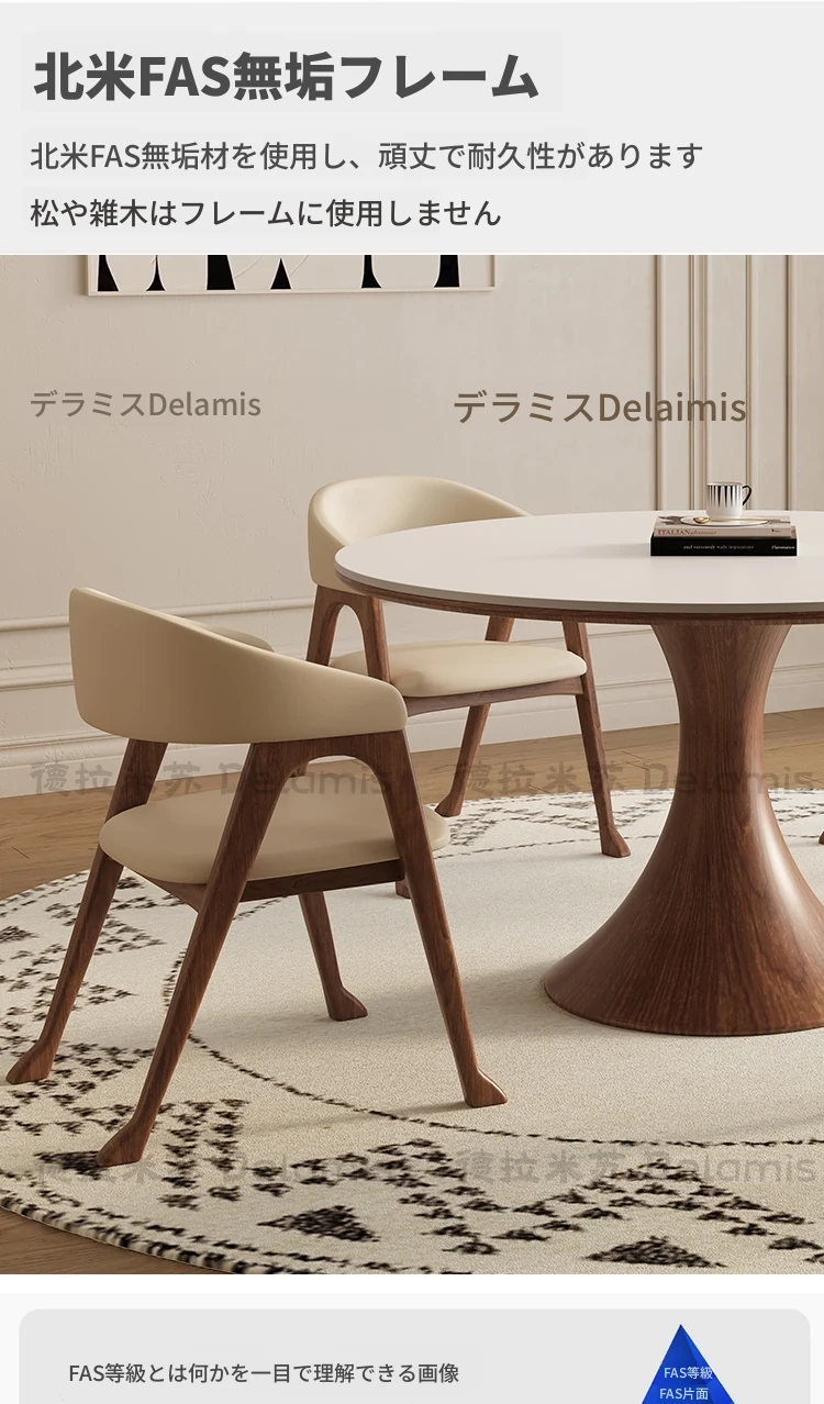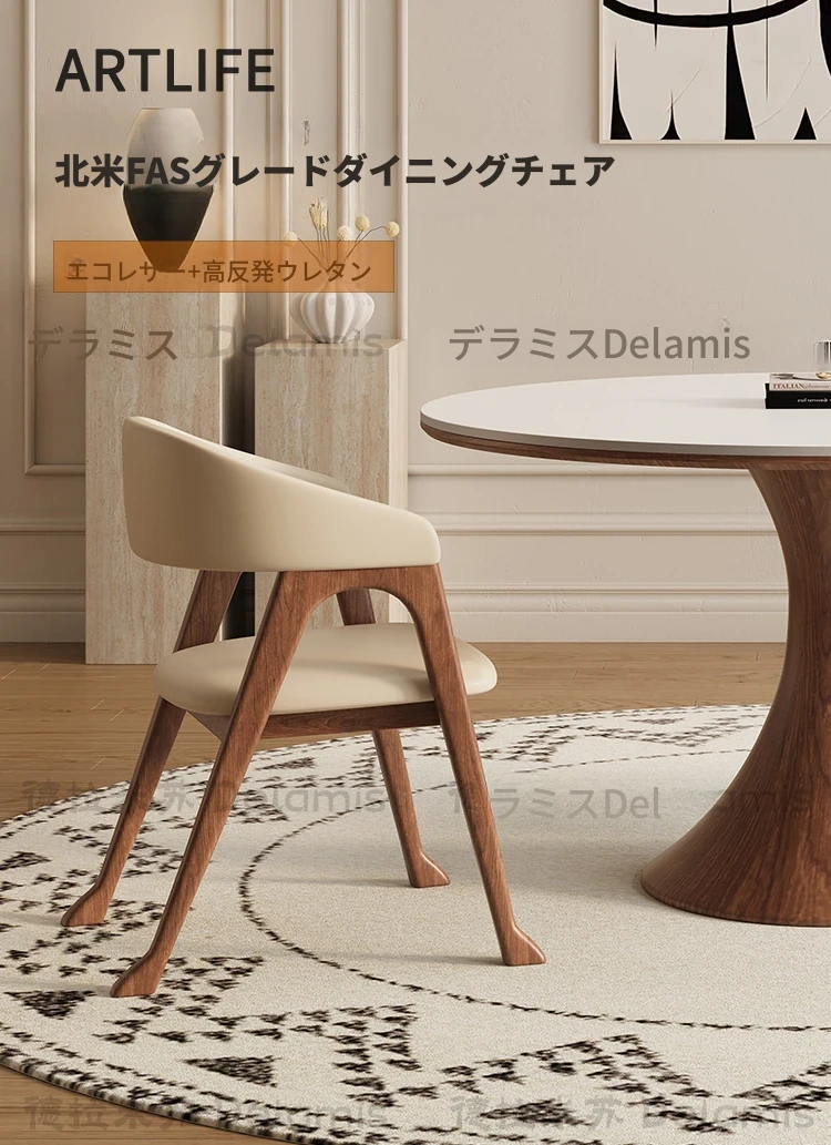 現代的でシンプルなデザインの無垢材ダイニングチェア。中世風のエレガントなソフトパッキング、ホテルやレストランに最適。高級感あふれるリラックスした座り心地を実現した、家庭用にもぴったりな背もたれ付きチェアです。